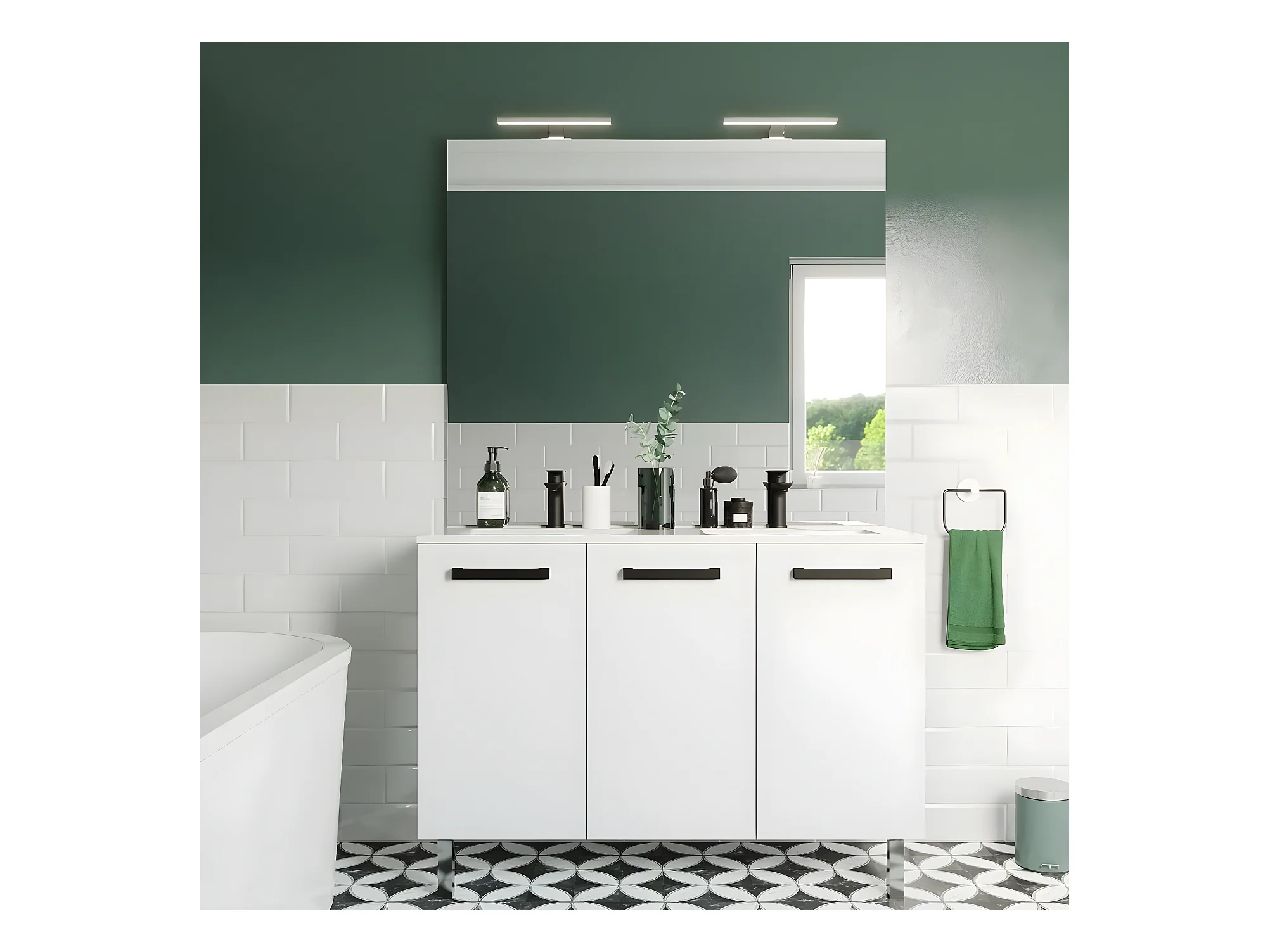 Meuble de salle de bain suspendu avec pieds double vasque intégrée 120cm 3 portes Blanc - Chelsea