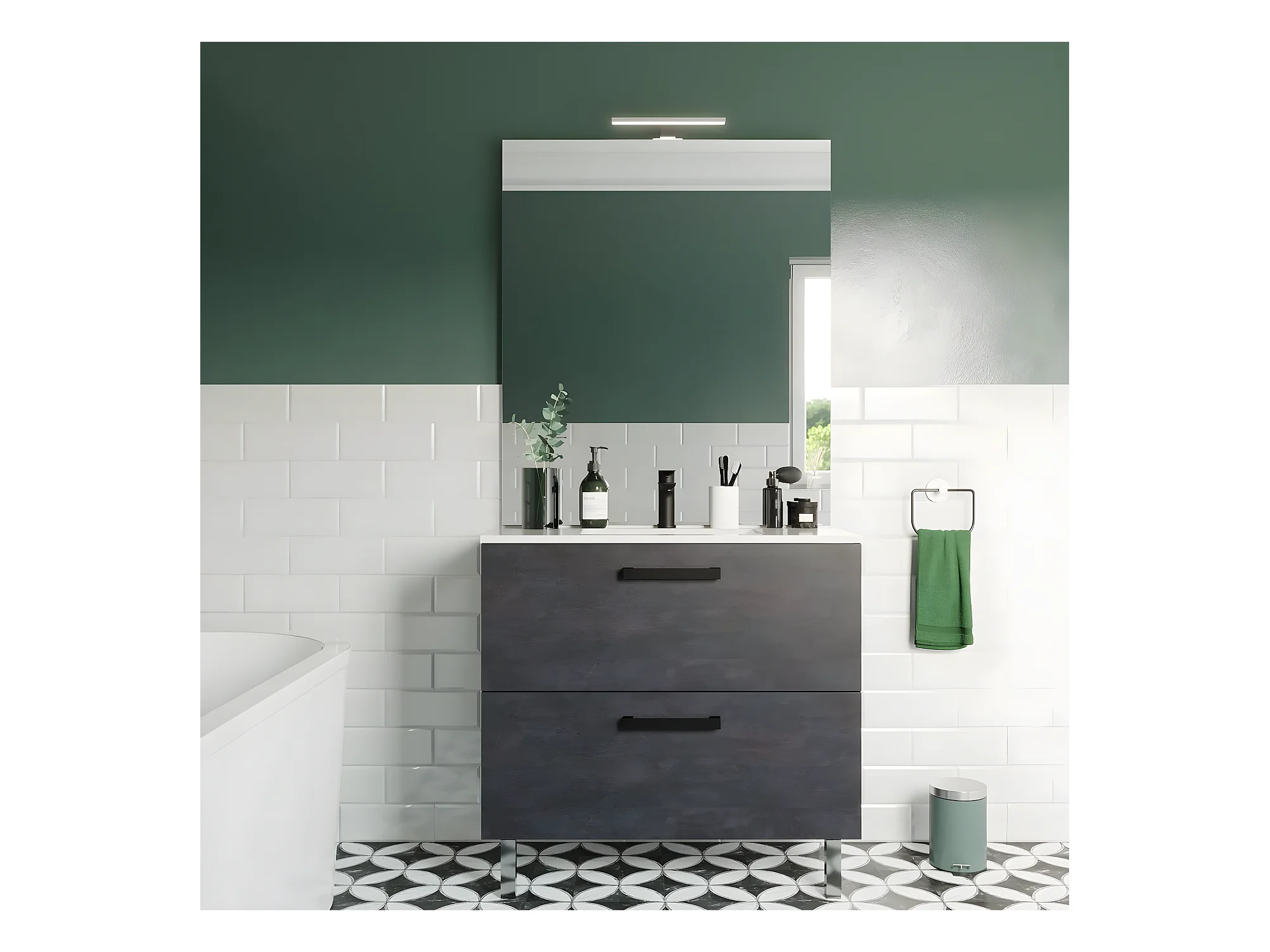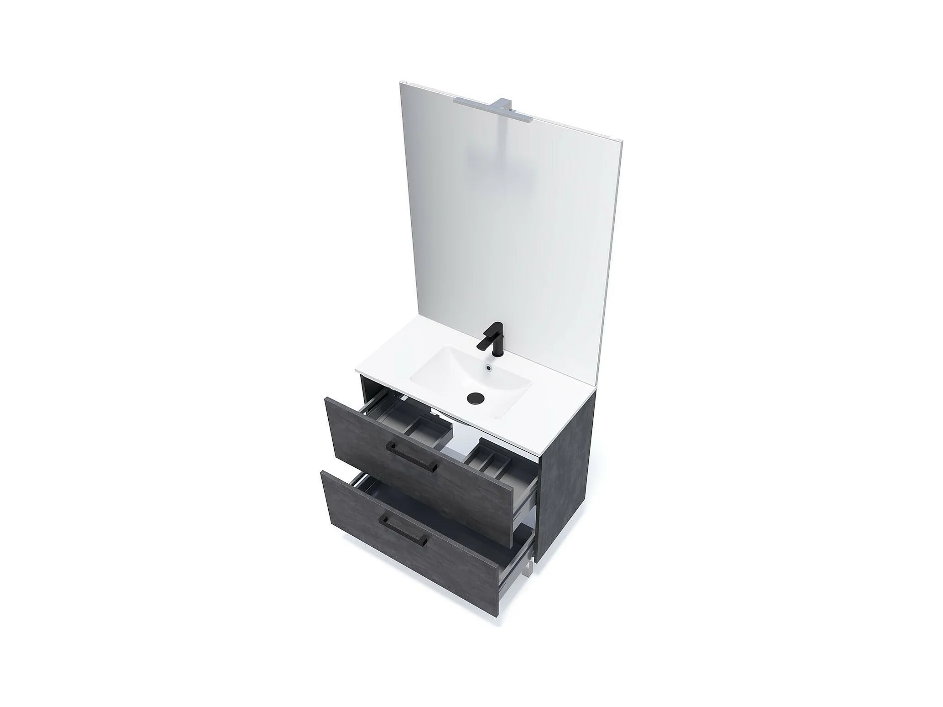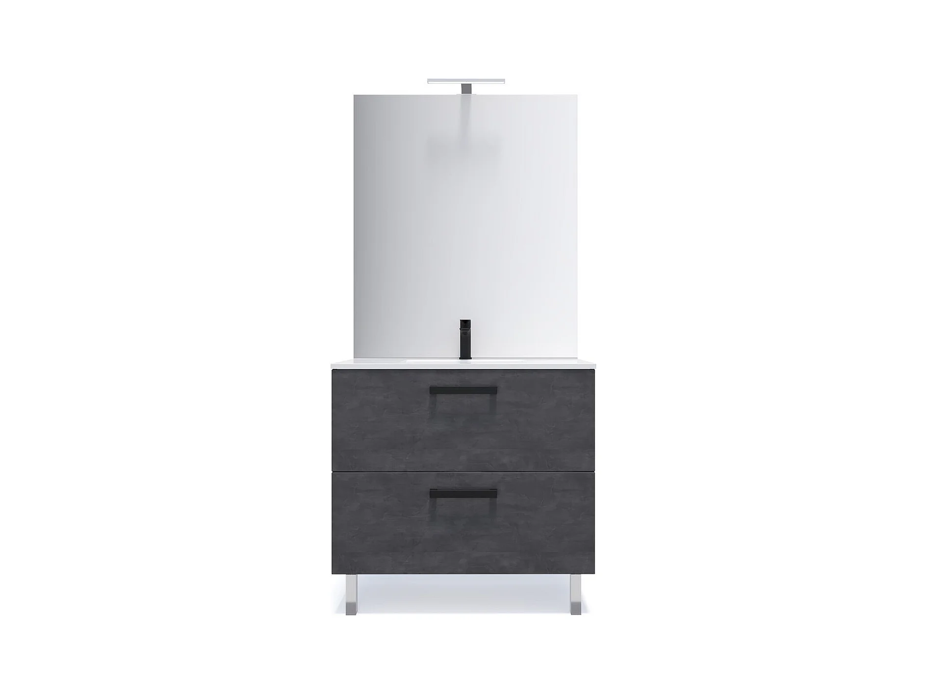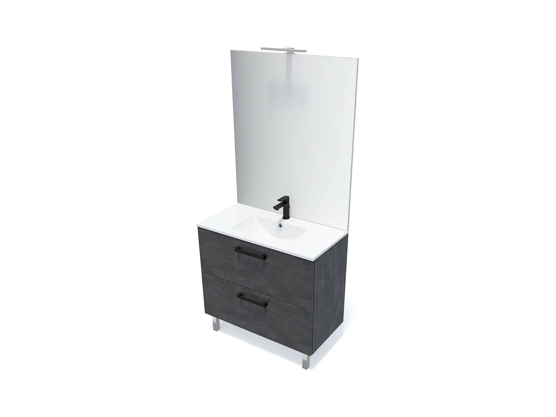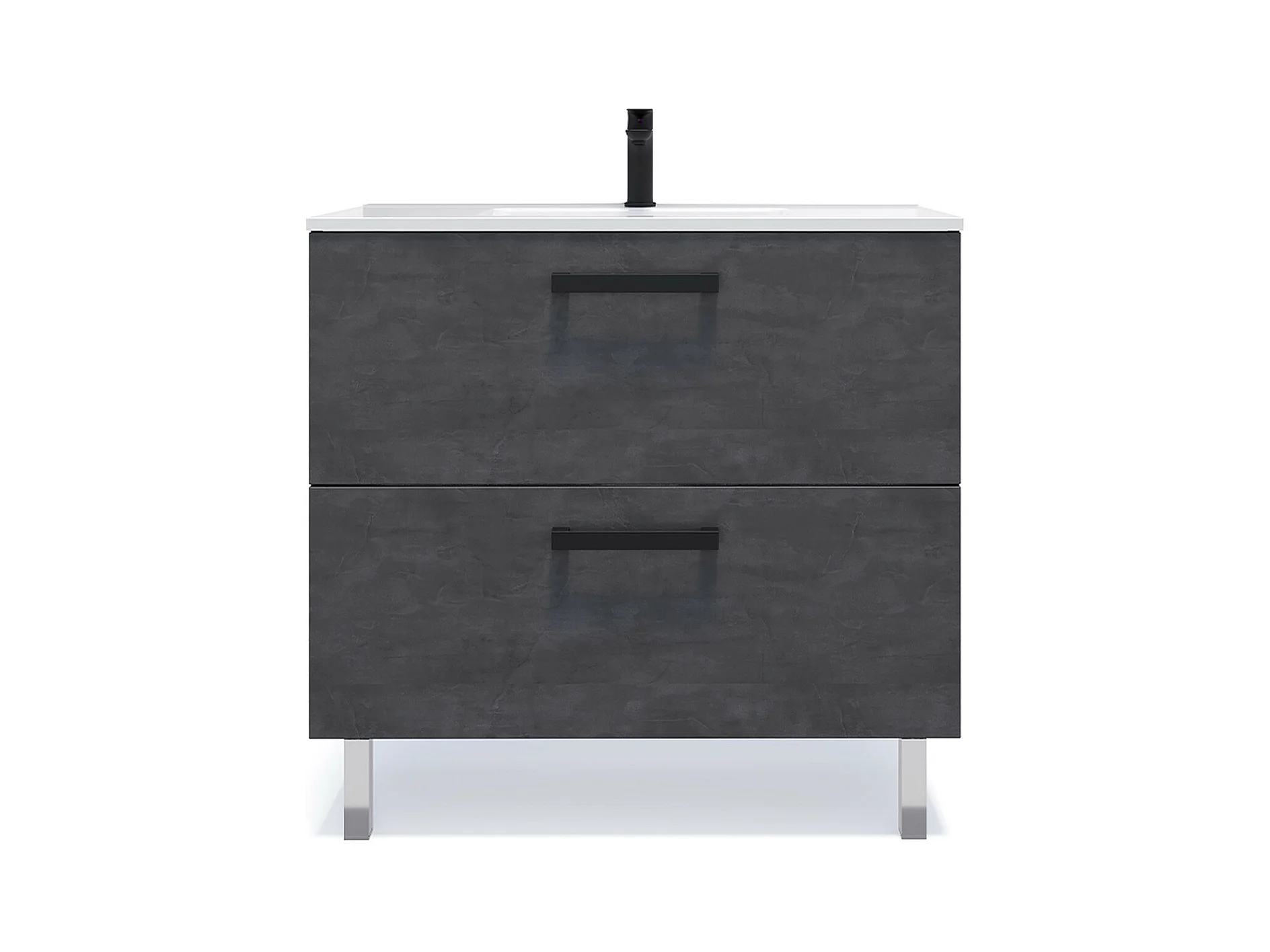 Meuble de salle de bain suspendu avec pieds vasque intégrée 90cm 2 tiroirs Ardoise métallisée - Chelsea
