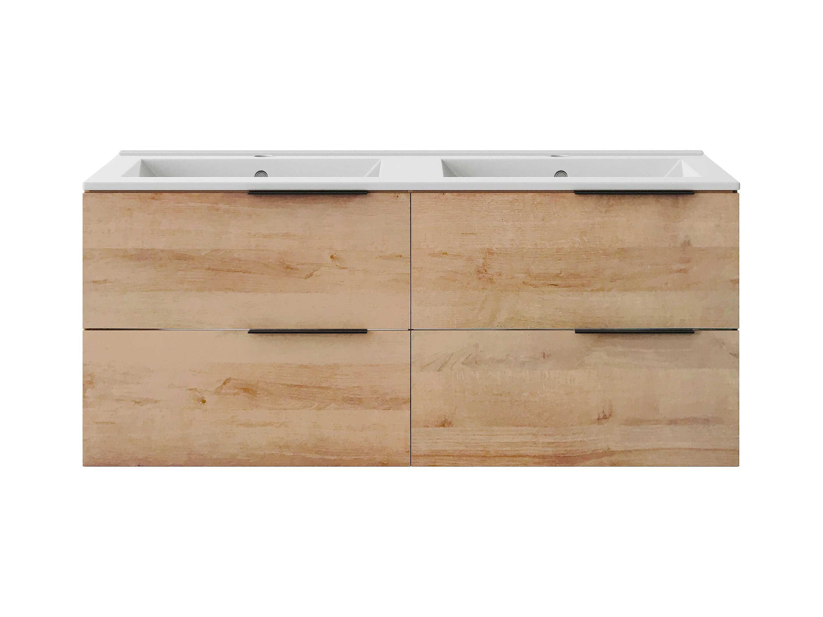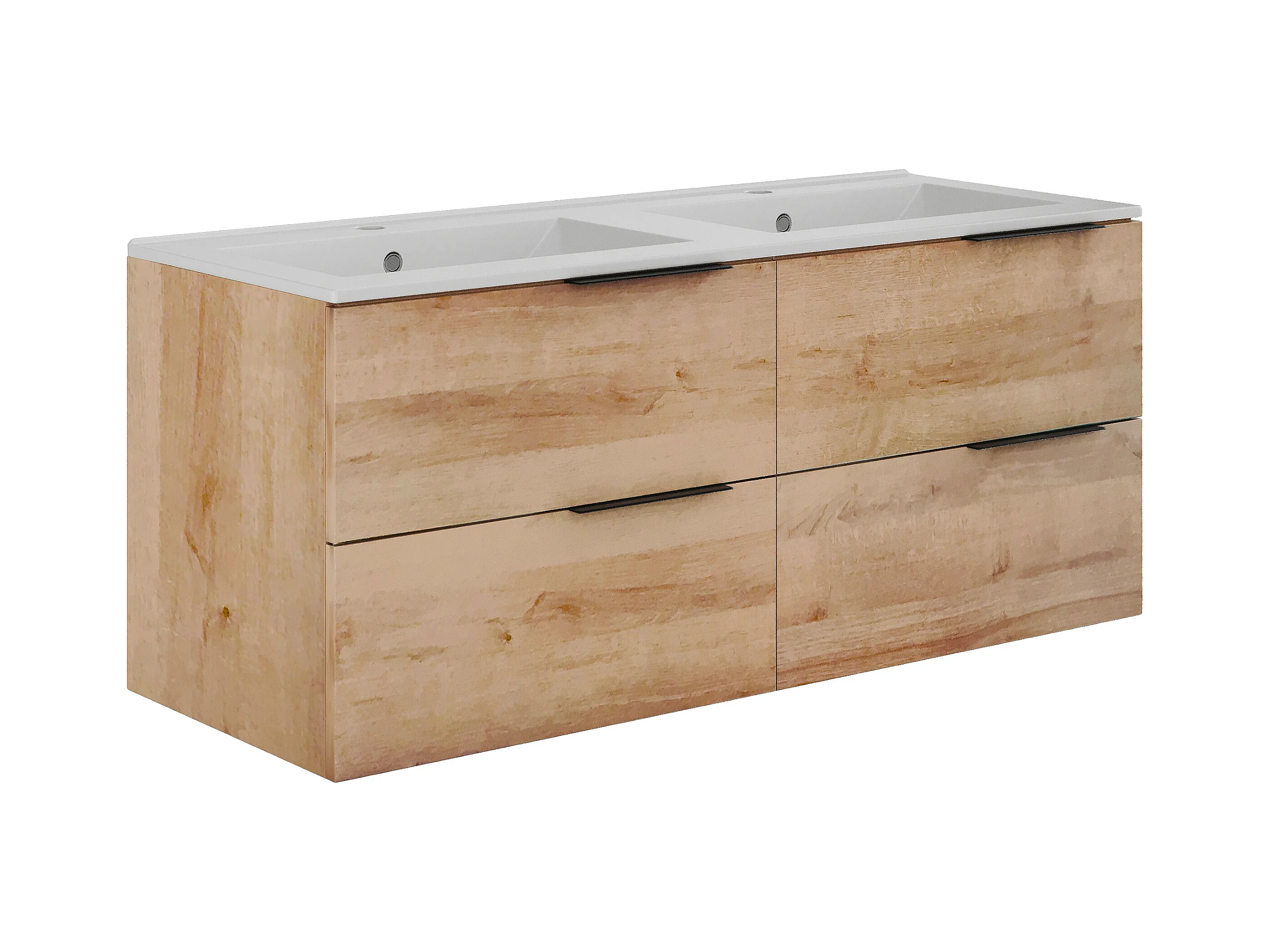Meuble de salle de bain suspendu avec vasque à encastrer et colonne - Naturel clair - 120 cm - NISAYA