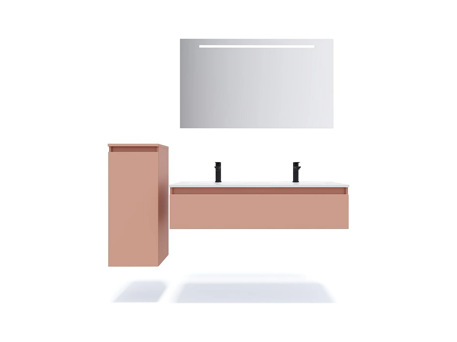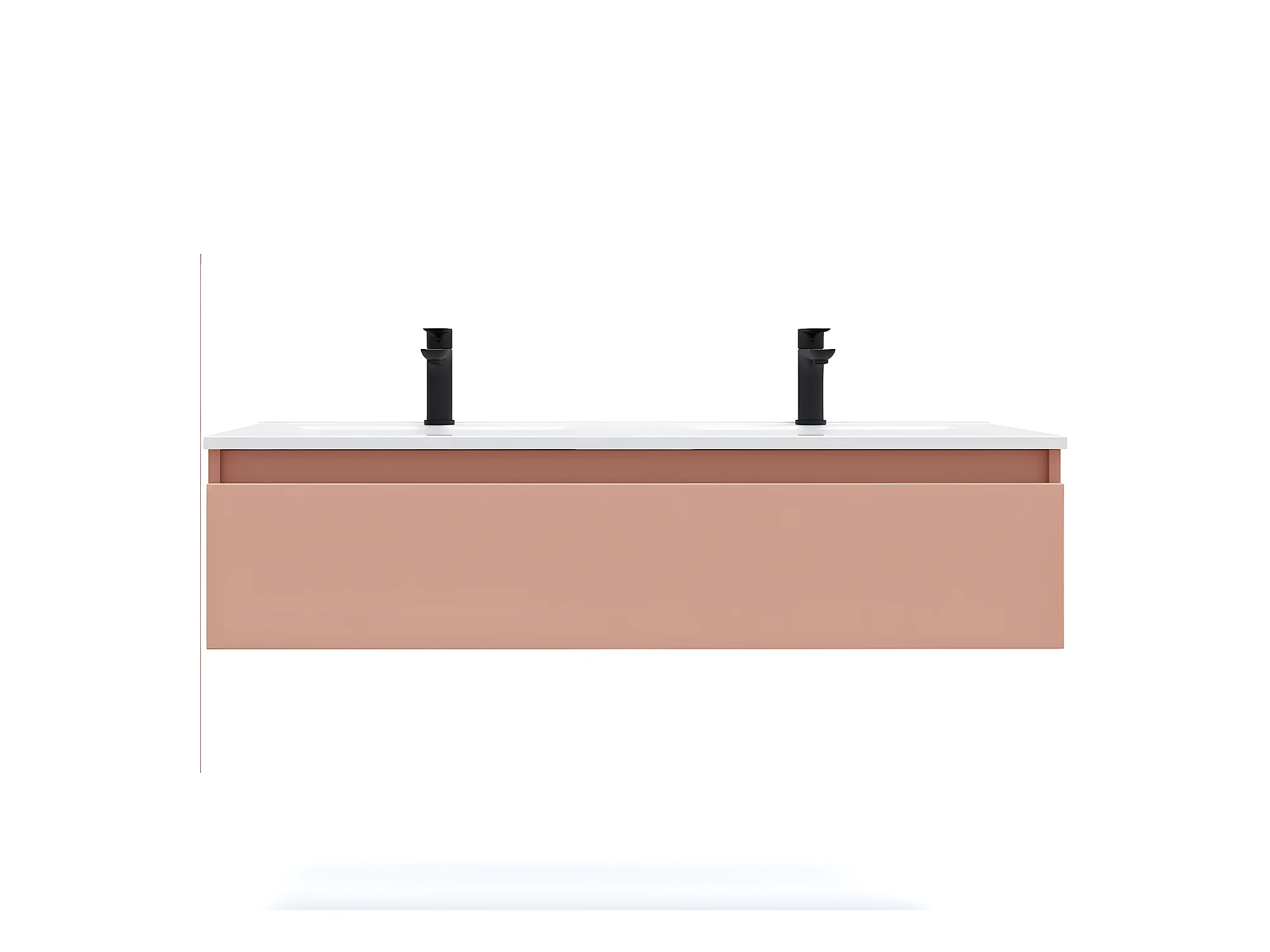 Meuble de salle de bain suspendu double vasque intégrée 120cm 1 tiroir Abricot - Hudson