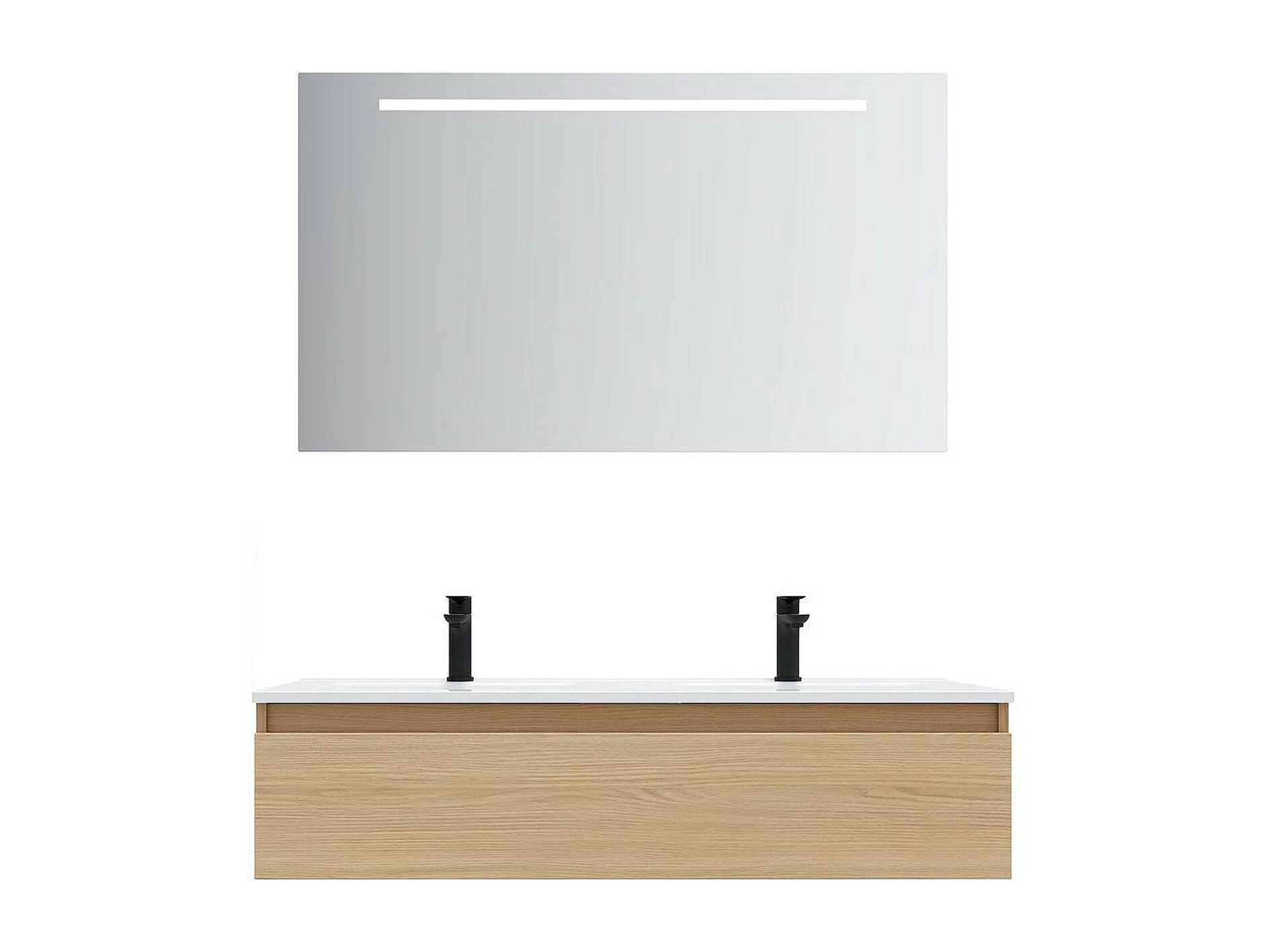 Meuble de salle de bain suspendu double vasque intégrée 120cm 1 tiroir Chêne clair + miroir - Hudson