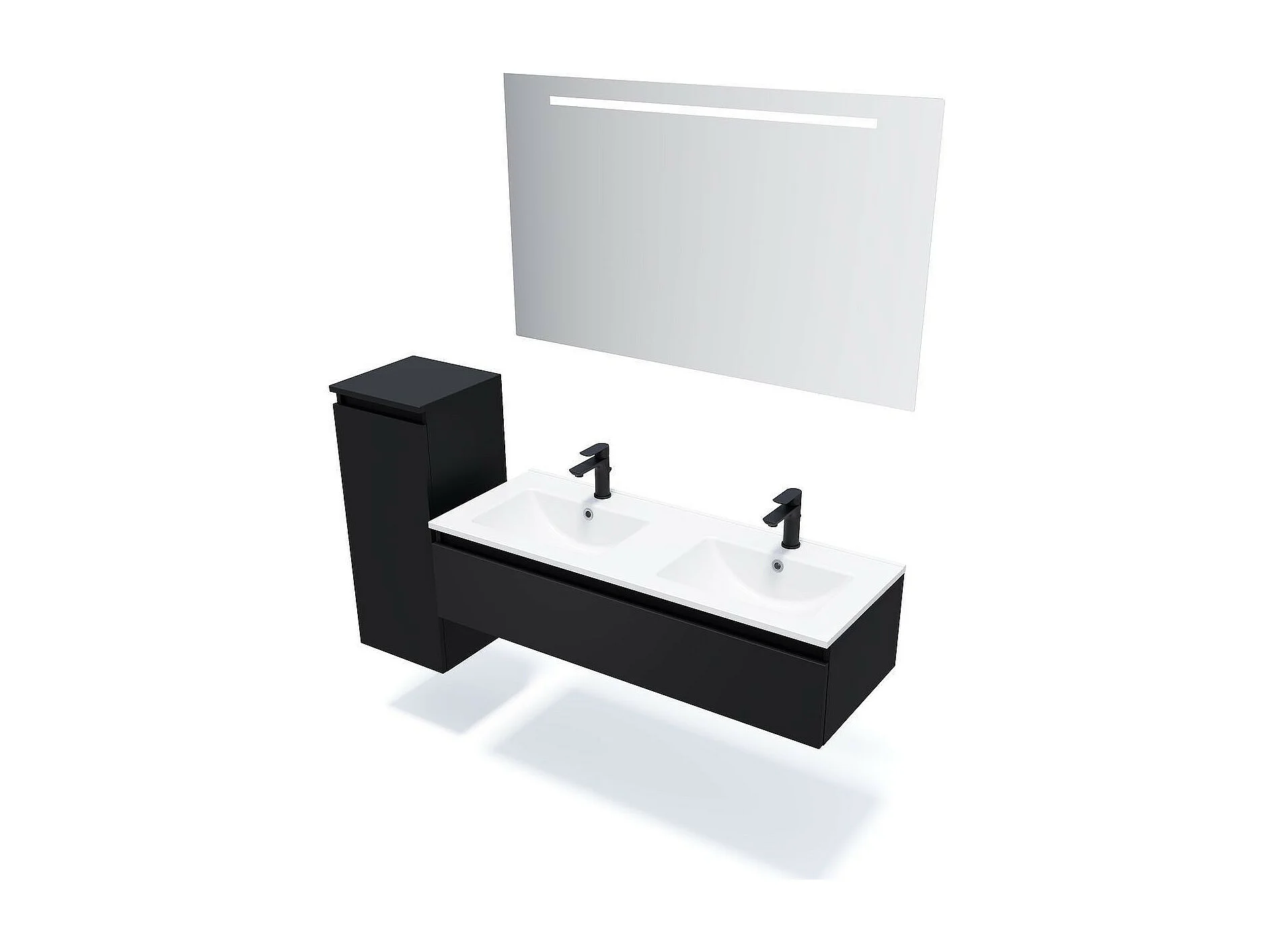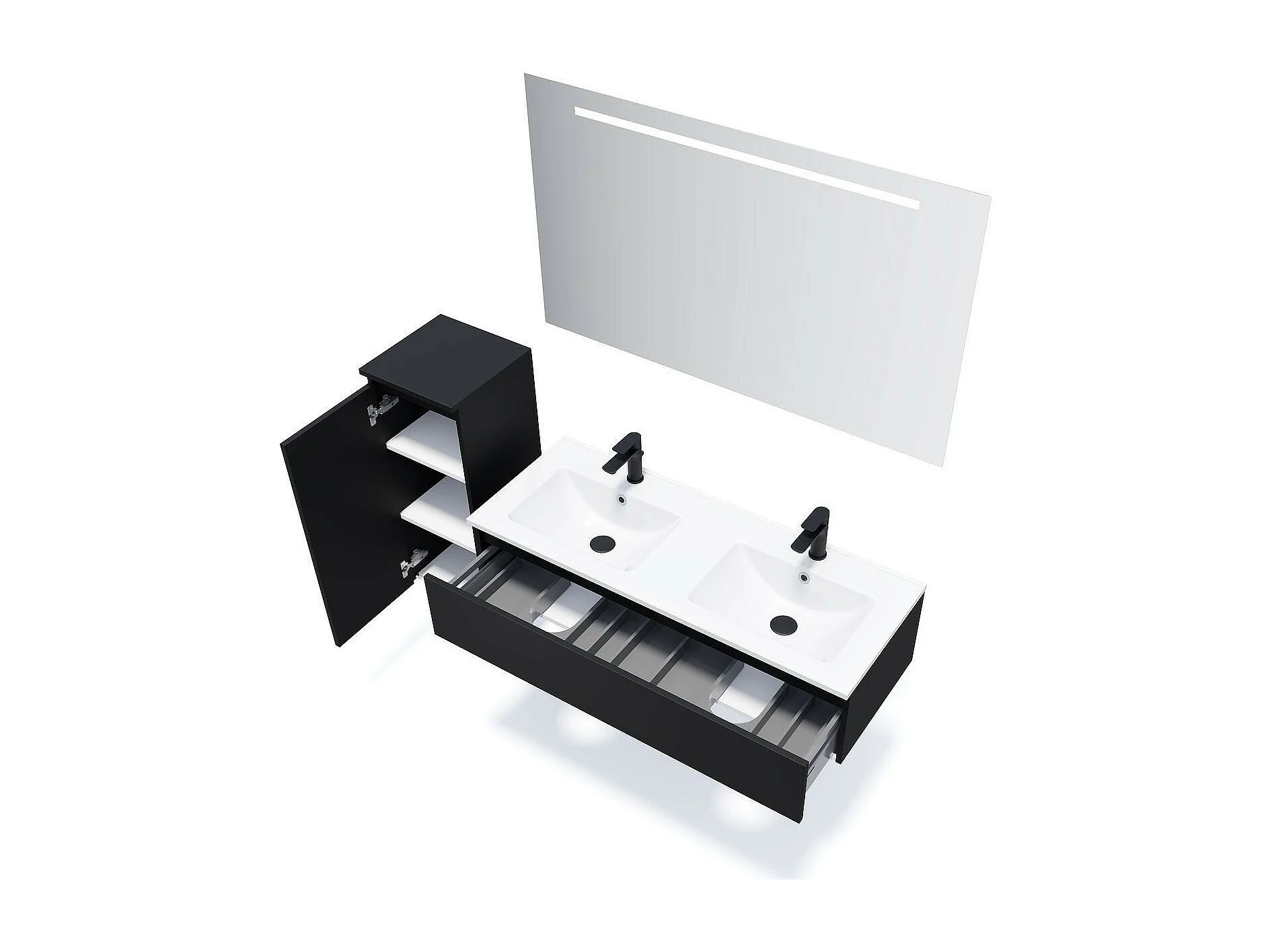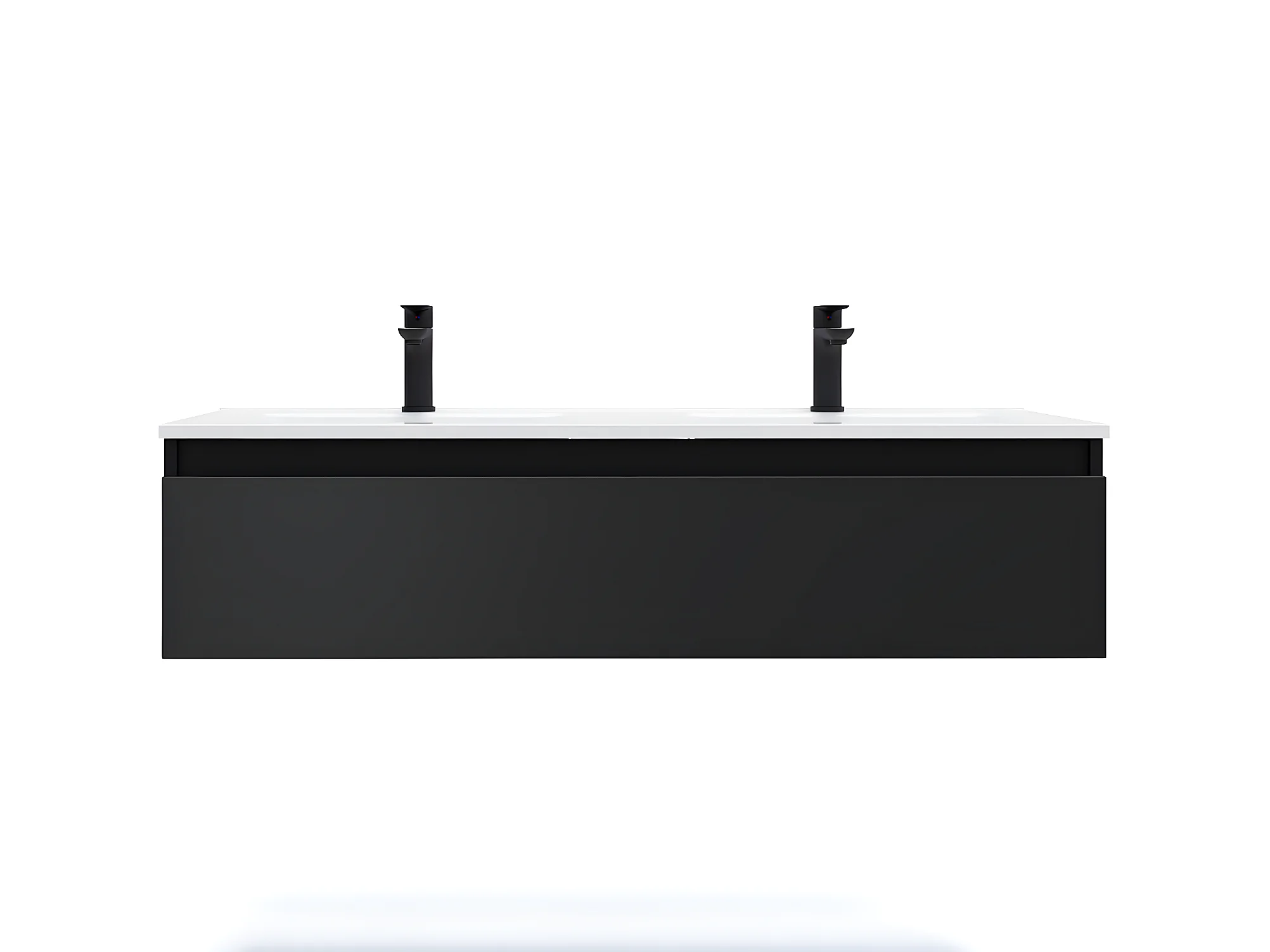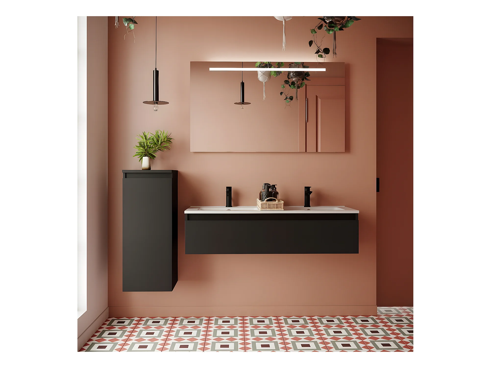 Meuble de salle de bain suspendu double vasque intégrée 120cm 1 tiroir Noir - Hudson