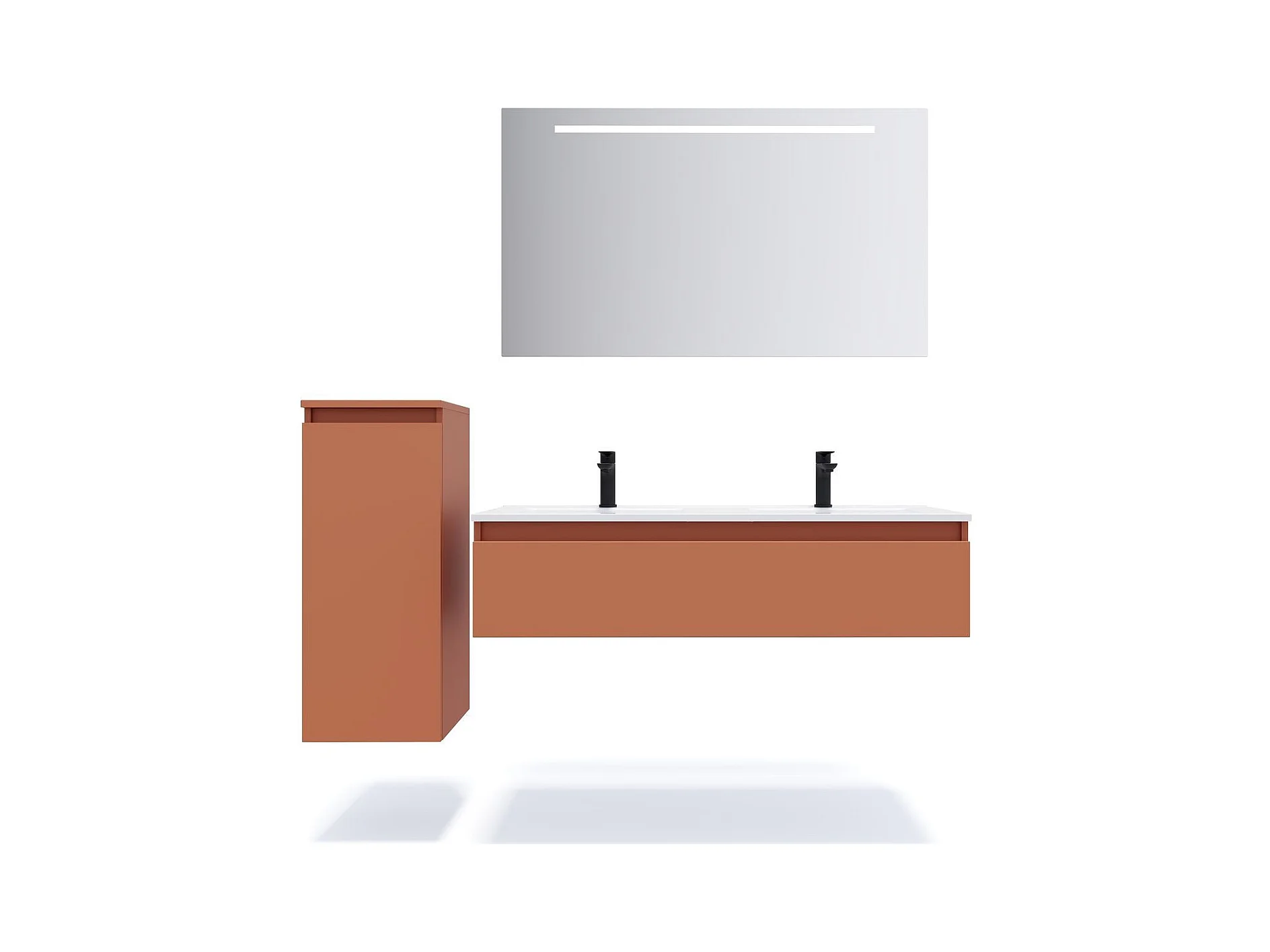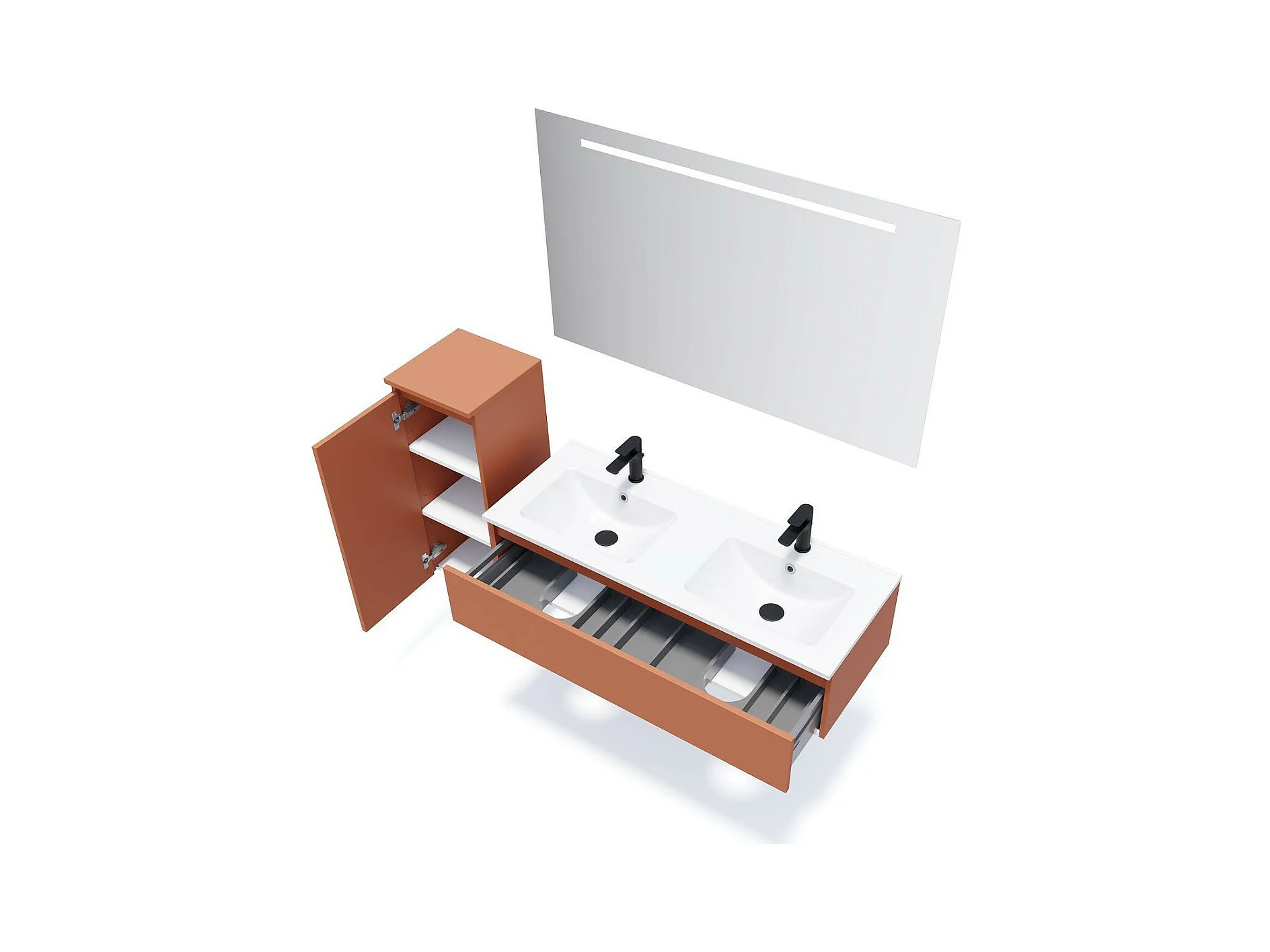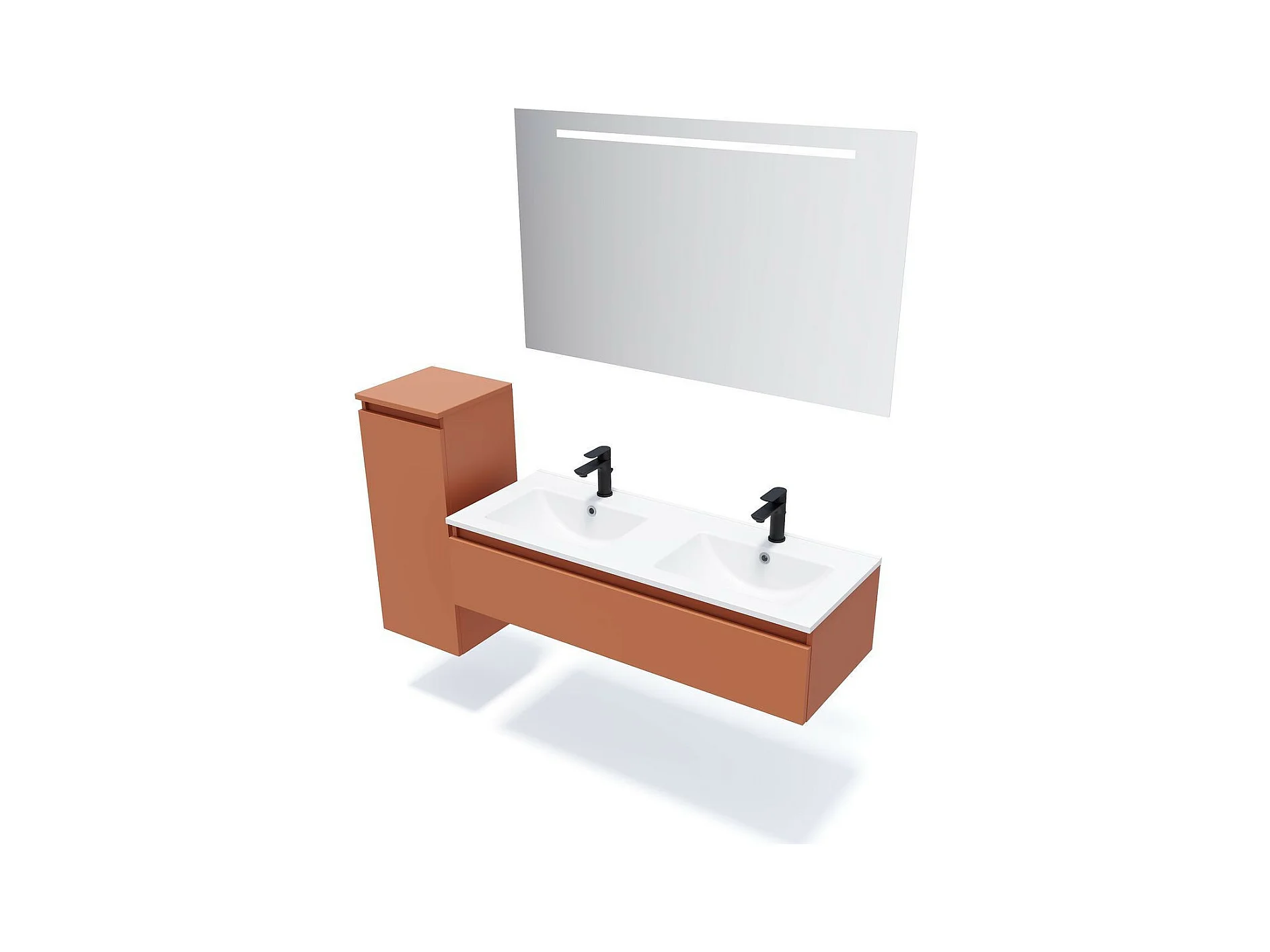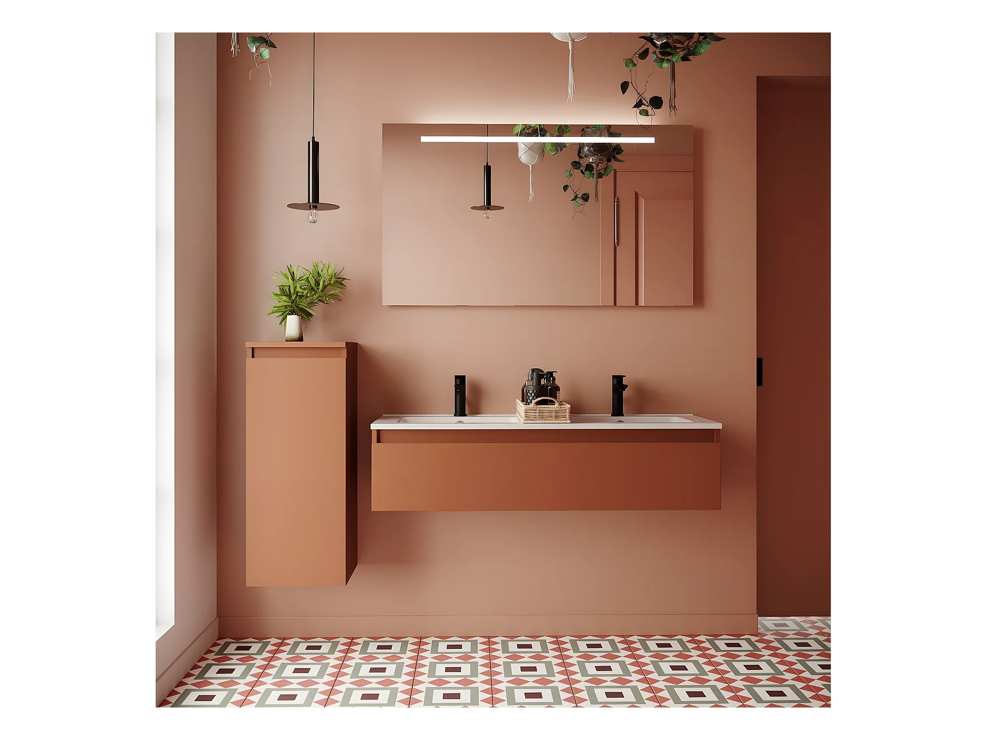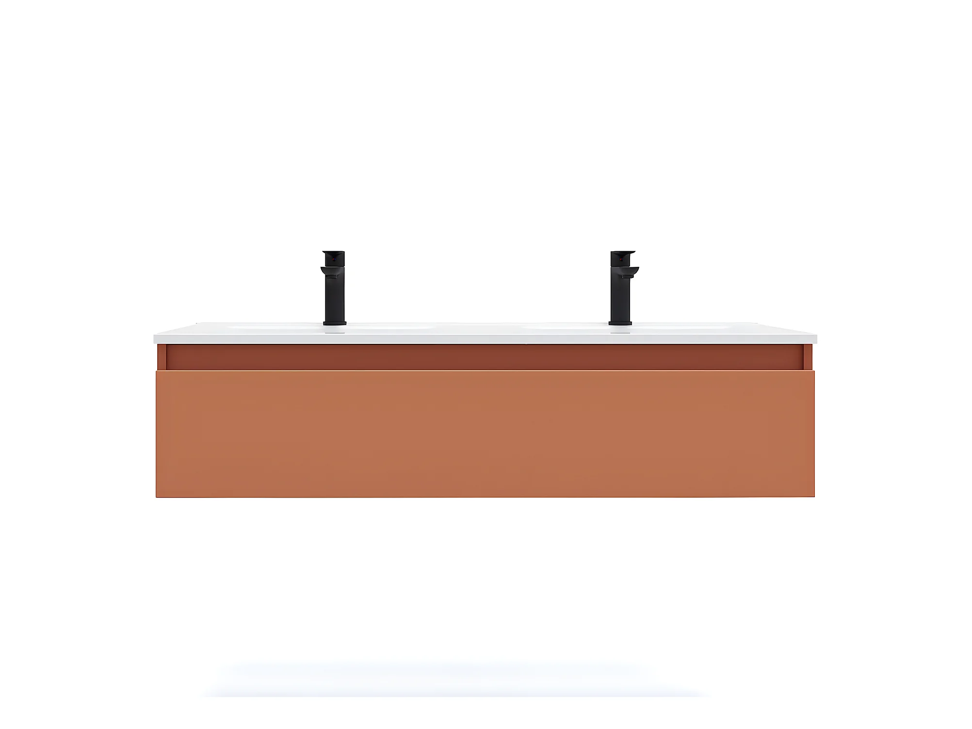 Meuble de salle de bain suspendu double vasque intégrée 120cm 1 tiroir Terracotta - Hudson