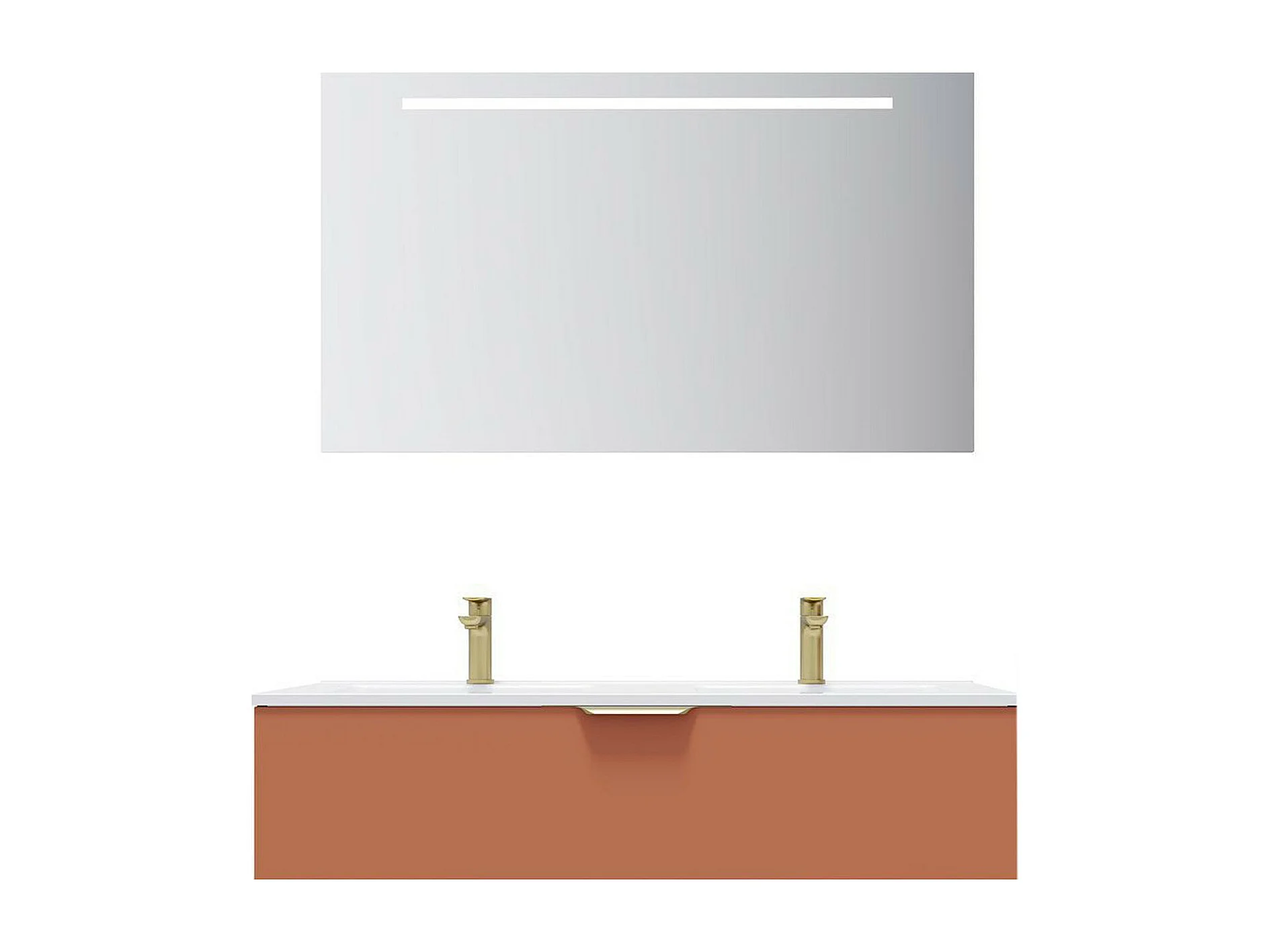 Meuble de salle de bain suspendu double vasque intégrée 120cm 1 tiroir Terracotta + miroir - Venice