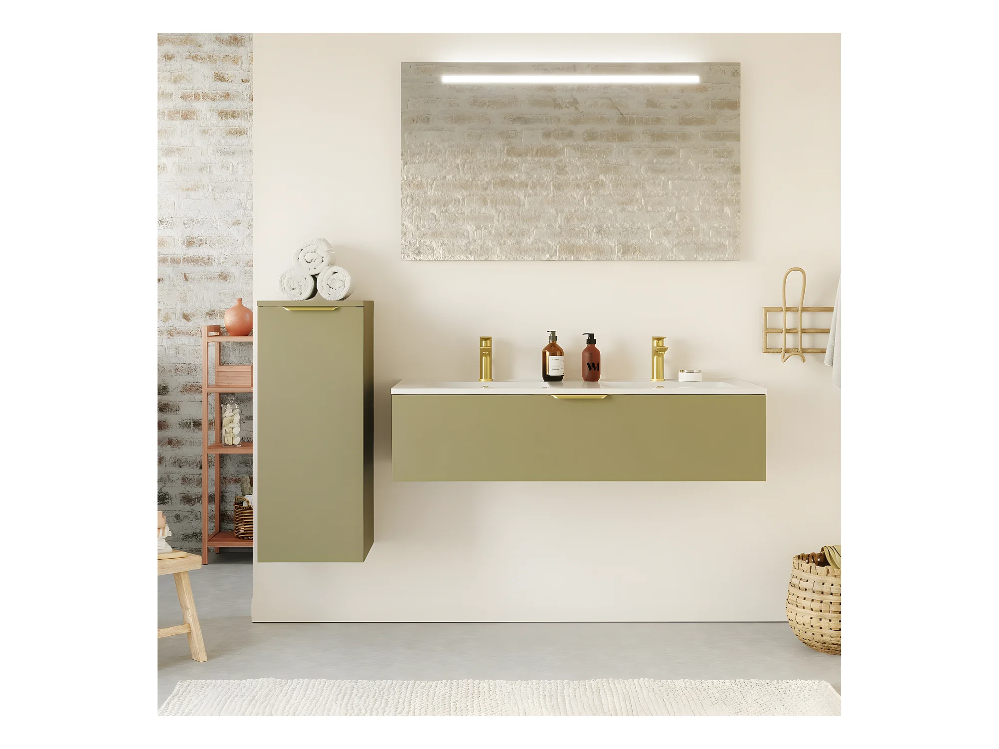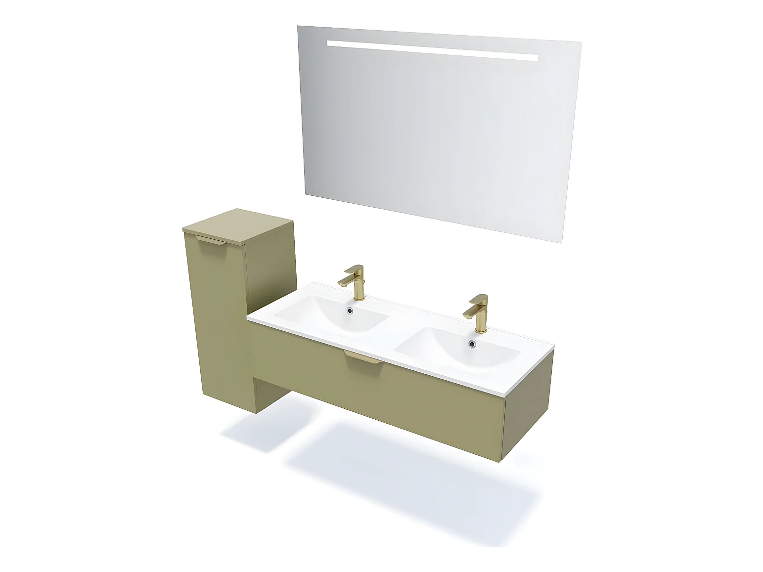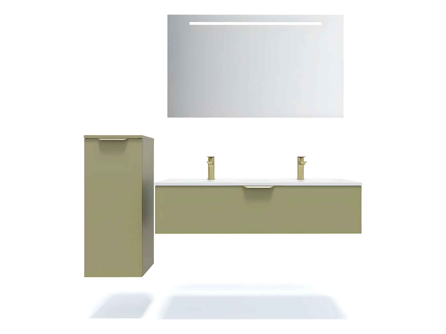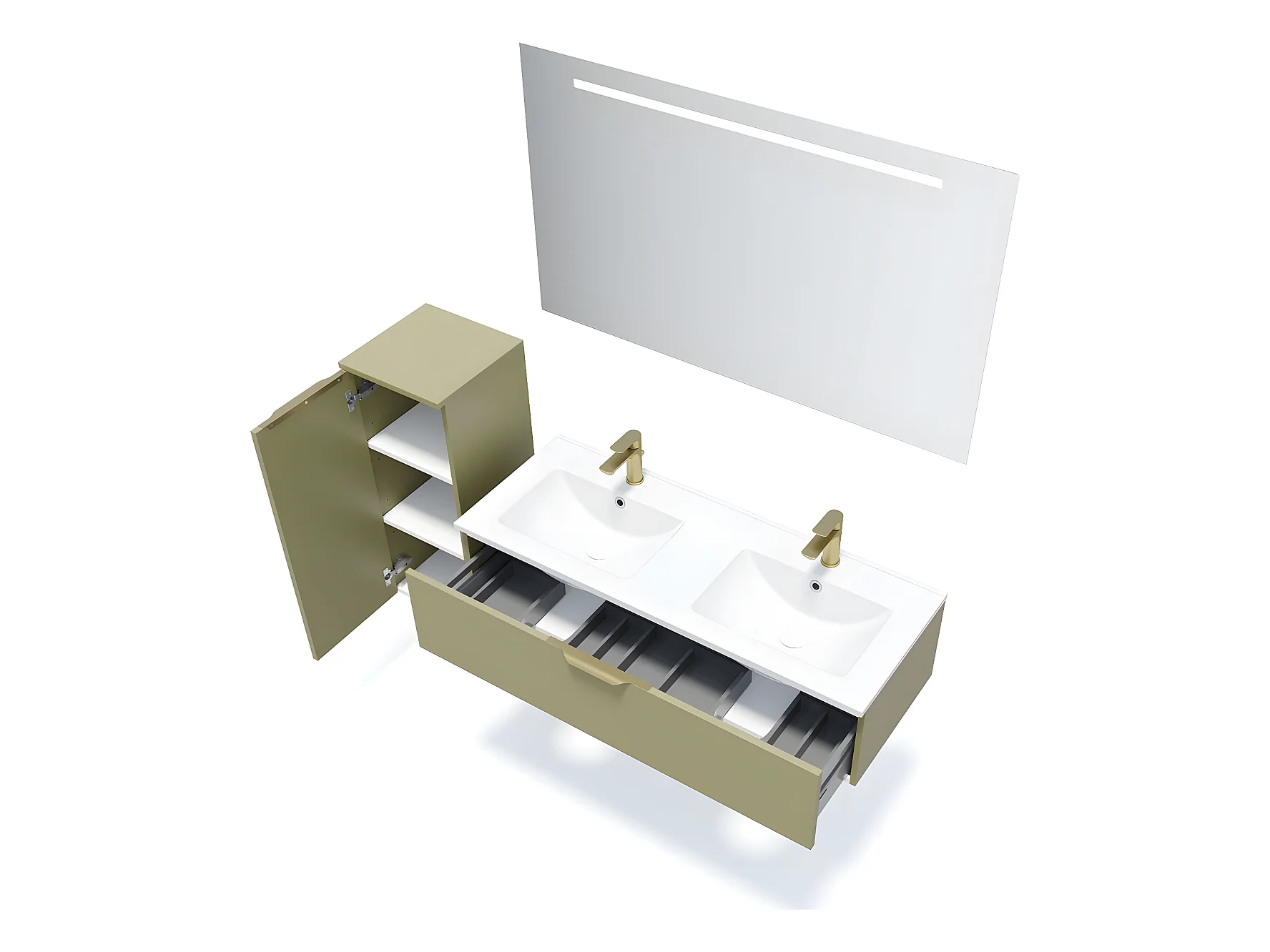 Meuble de salle de bain suspendu double vasque intégrée 120cm 1 tiroir Vert olive - Venice