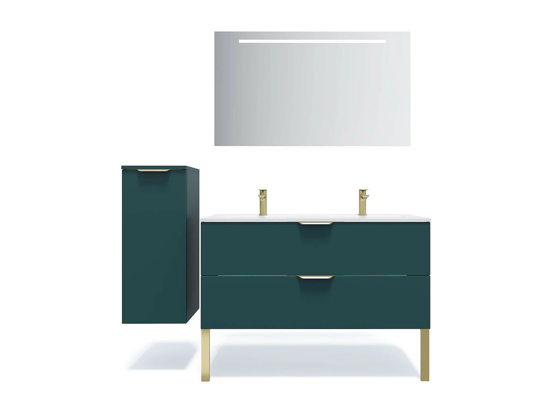 Meuble de salle de bain suspendu double vasque intégrée 120cm 2 tiroirs Bleu + miroir - Venice
