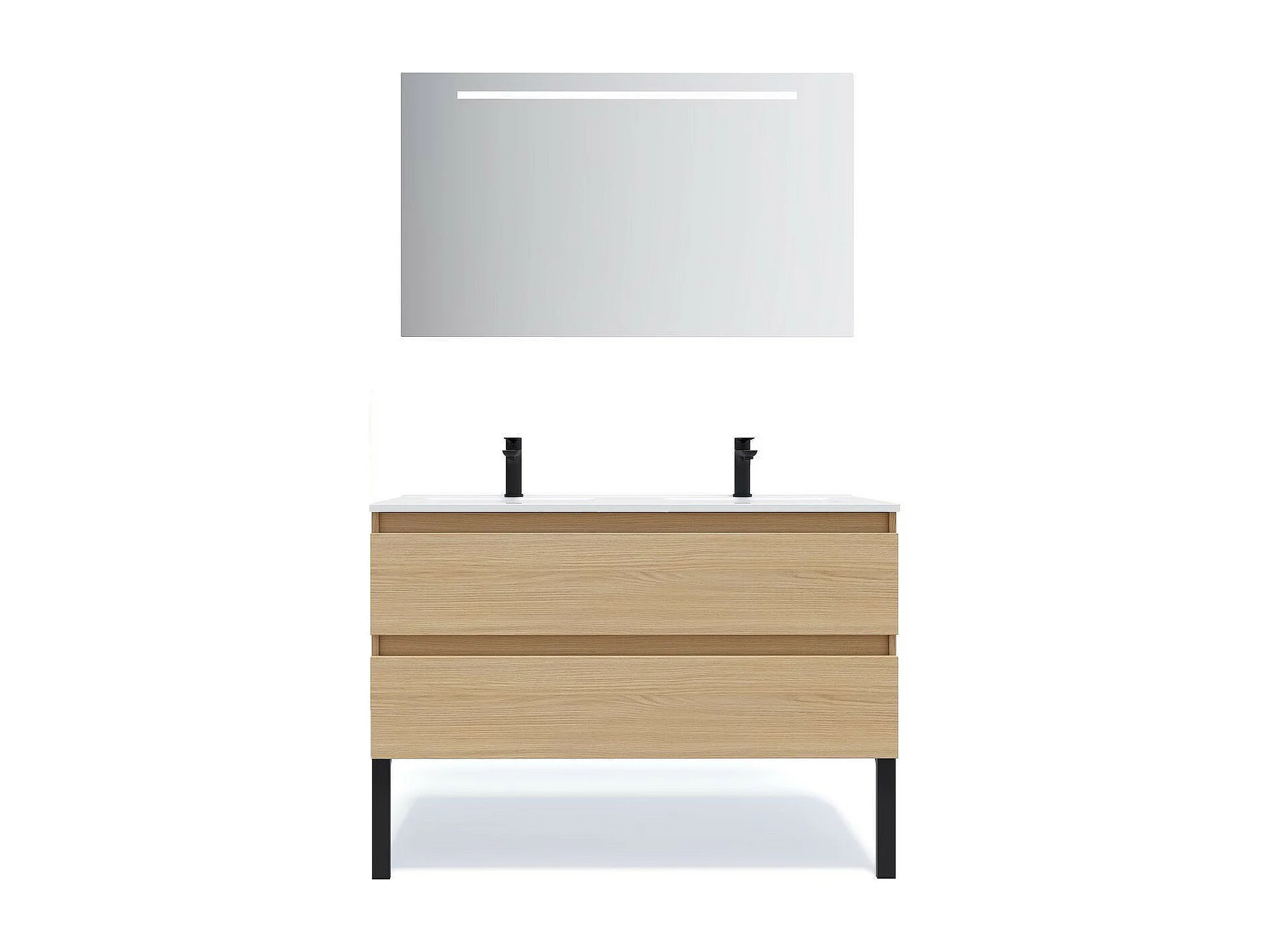 Meuble de salle de bain suspendu double vasque intégrée 120cm 2 tiroirs Chêne clair + miroir - Hudson