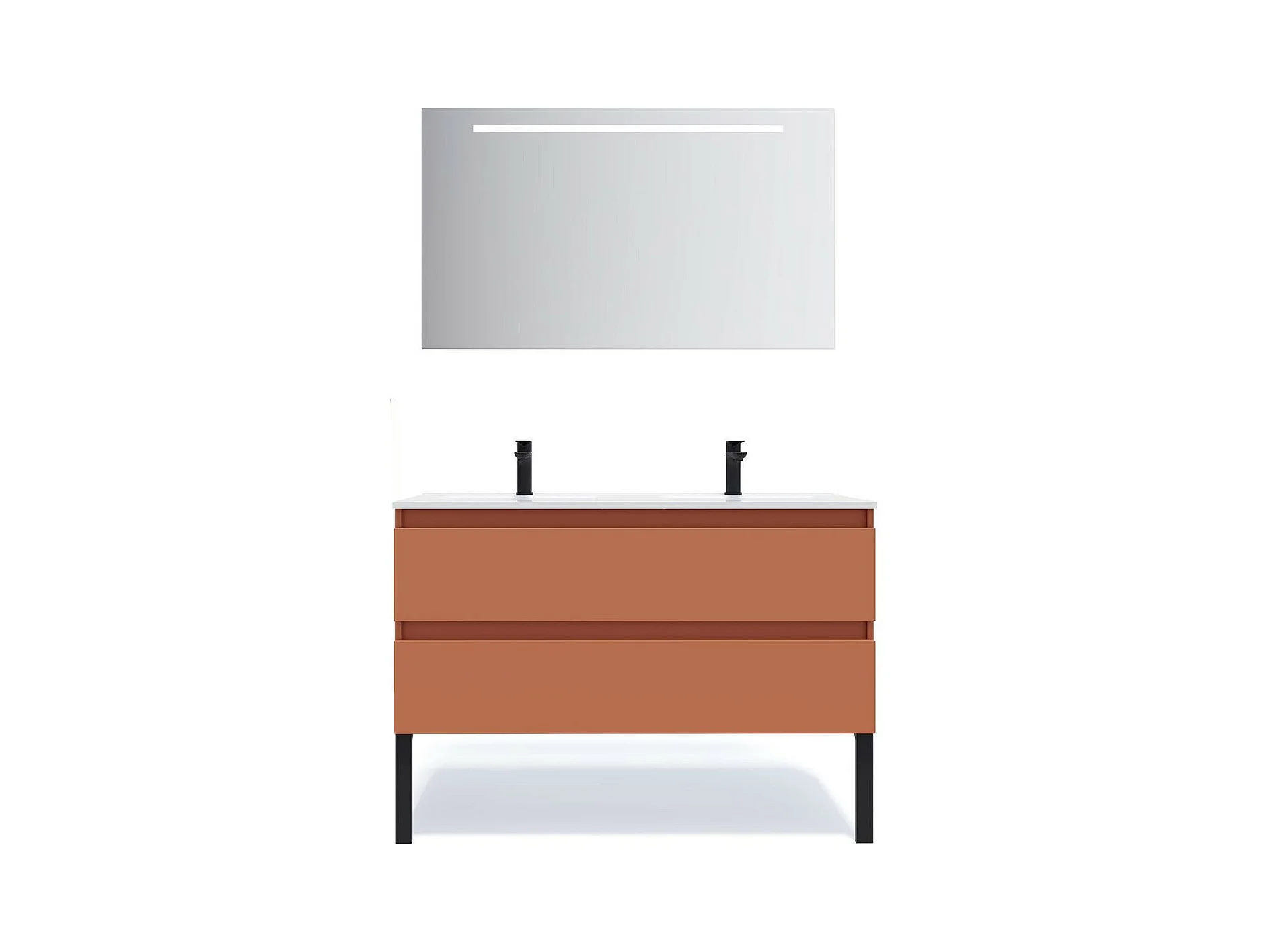 Meuble de salle de bain suspendu double vasque intégrée 120cm 2 tiroirs Terracotta + miroir - Hudson