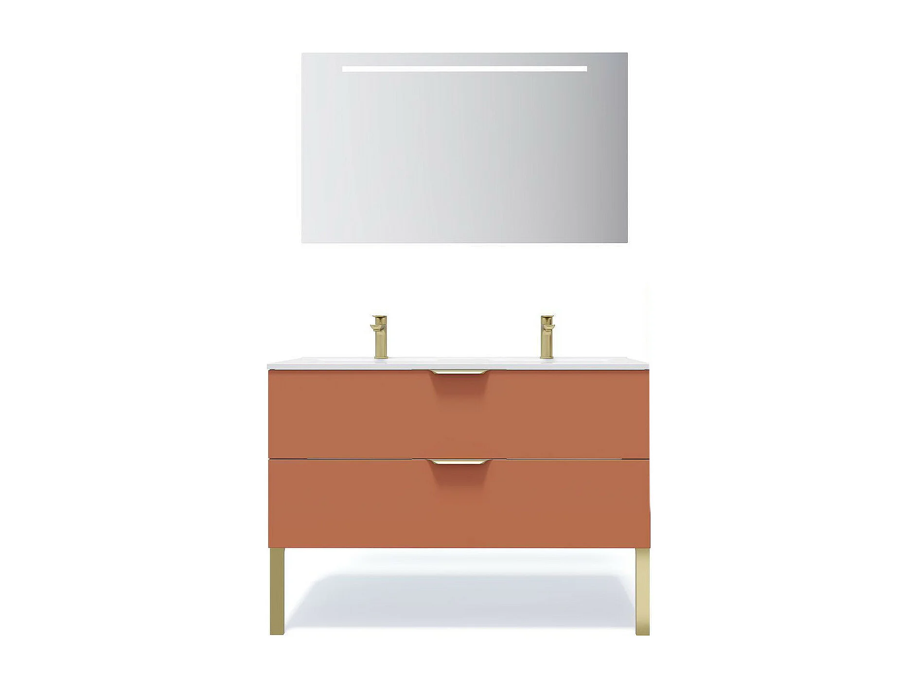 Meuble de salle de bain suspendu double vasque intégrée 120cm 2 tiroirs Terracotta + miroir - Venice