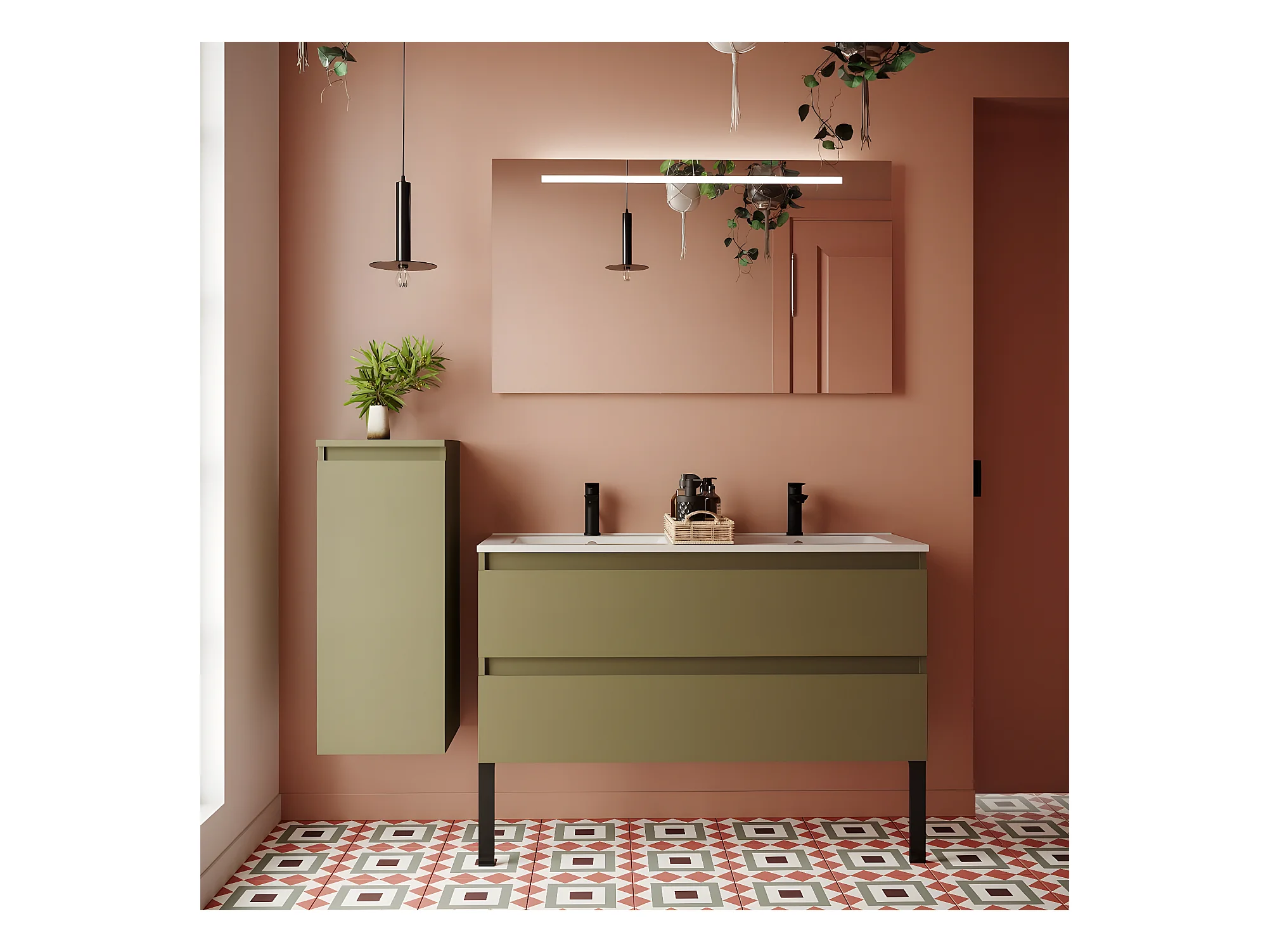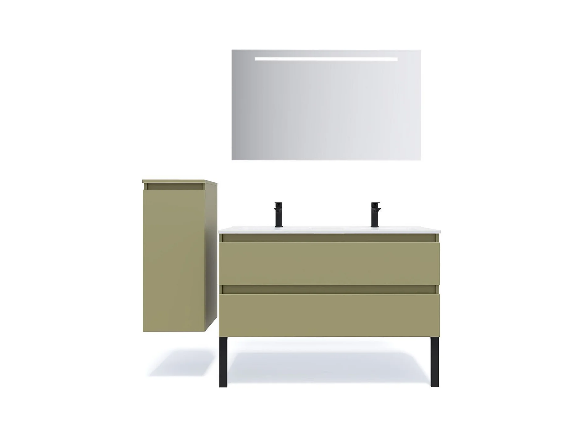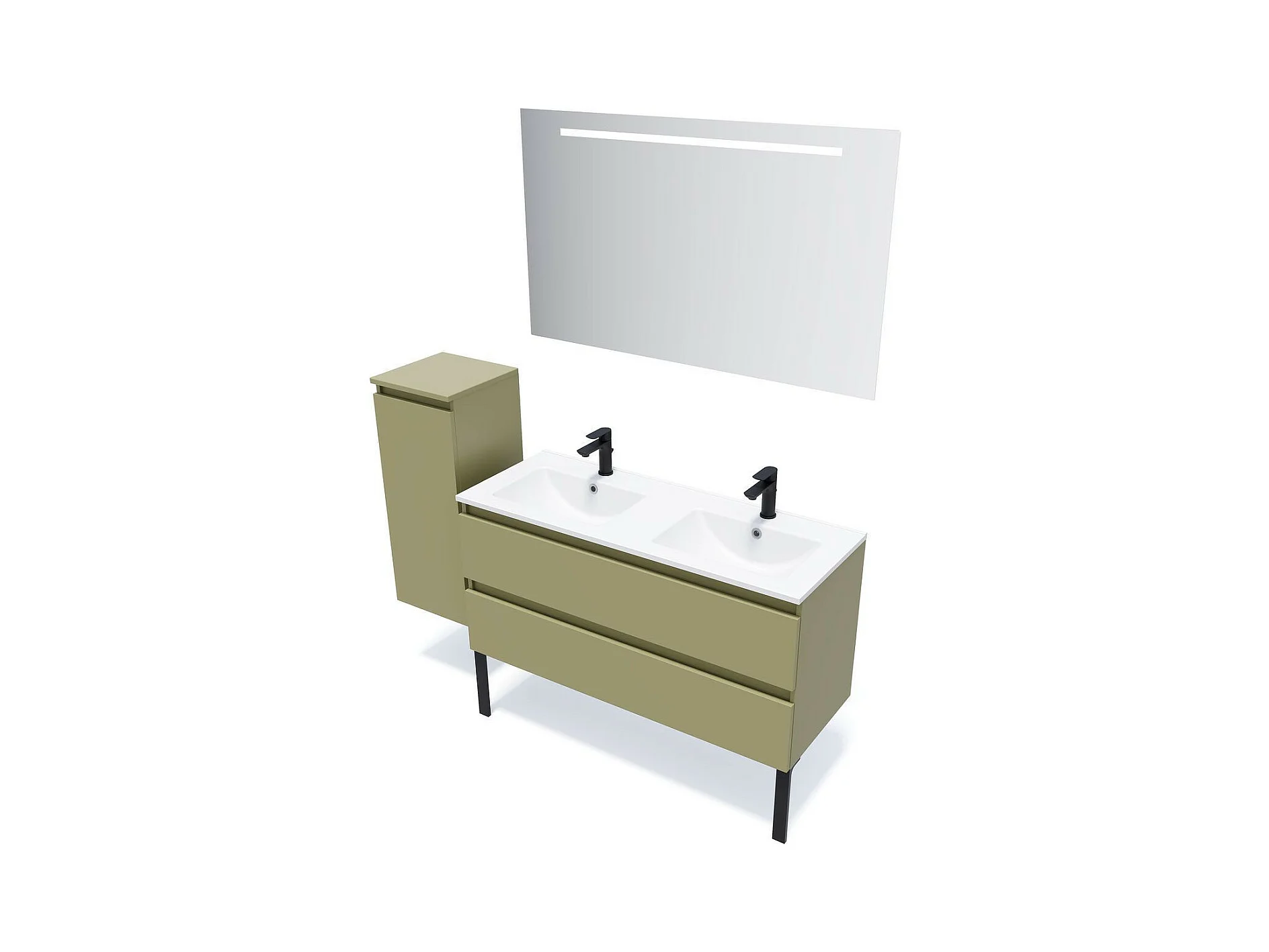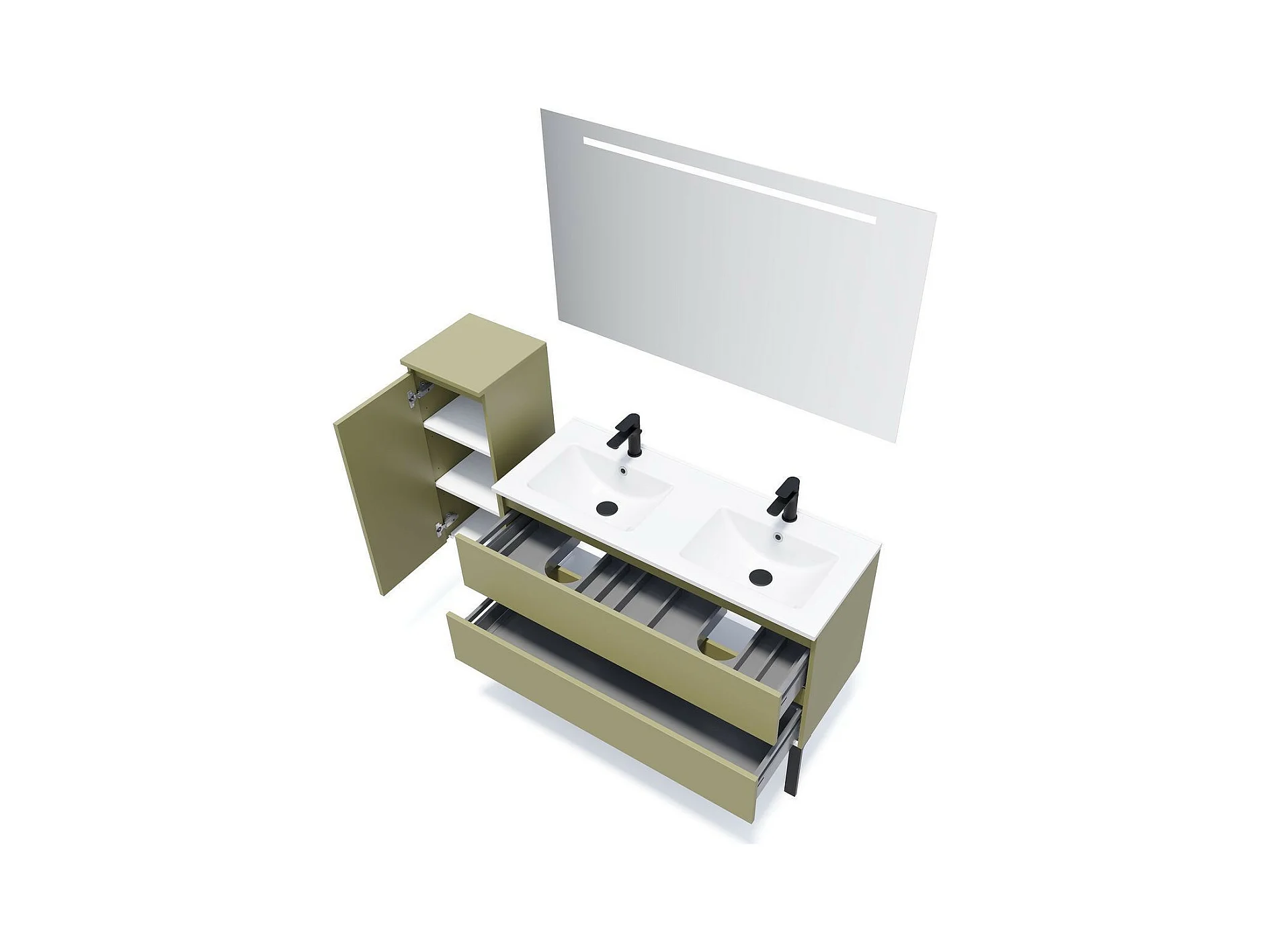 Meuble de salle de bain suspendu double vasque intégrée 120cm 2 tiroirs Vert olive - Hudson