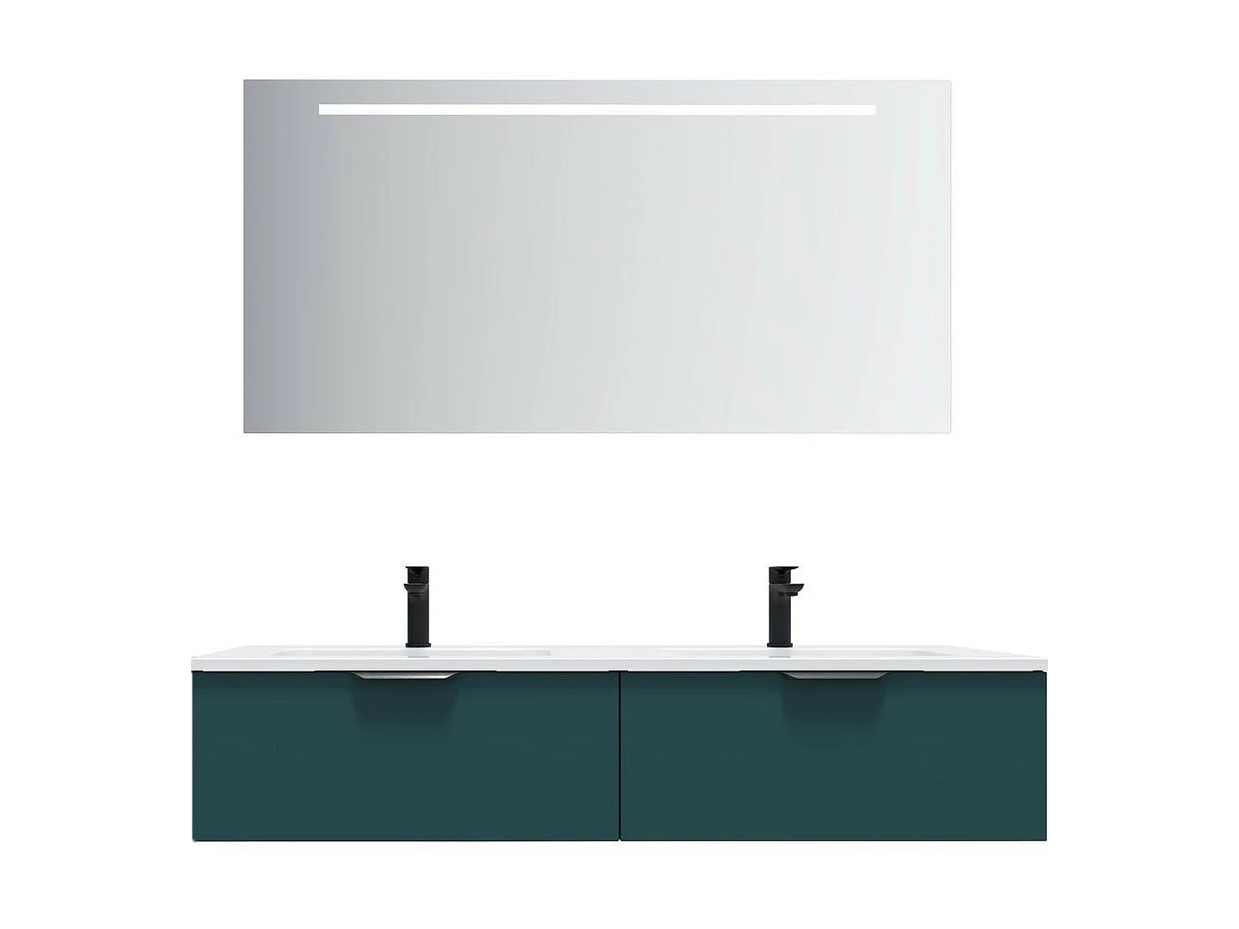 Meuble de salle de bain suspendu double vasque intégrée 140cm 2 tiroirs Bleu + miroir - Soho