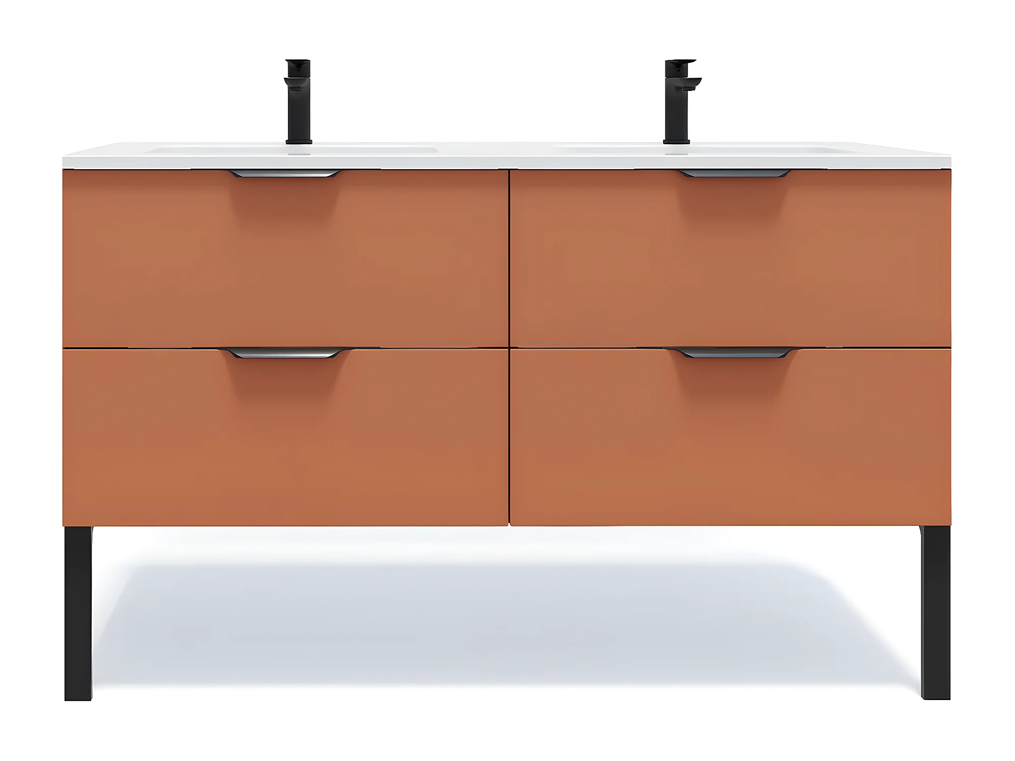 Meuble de salle de bain suspendu double vasque intégrée 140cm 4 tiroirs Terracotta - Soho