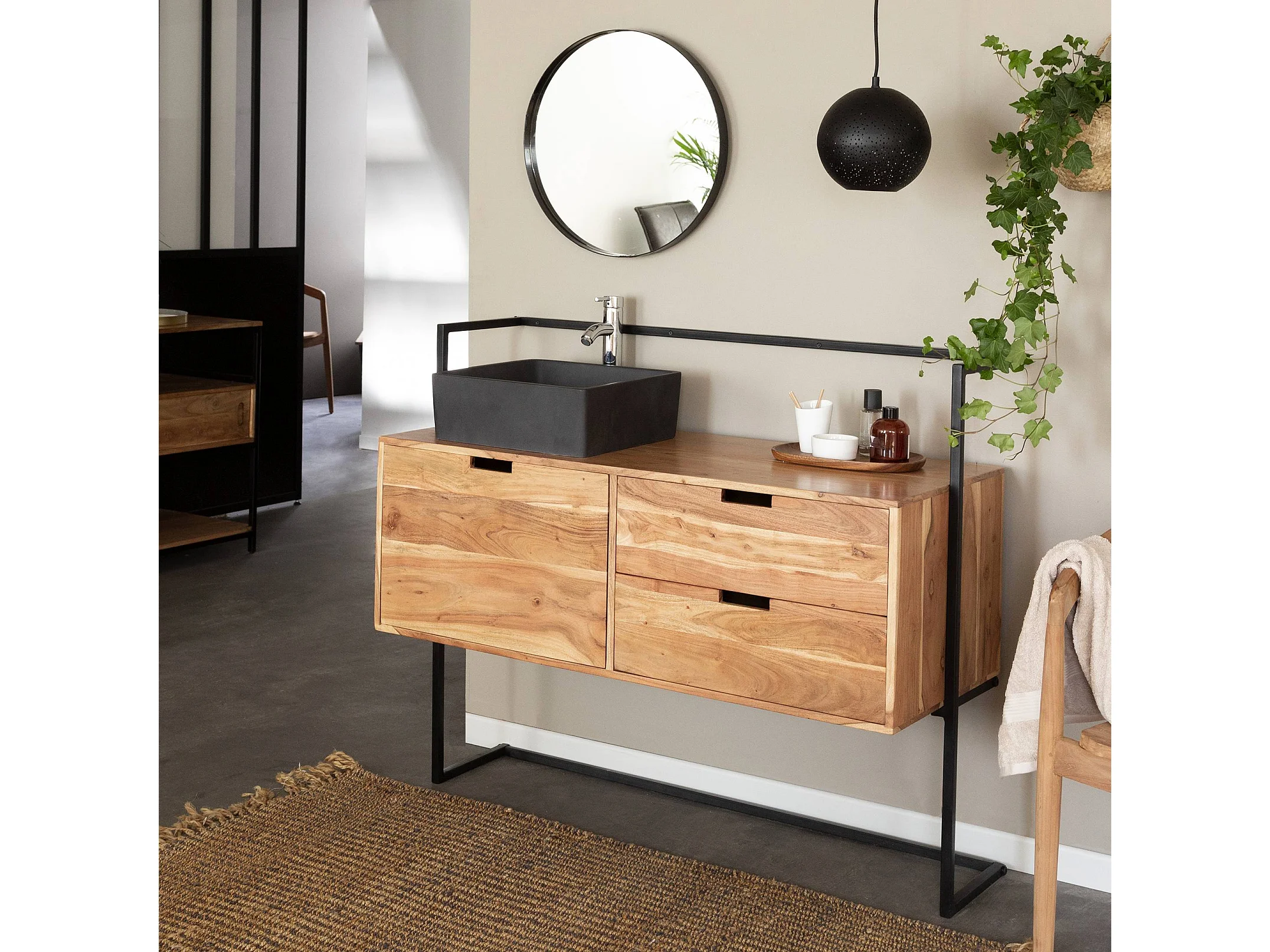 Meuble sous vasque en bois d'acacia et métal Ninon