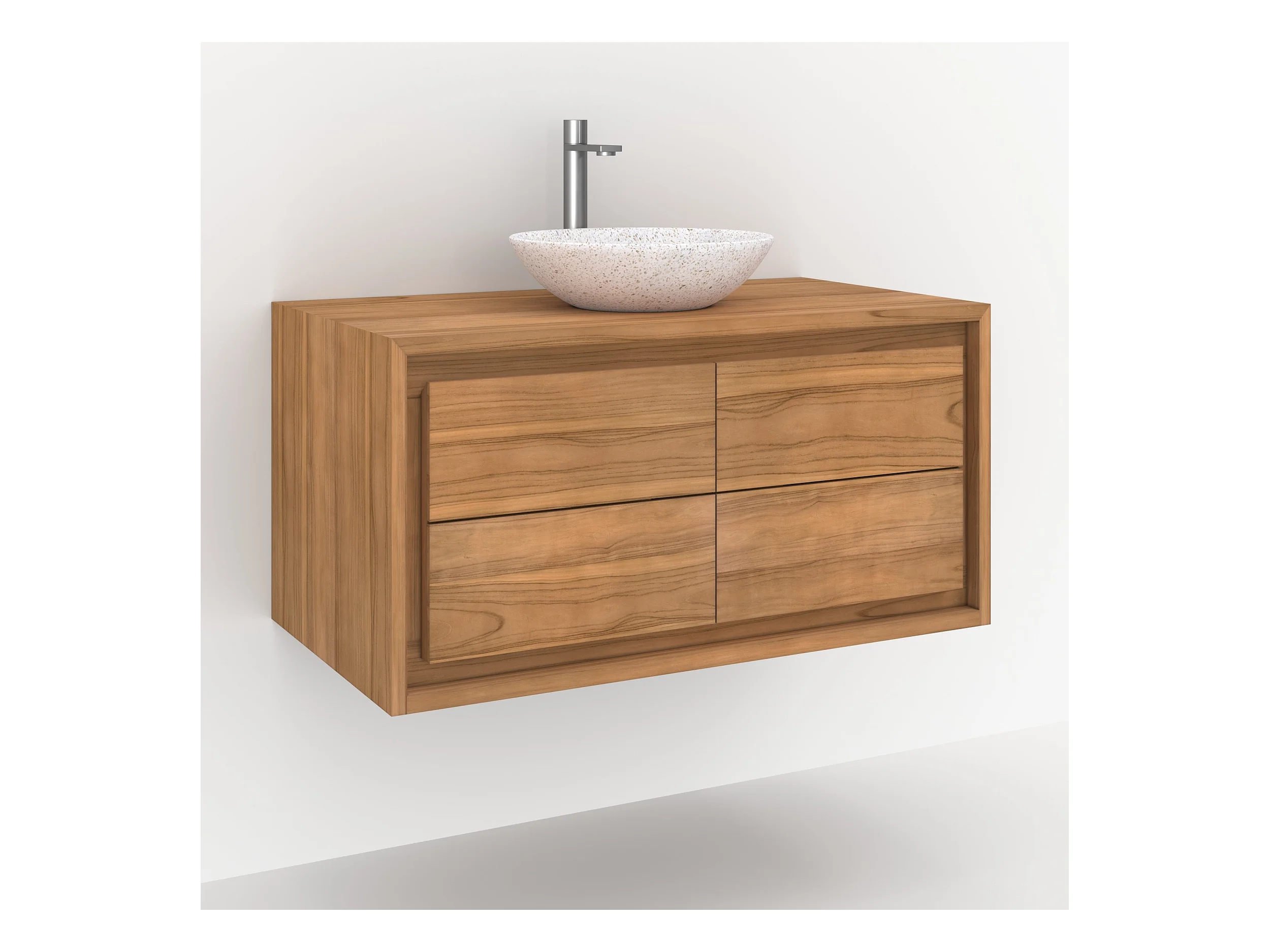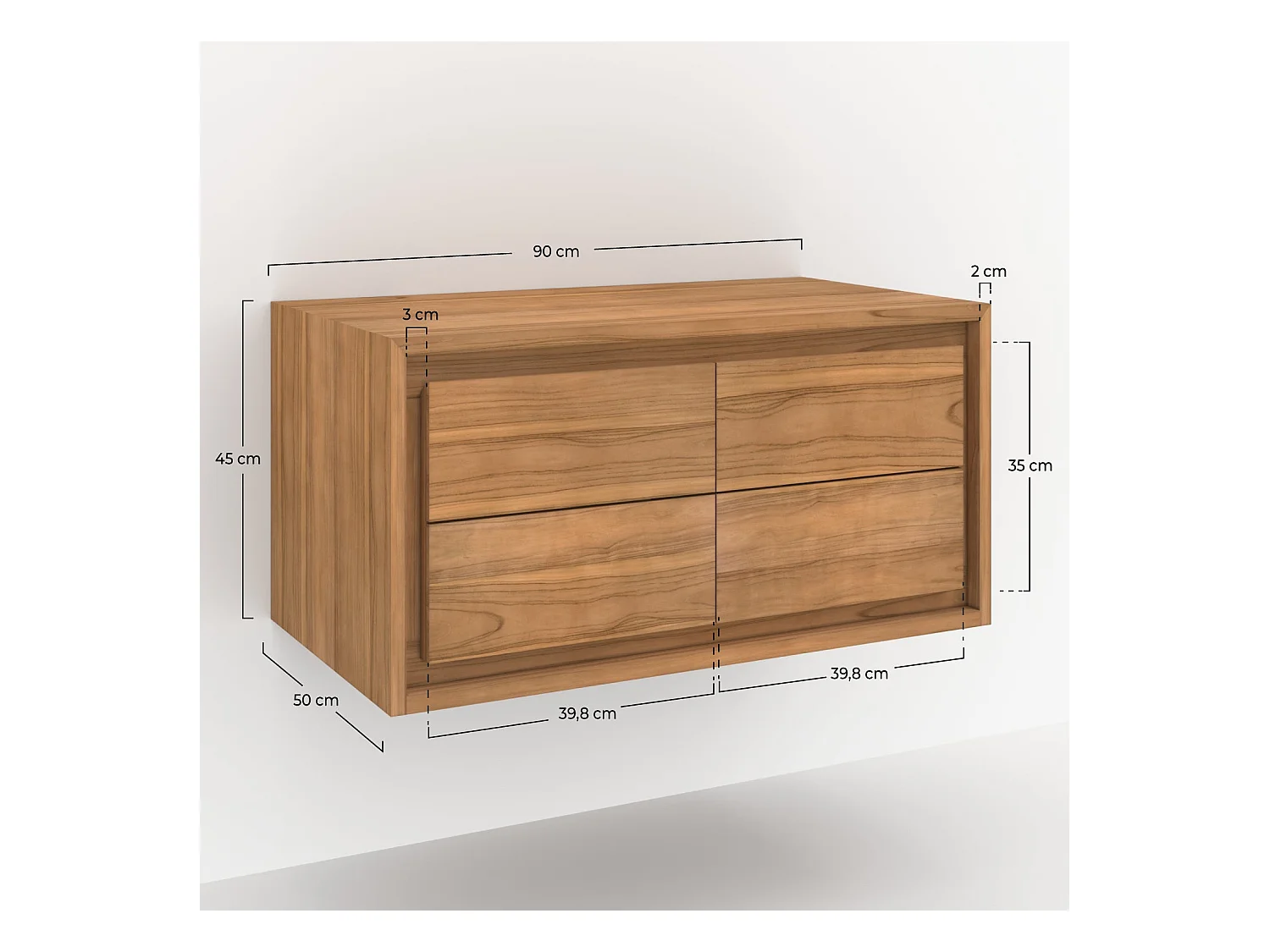 Meuble de salle de bain suspendu en bois de teck 90 cm - Hera