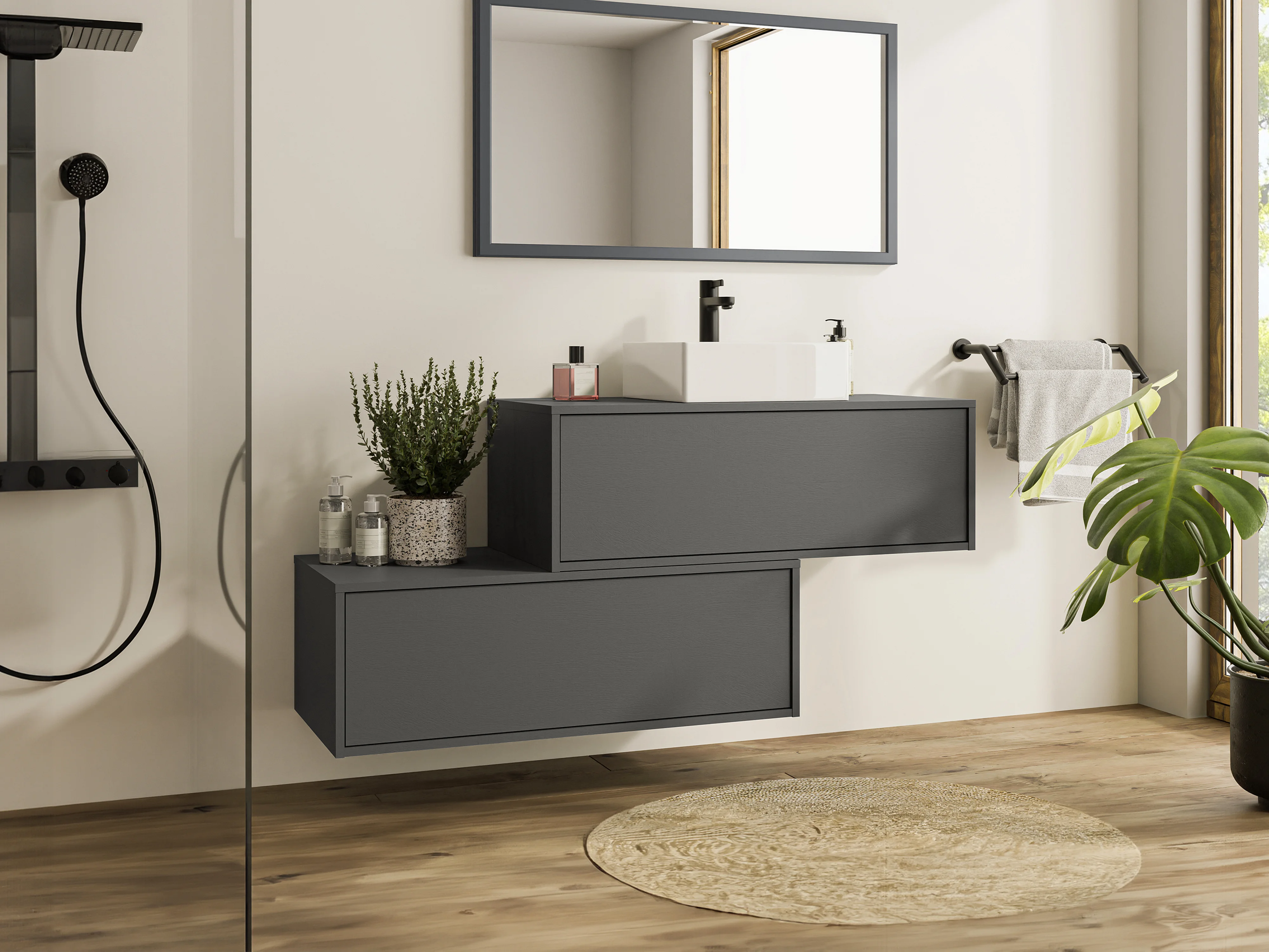 Meuble de salle de bain suspendu gris anthracite avec simple vasque carrée et deux tiroirs - 94 cm - TEANA II
