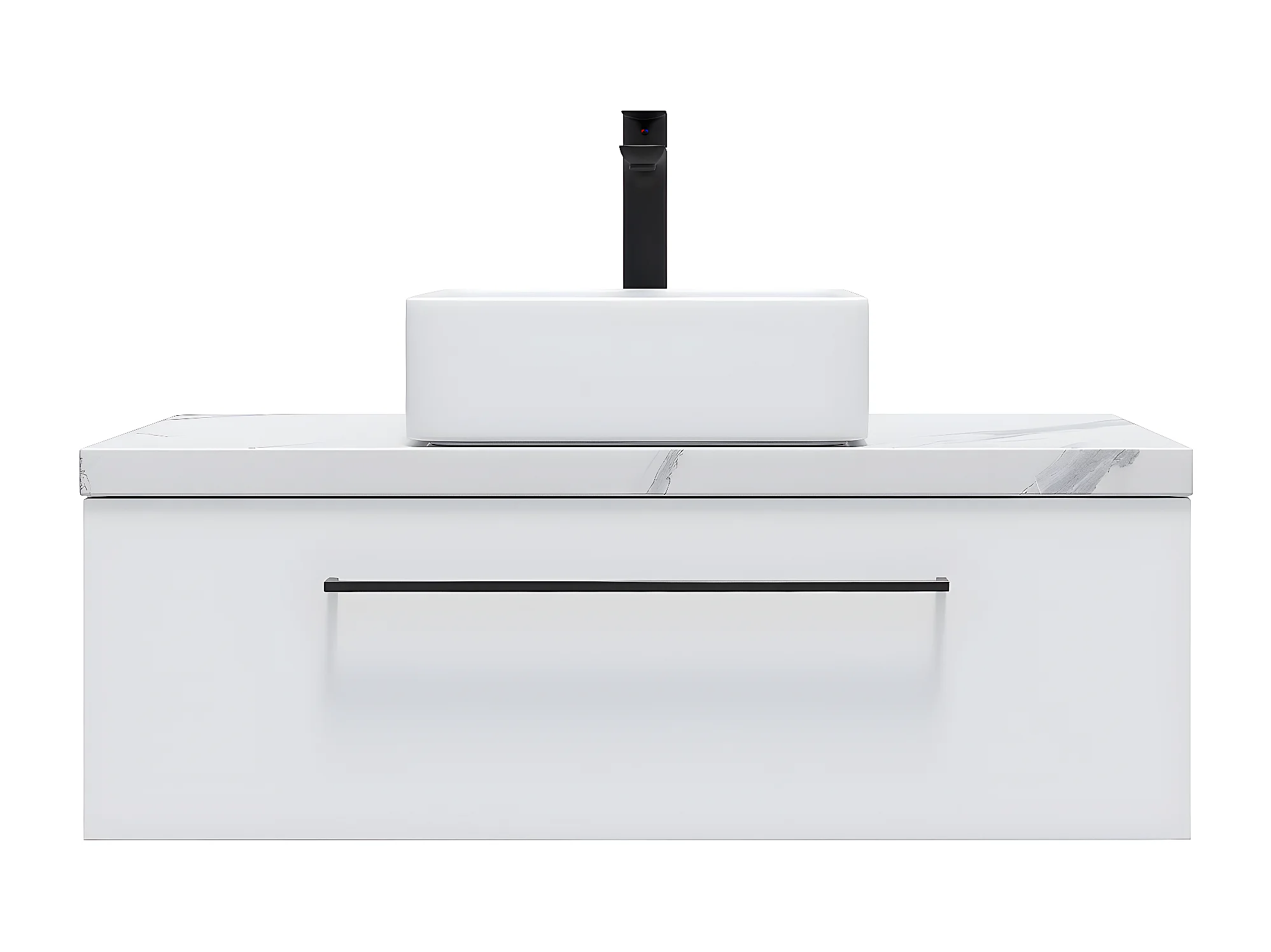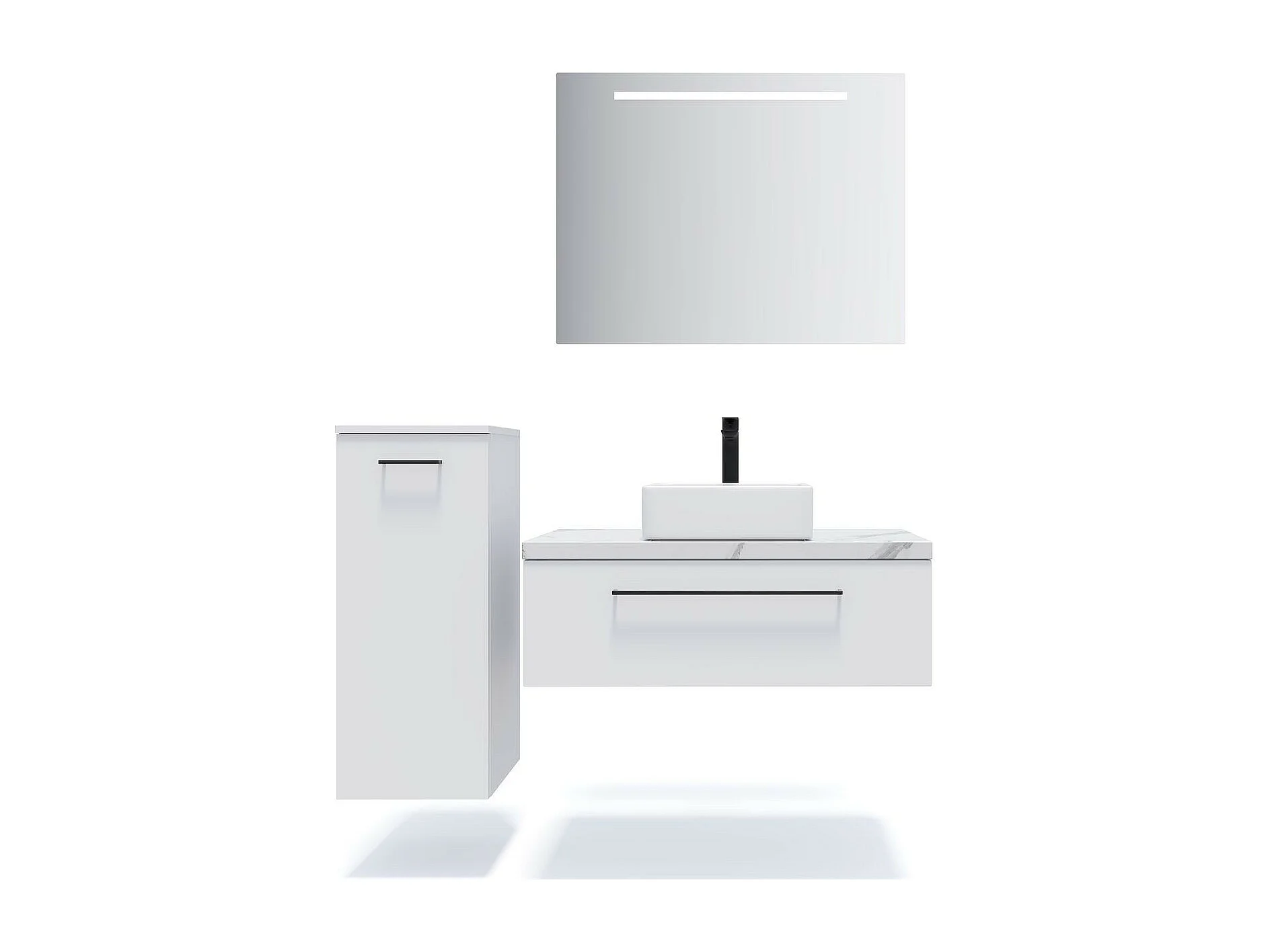 Meuble de salle de bain suspendu vasque à poser 90cm 1 tiroir Blanc - Glasgow