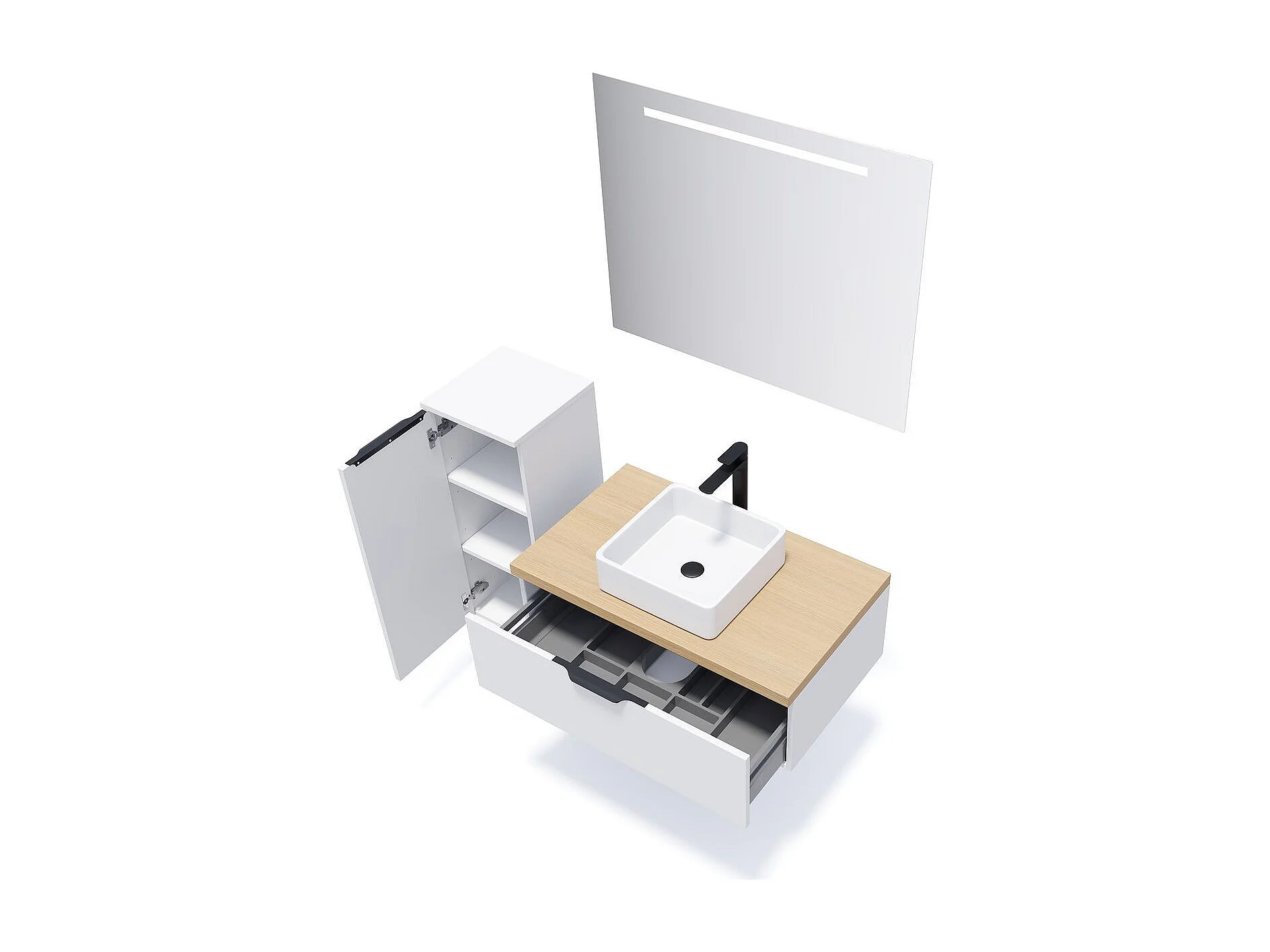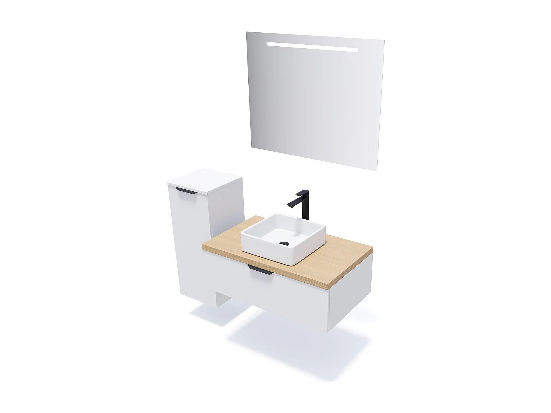 Meuble de salle de bain suspendu vasque à poser 90cm 1 tiroir Blanc - Soho