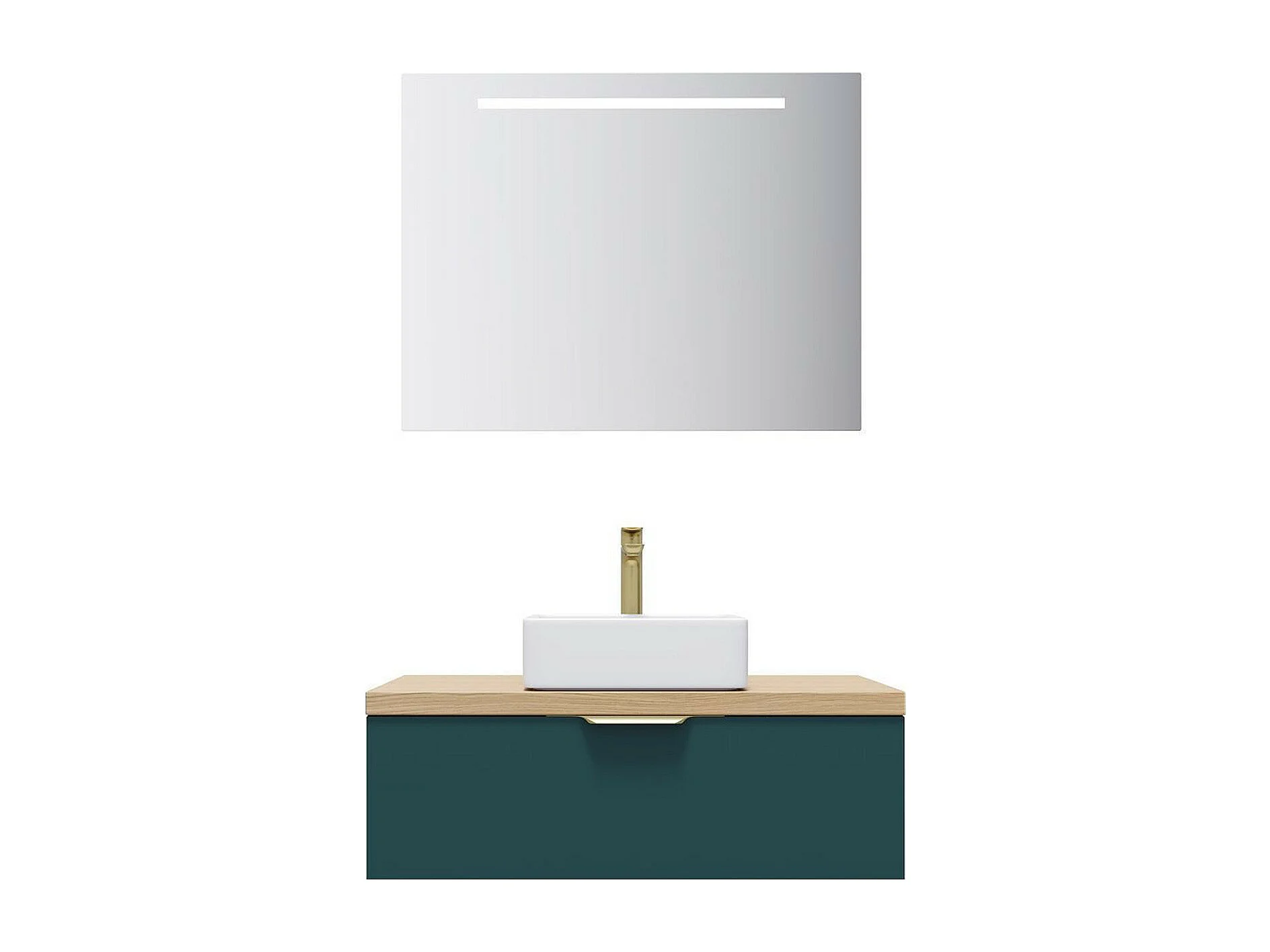 Meuble de salle de bain suspendu vasque à poser 90cm 1 tiroir Bleu + miroir - Venice