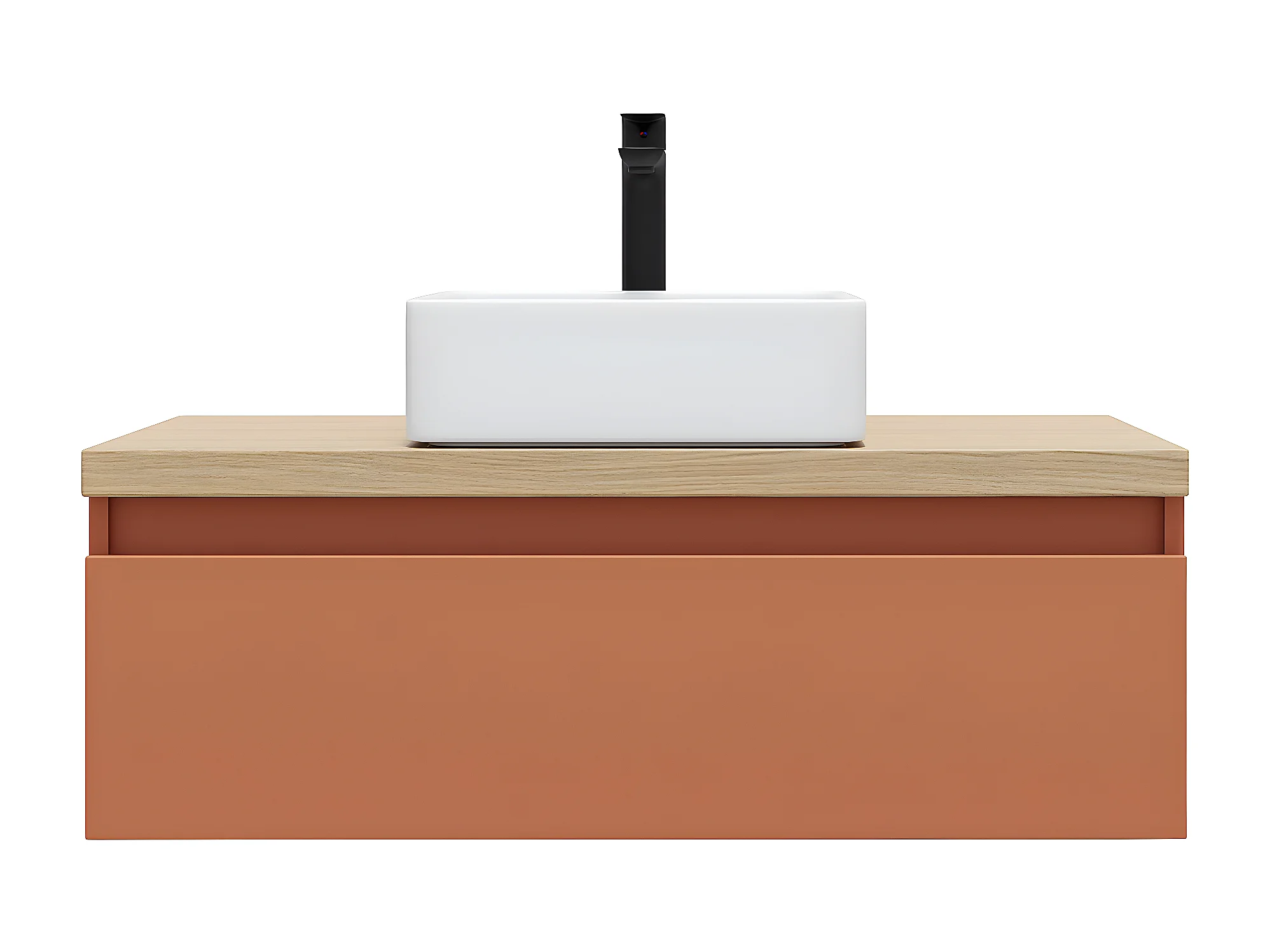 Meuble de salle de bain suspendu vasque à poser 90cm 1 tiroir Terracotta - Hudson