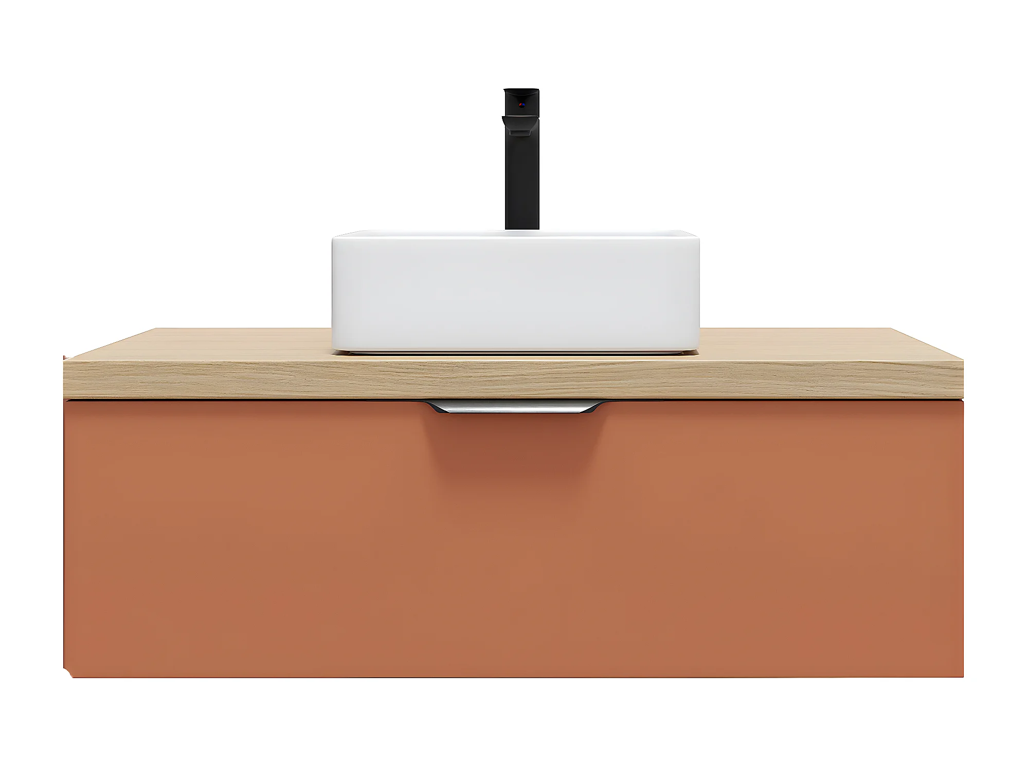 Meuble de salle de bain suspendu vasque à poser 90cm 1 tiroir Terracotta - Soho