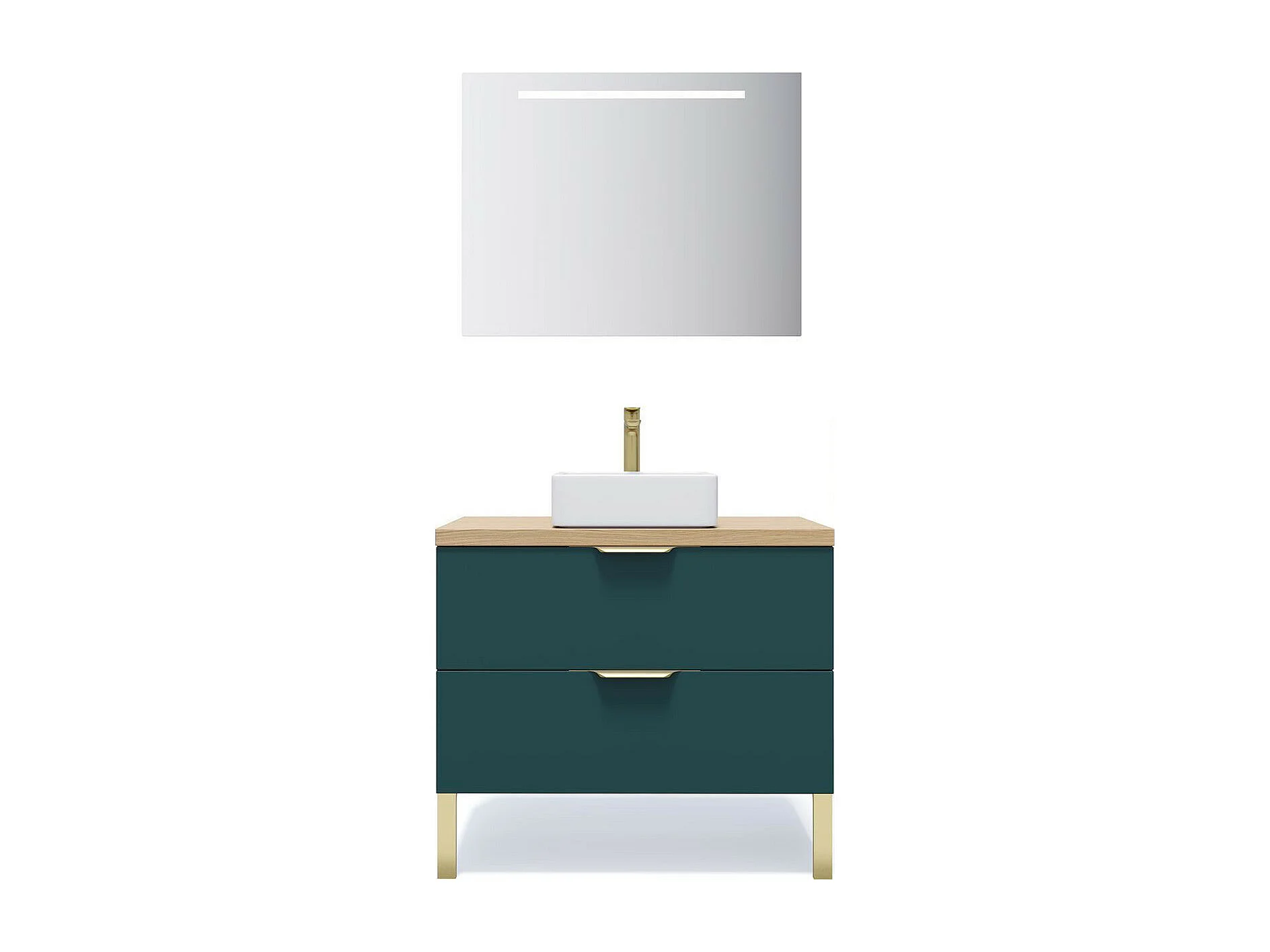 Meuble de salle de bain suspendu vasque à poser 90cm 2 tiroirs Bleu + miroir - Venice