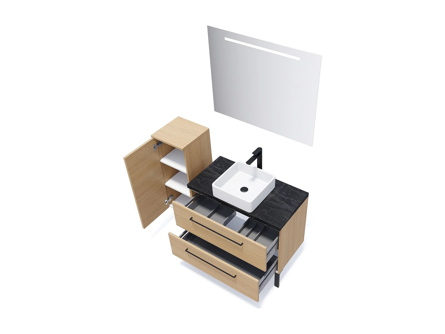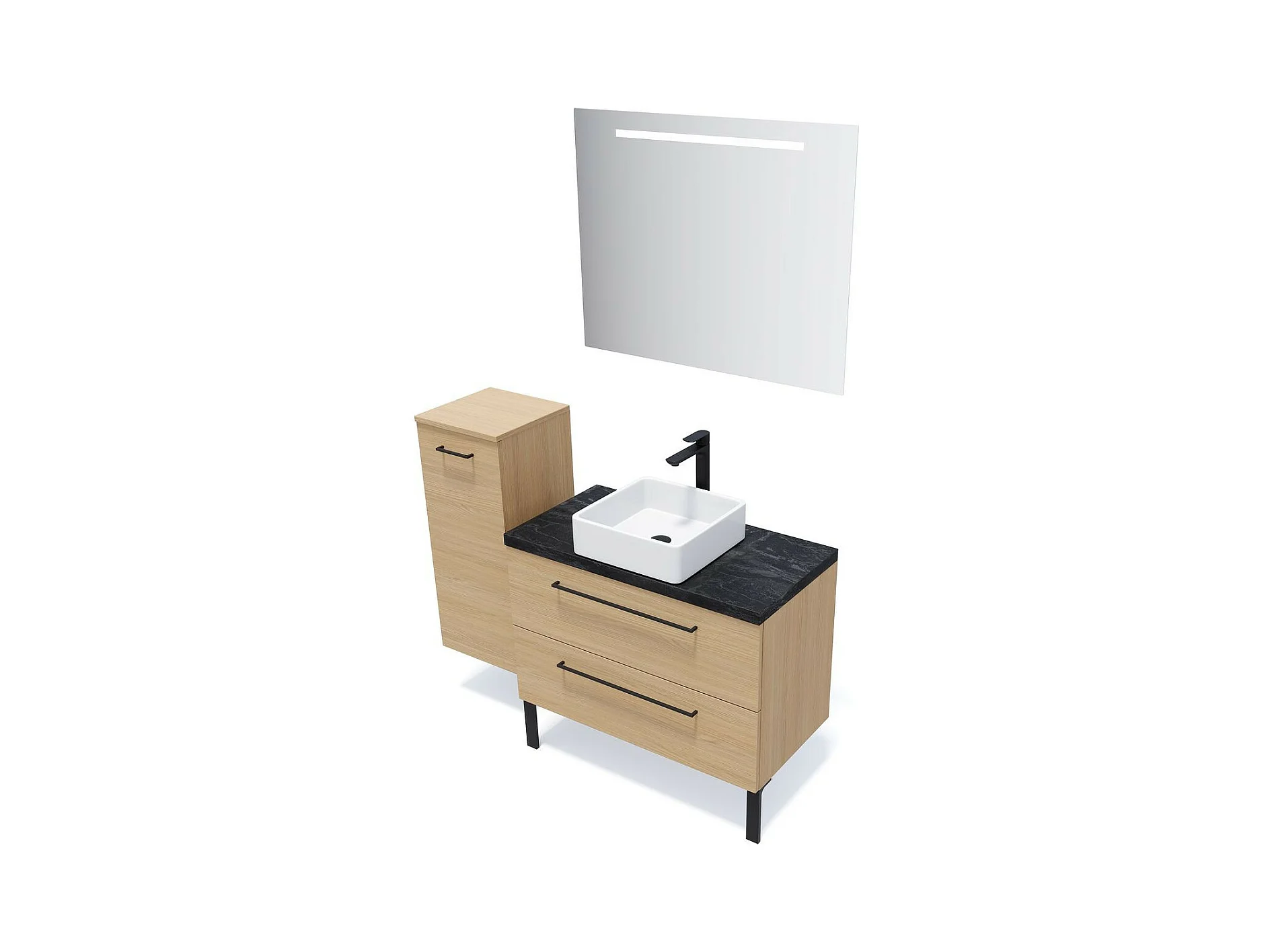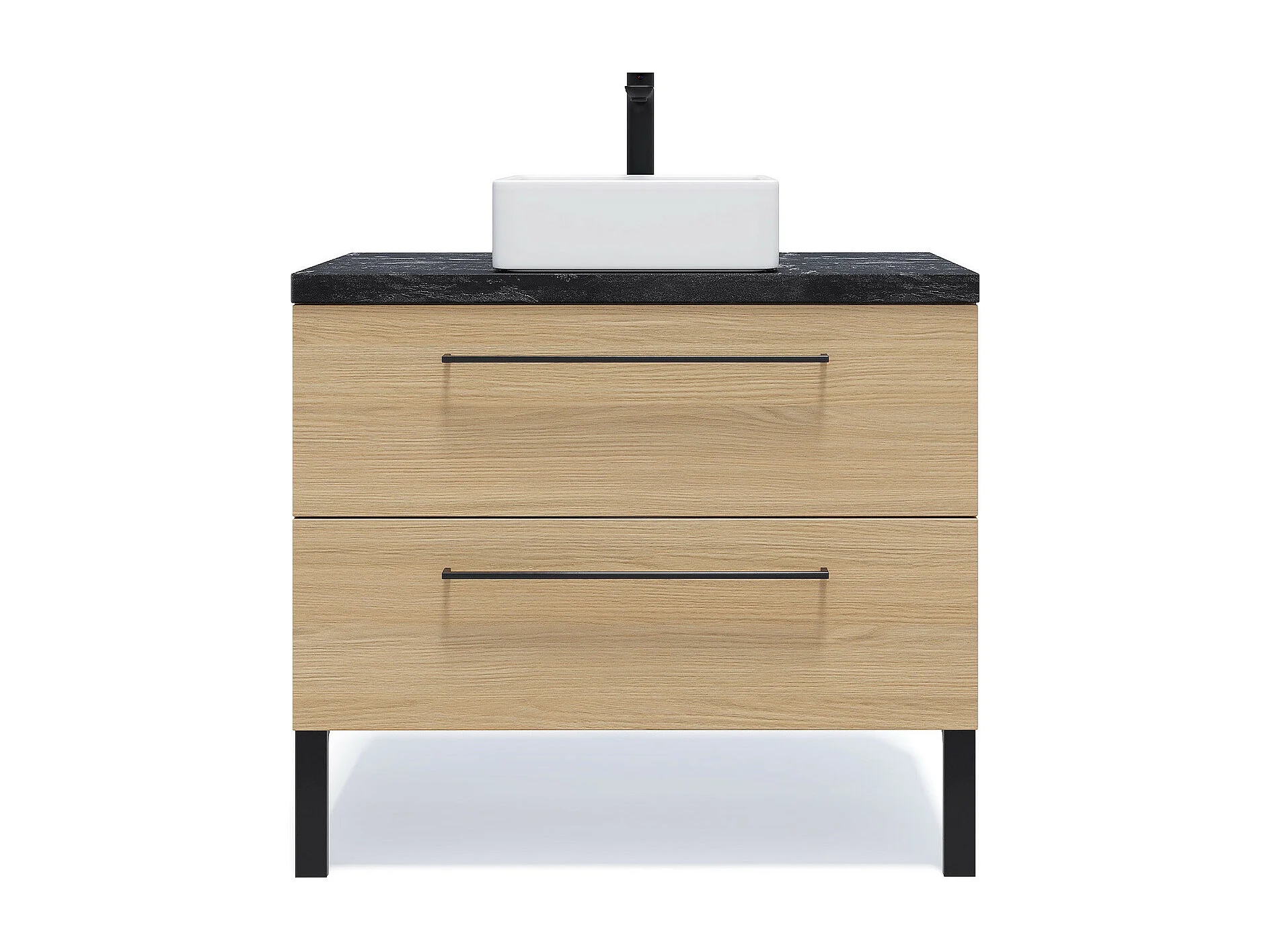 Meuble de salle de bain suspendu vasque à poser 90cm 2 tiroirs Chêne clair - Glasgow
