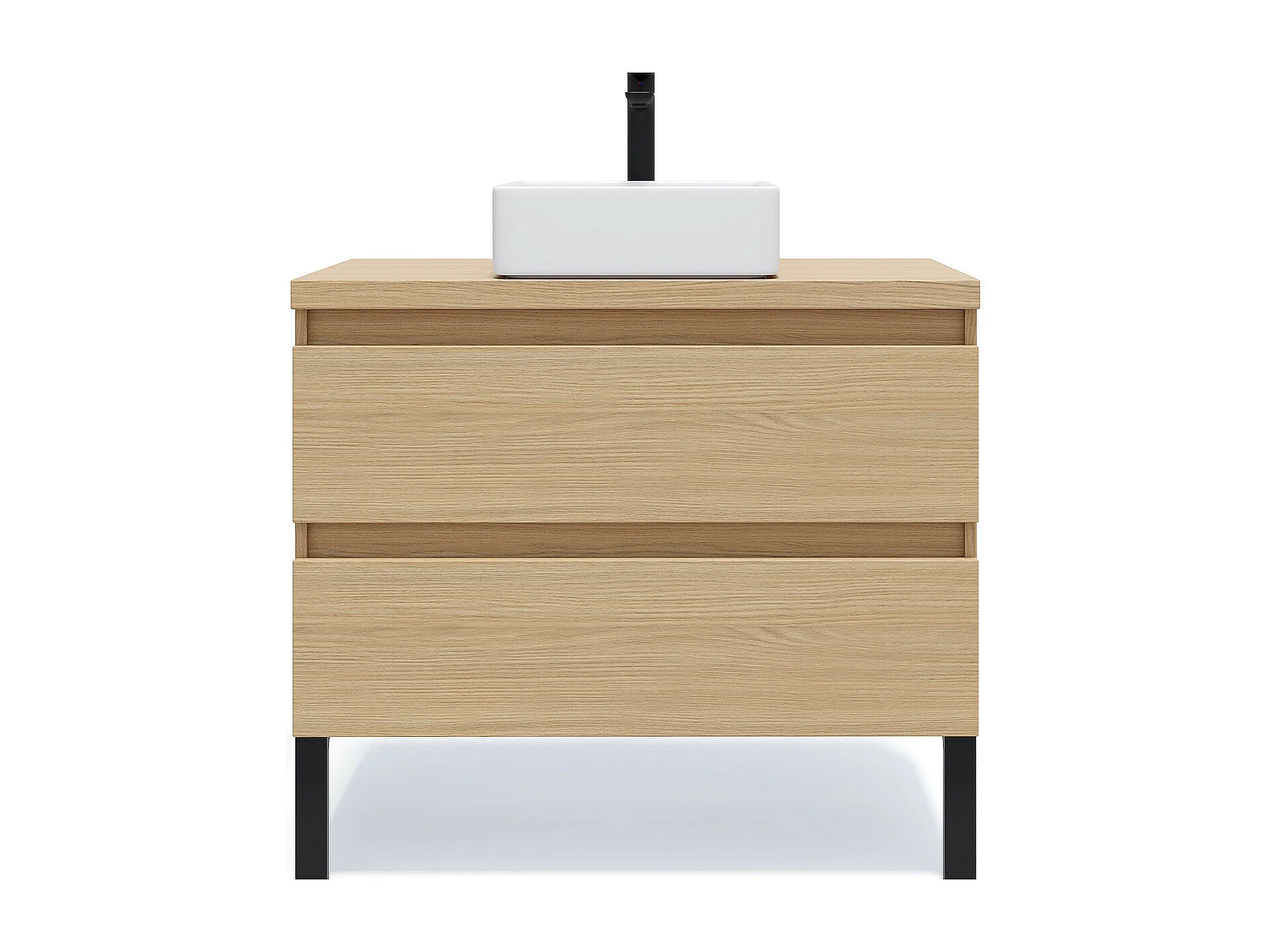 Meuble de salle de bain suspendu vasque à poser 90cm 2 tiroirs Chêne clair - Hudson