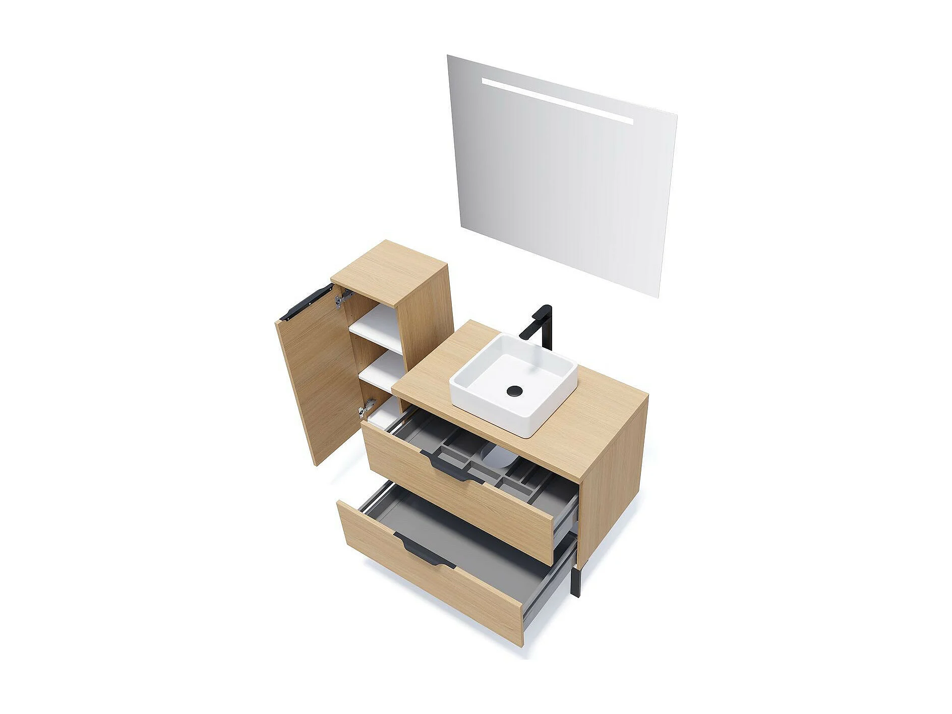 Meuble de salle de bain suspendu vasque à poser 90cm 2 tiroirs Chêne clair - Soho
