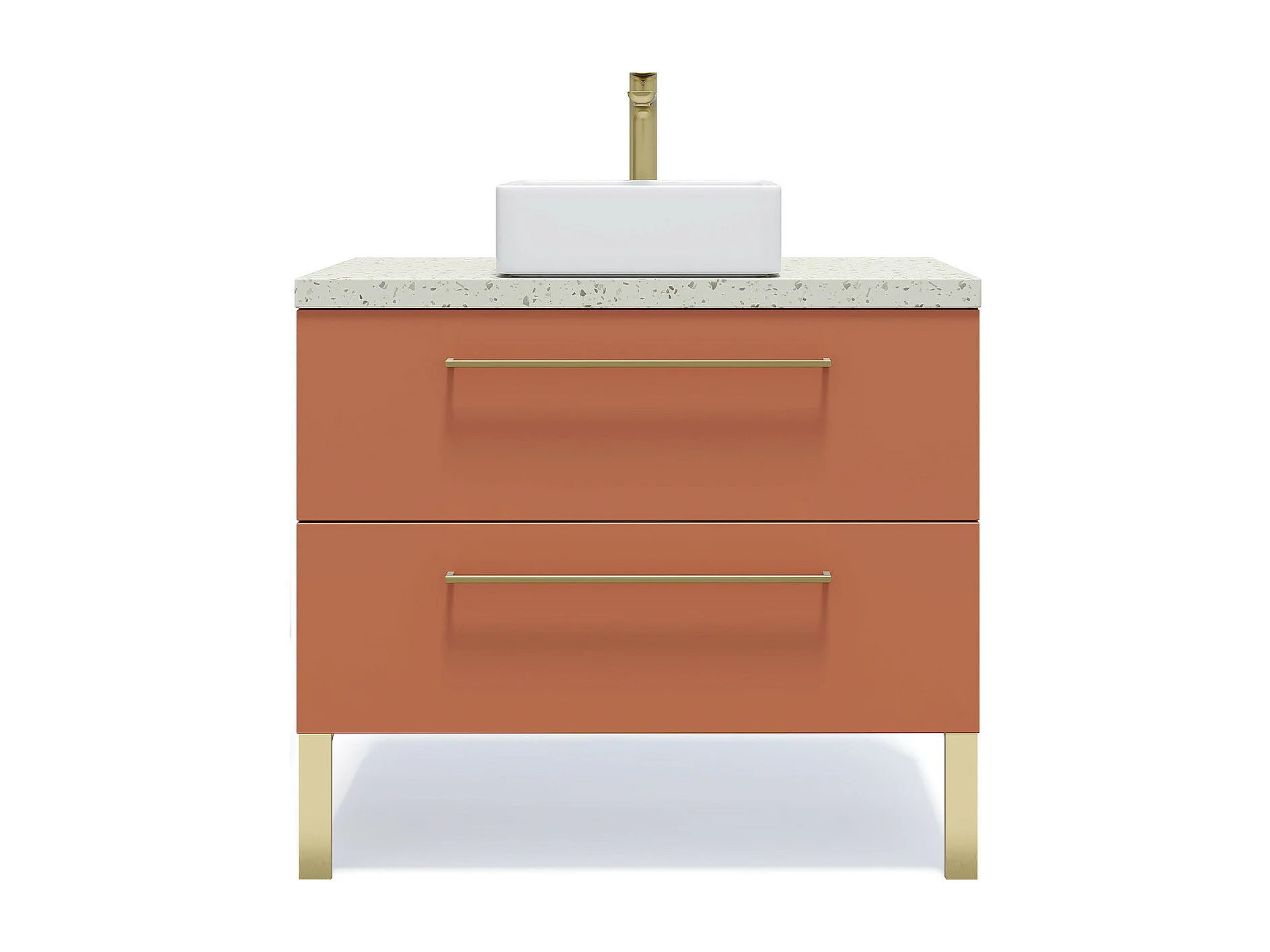 Meuble de salle de bain suspendu vasque à poser 90cm 2 tiroirs Terracotta - Glasgow
