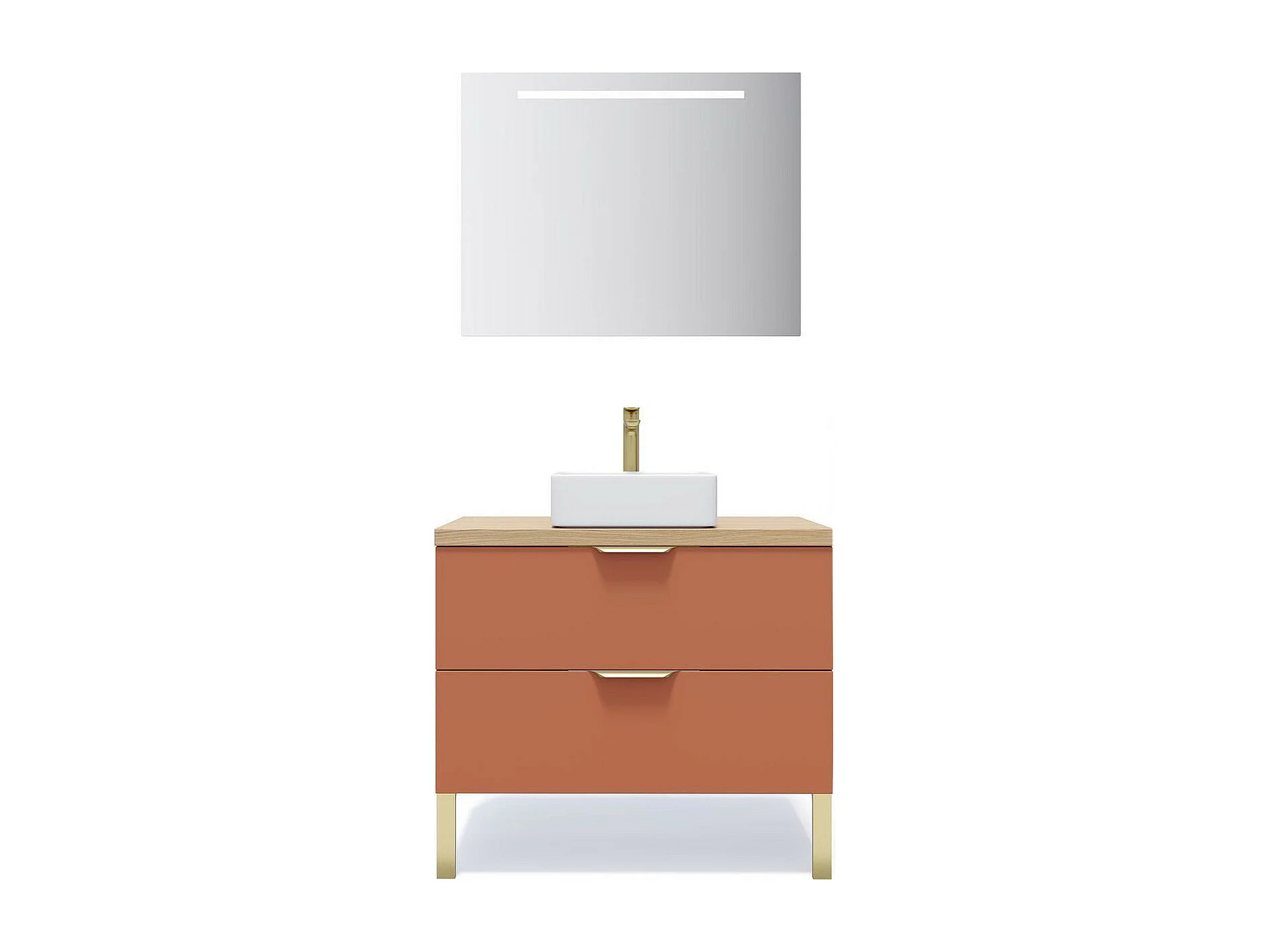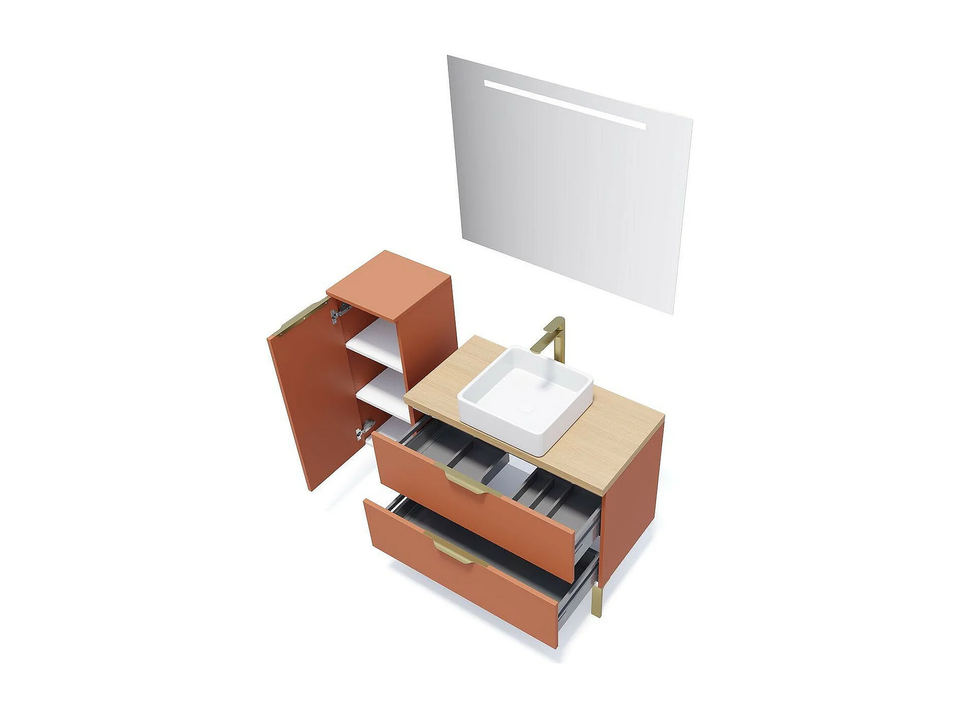 Meuble de salle de bain suspendu vasque à poser 90cm 2 tiroirs Terracotta + miroir - Venice
