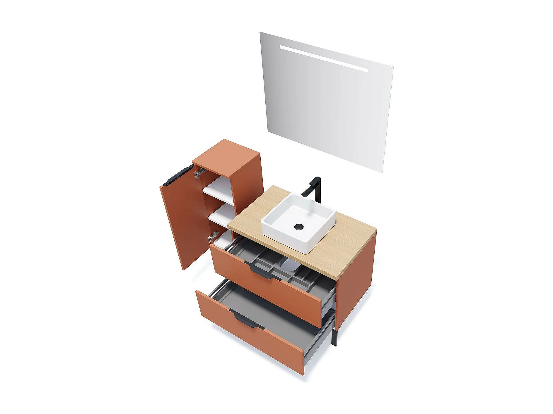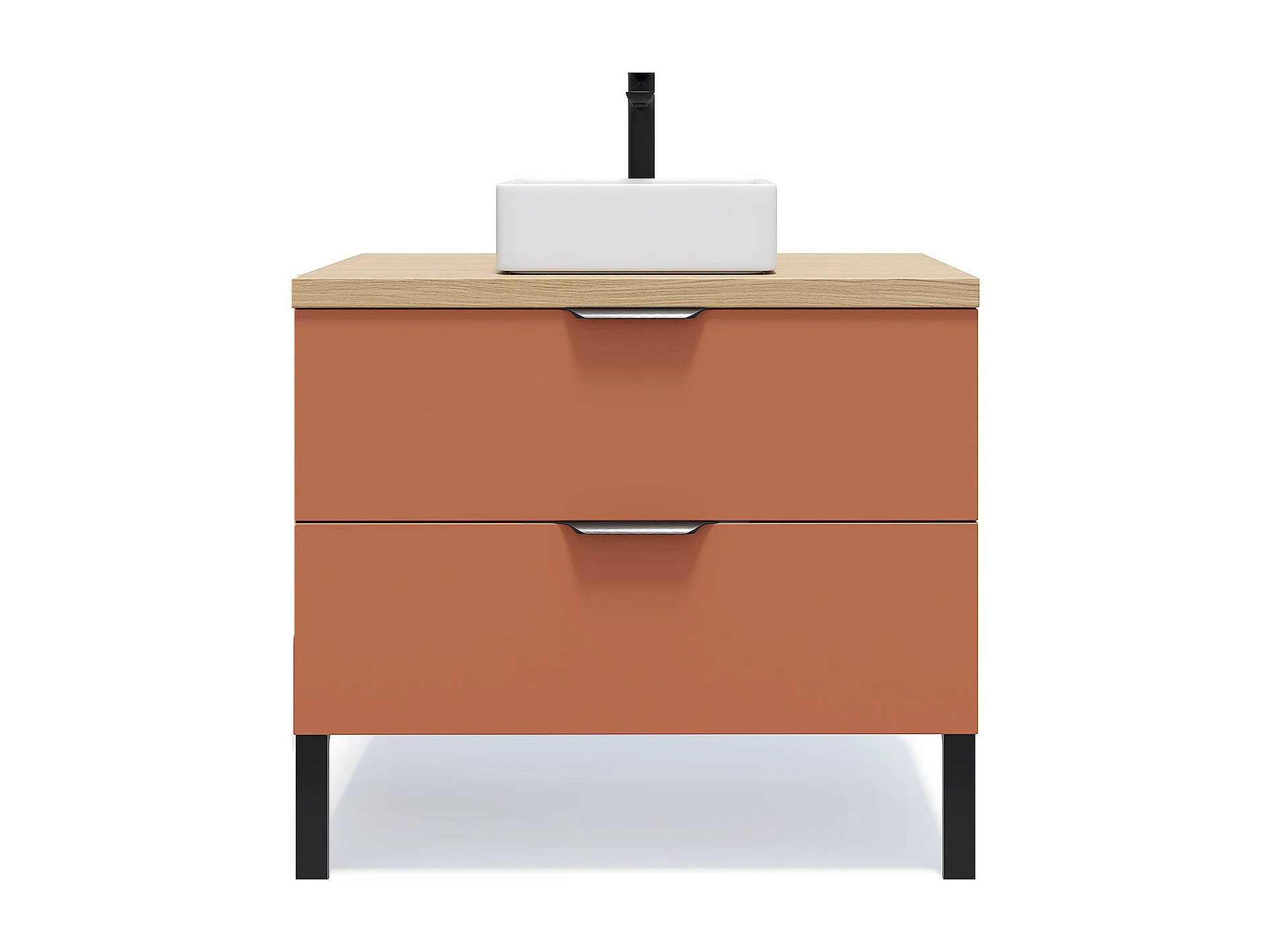 Meuble de salle de bain suspendu vasque à poser 90cm 2 tiroirs Terracotta - Soho