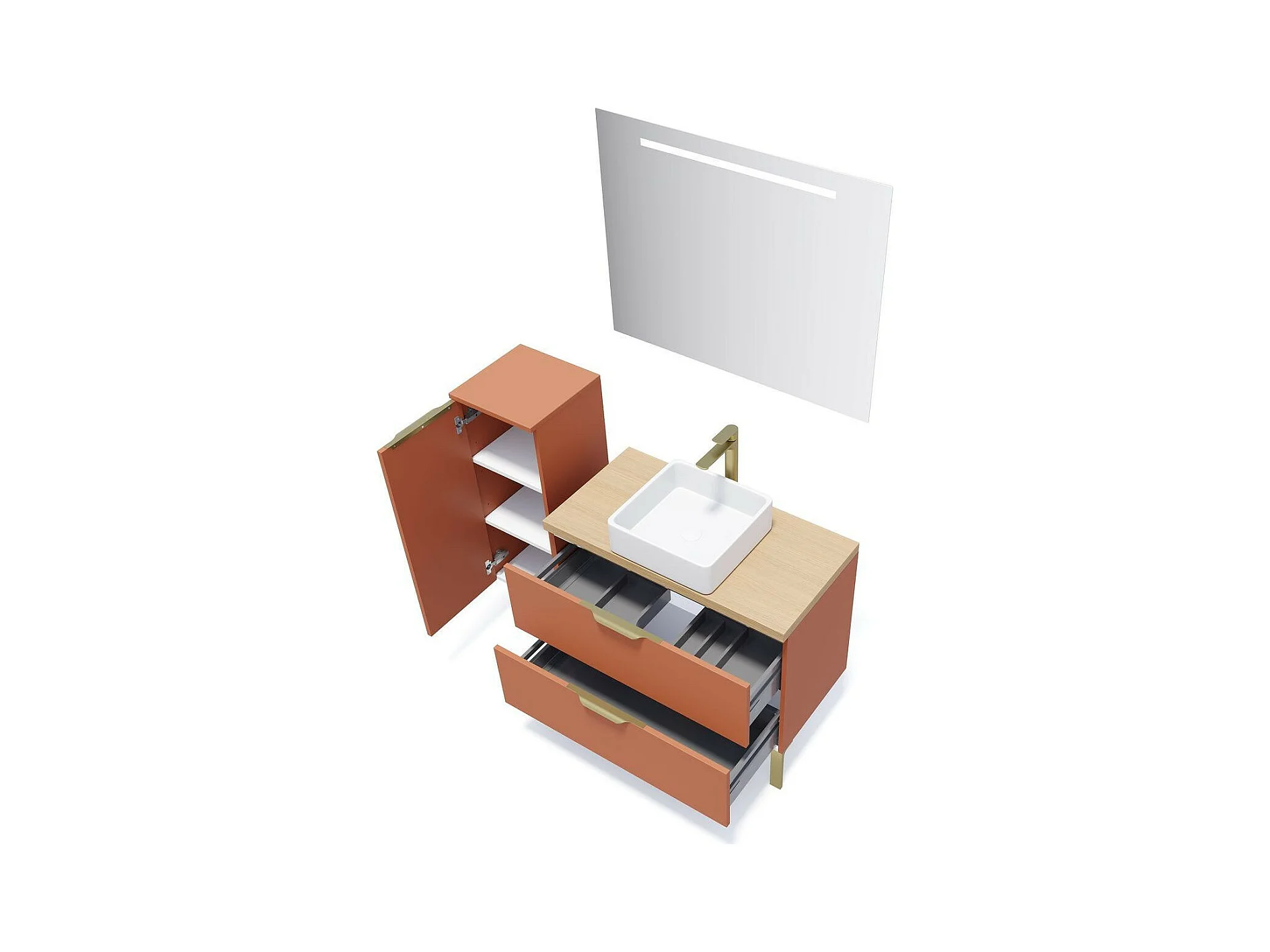 Meuble de salle de bain suspendu vasque à poser 90cm 2 tiroirs Terracotta - Venice