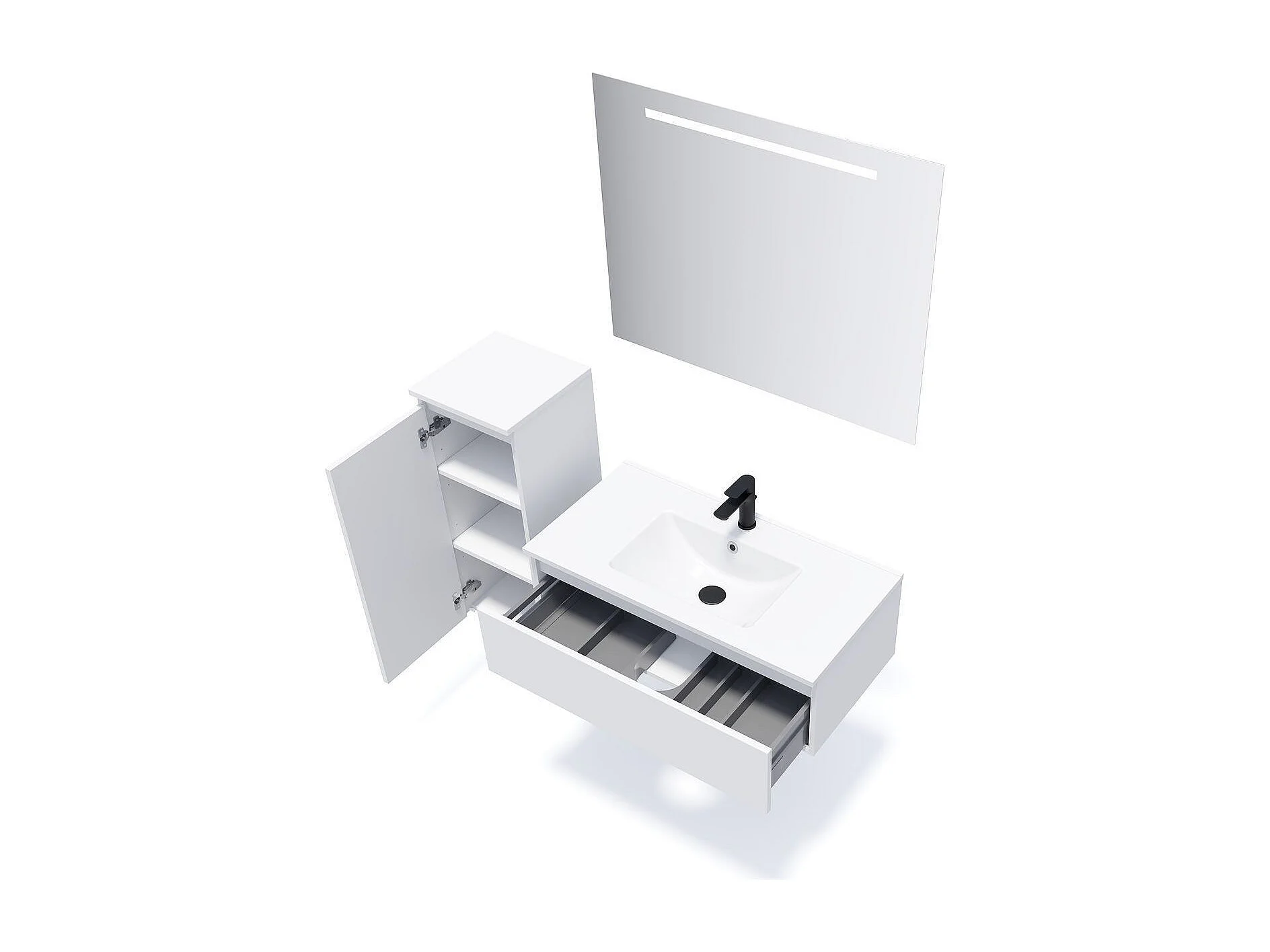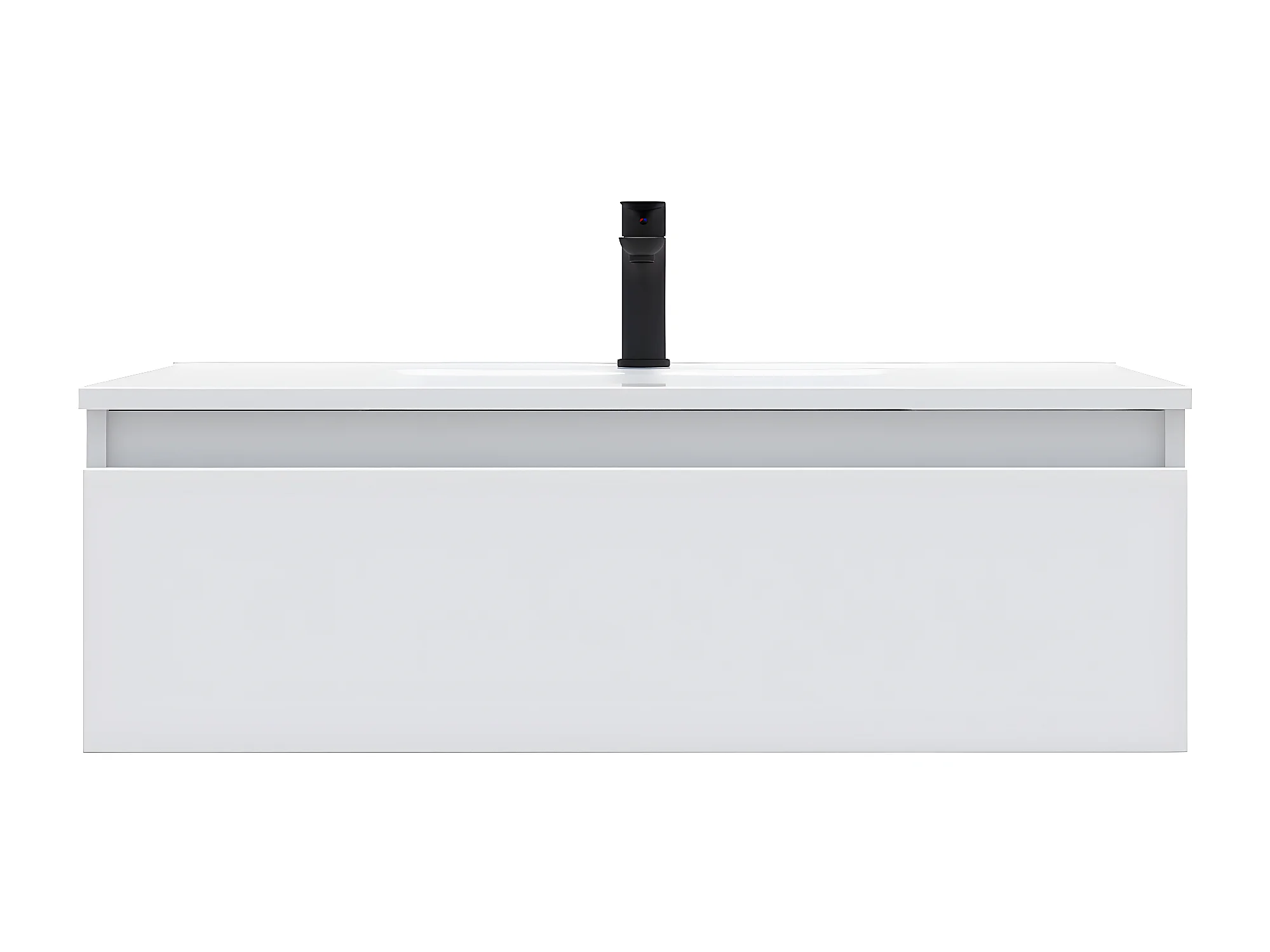Meuble de salle de bain suspendu vasque intégrée 90cm 1 tiroir Blanc - Hudson