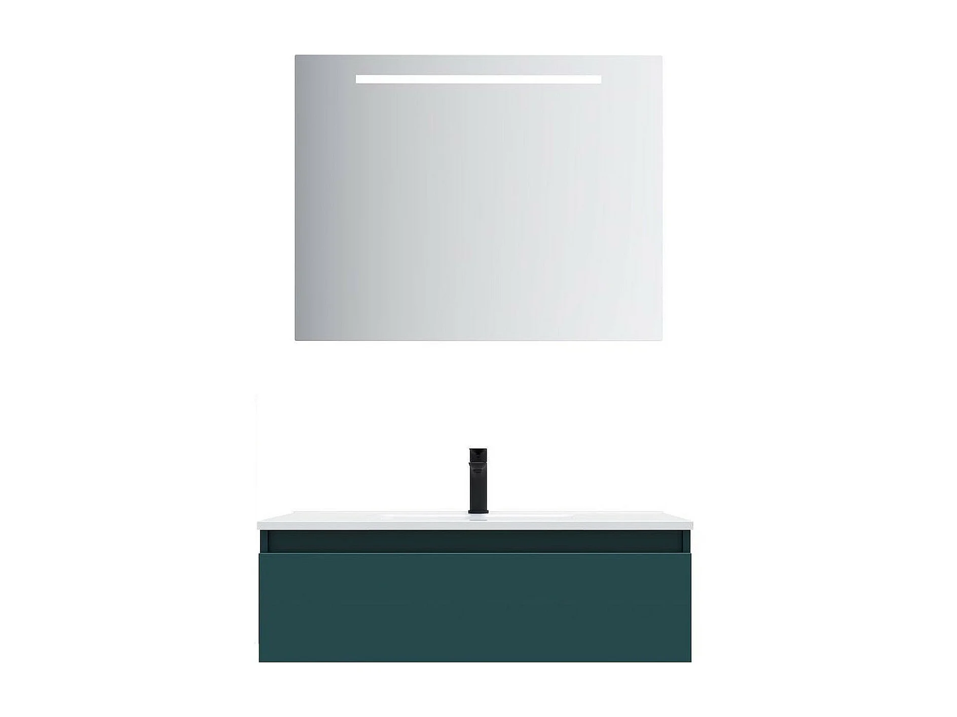 Meuble de salle de bain suspendu vasque intégrée 90cm 1 tiroir Bleu + miroir - Hudson