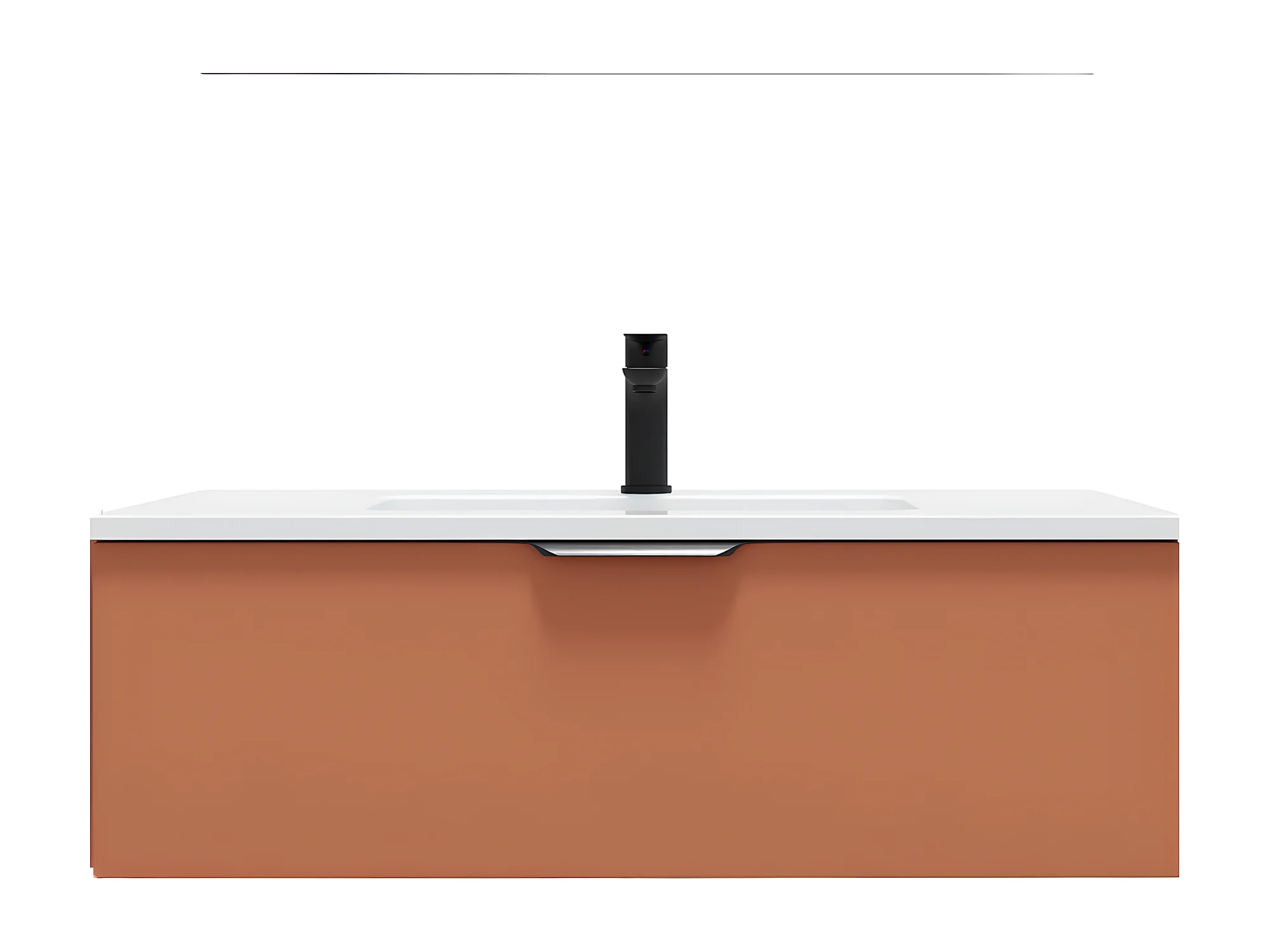 Meuble de salle de bain suspendu vasque intégrée 90cm 1 tiroir Terracotta - Soho