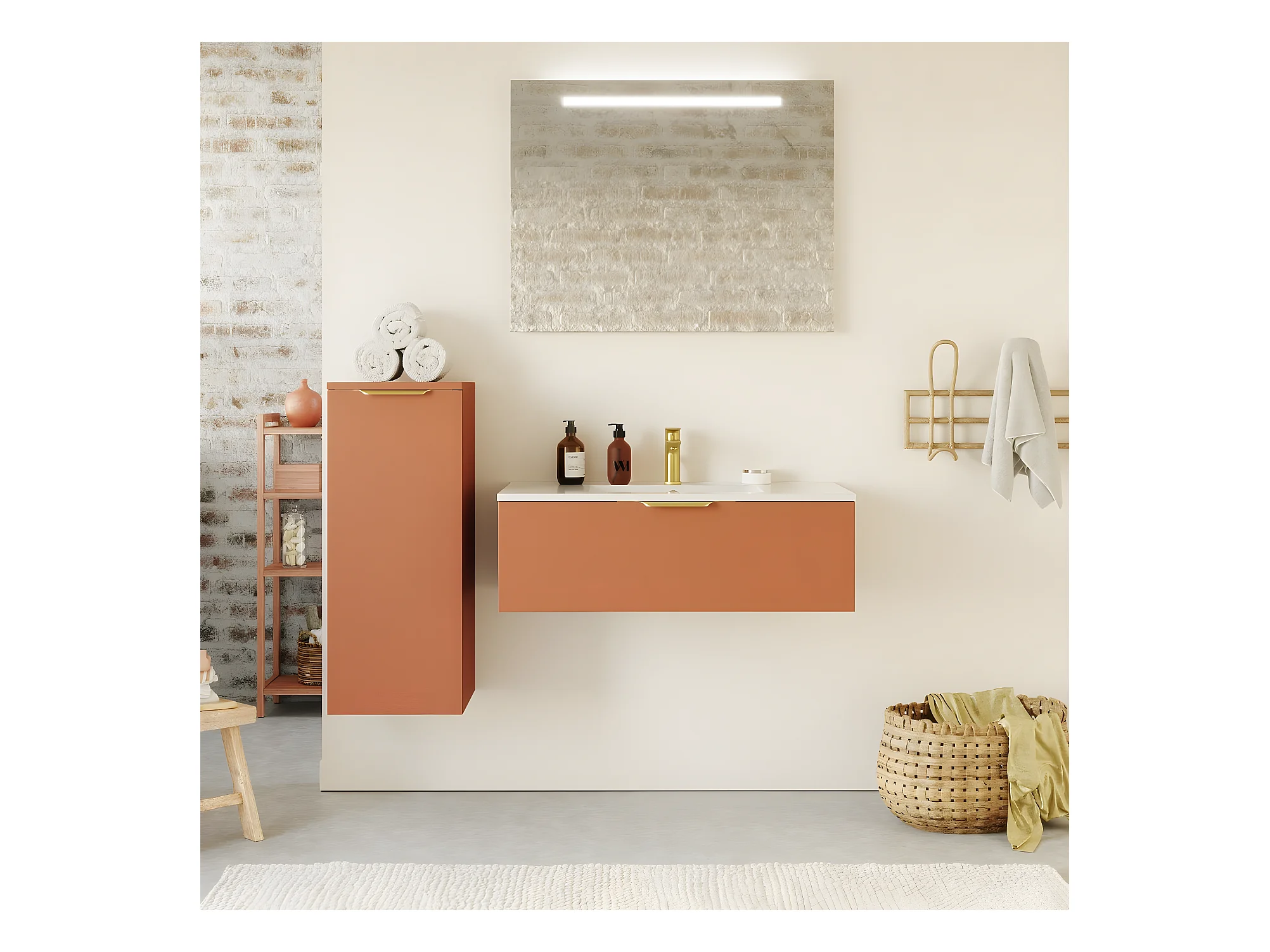 Meuble de salle de bain suspendu vasque intégrée 90cm 1 tiroir Terracotta - Venice