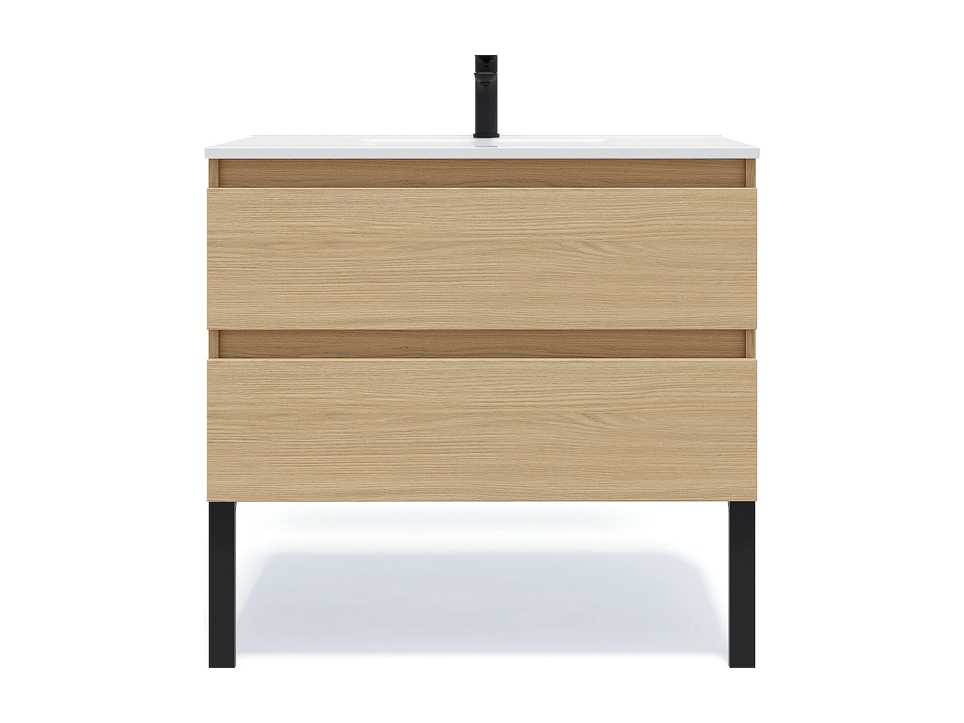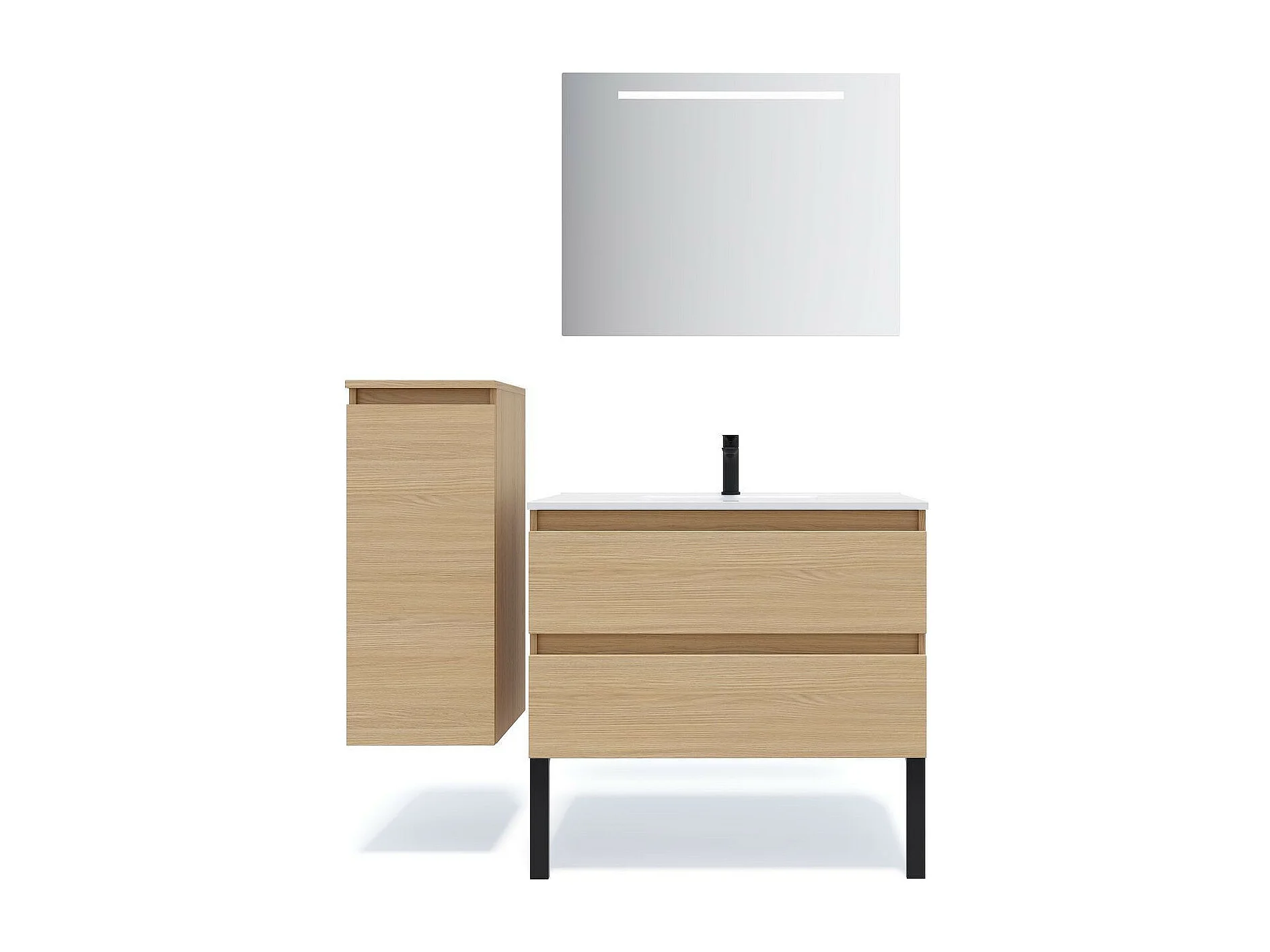 Meuble de salle de bain suspendu vasque intégrée 90cm 2 tiroirs Chêne clair - Hudson