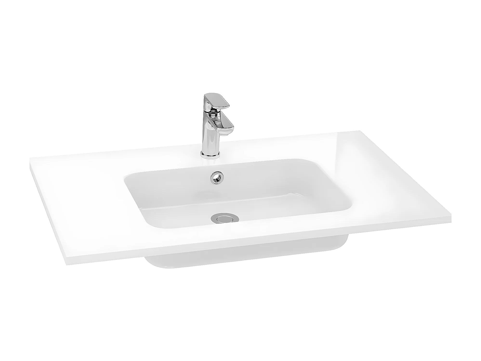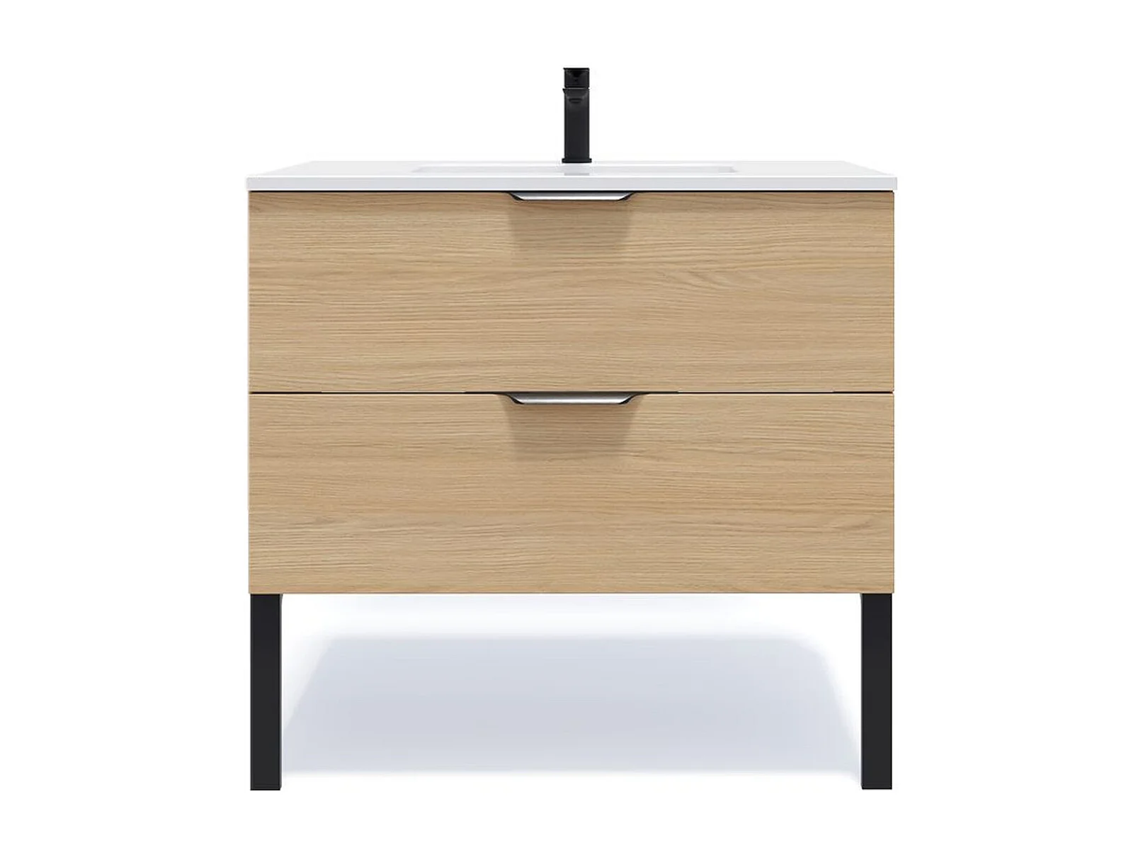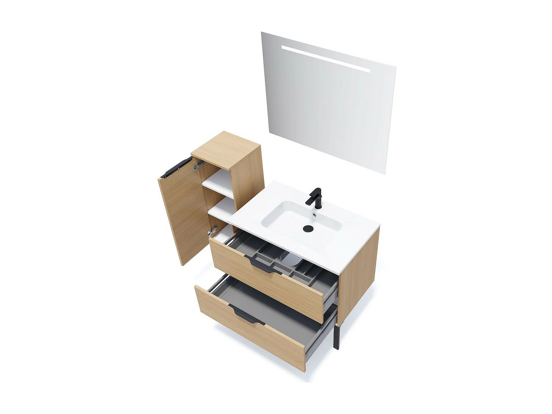 Meuble de salle de bain suspendu vasque intégrée 90cm 2 tiroirs Chêne clair - Soho