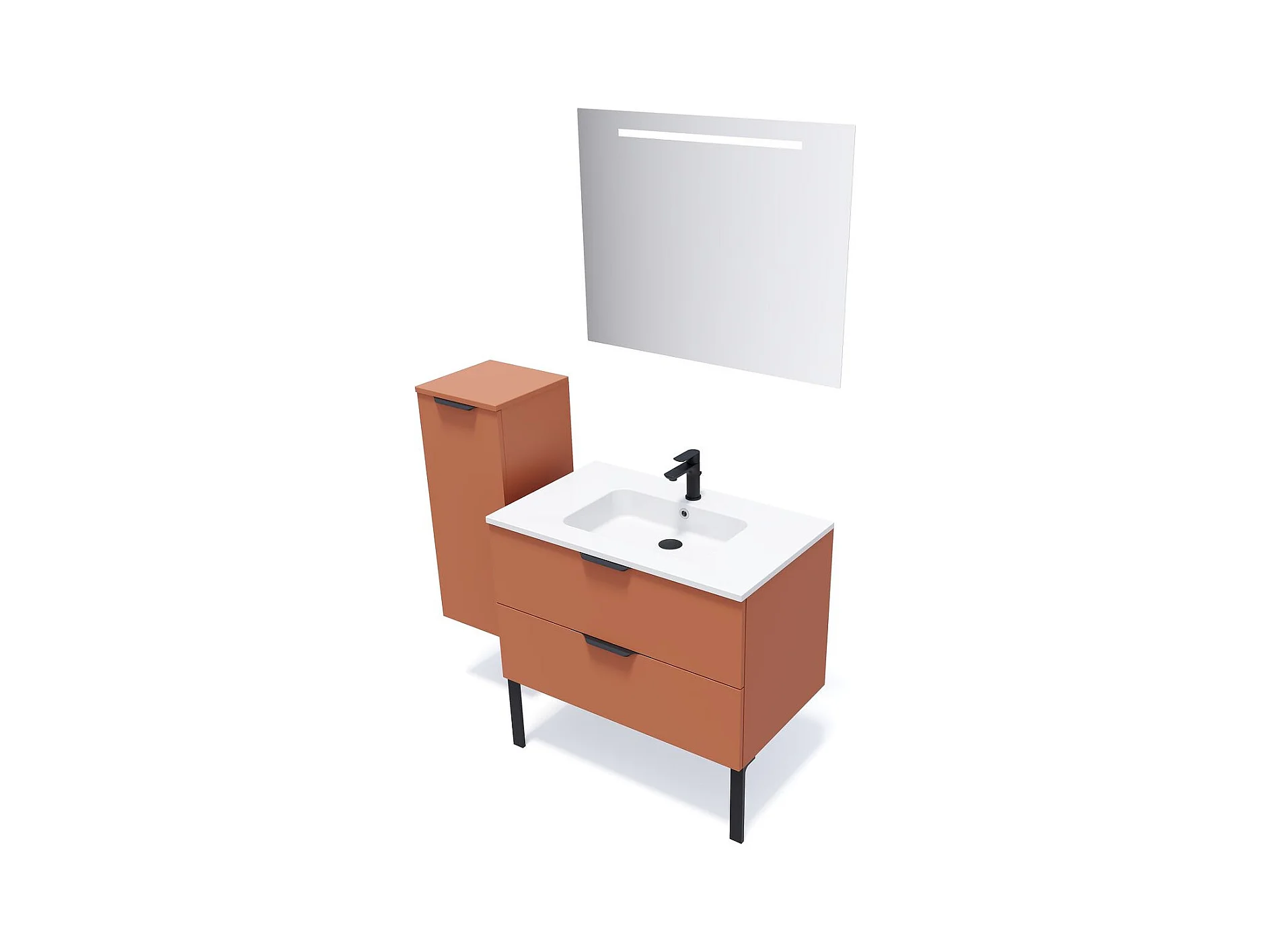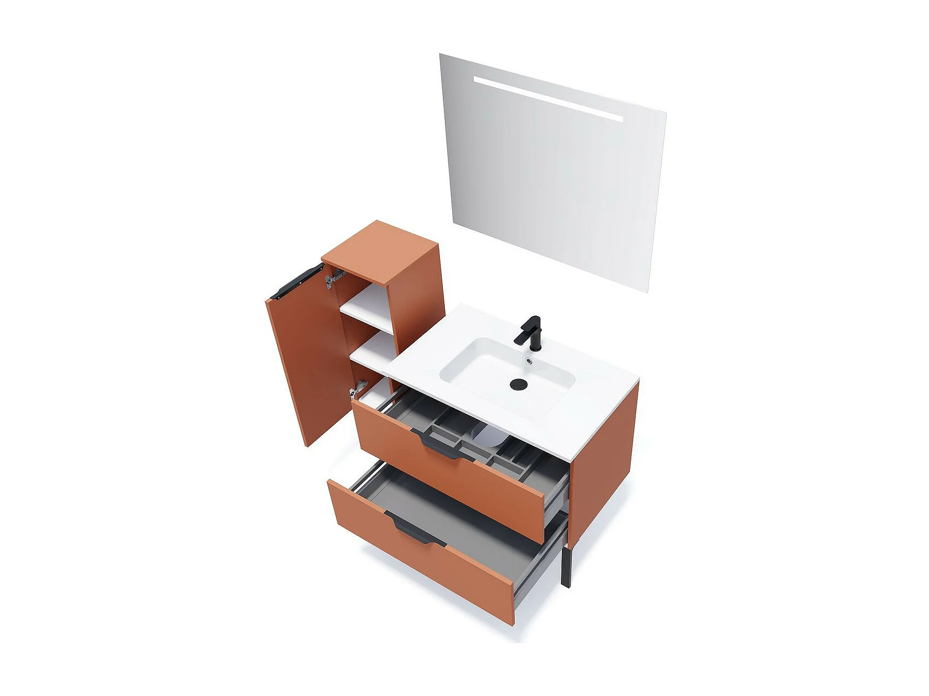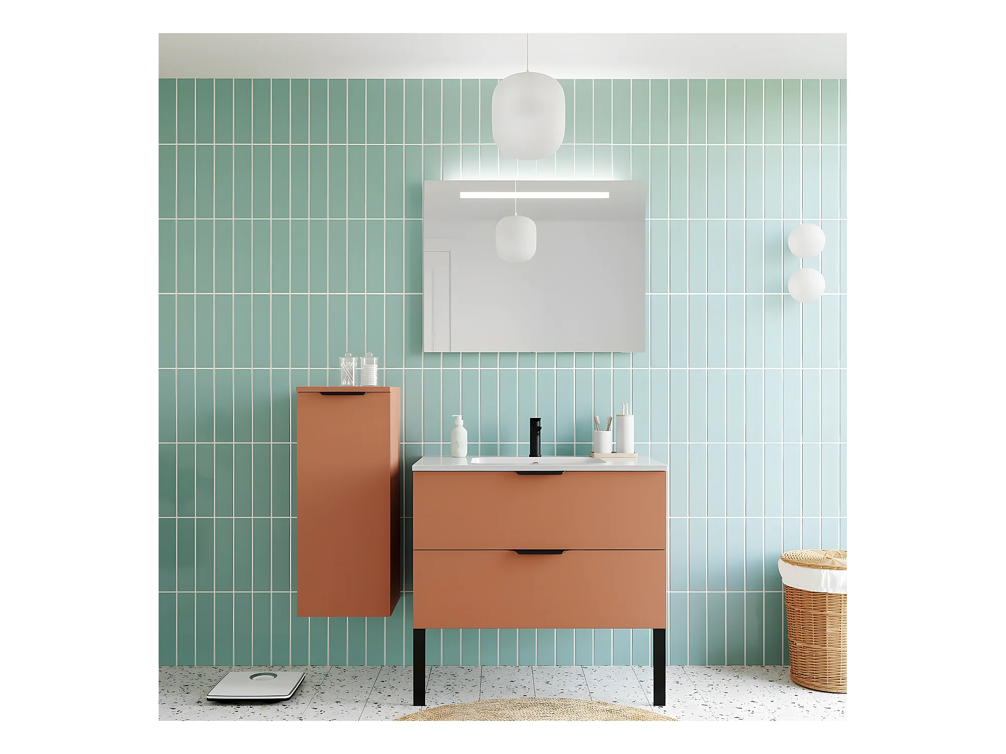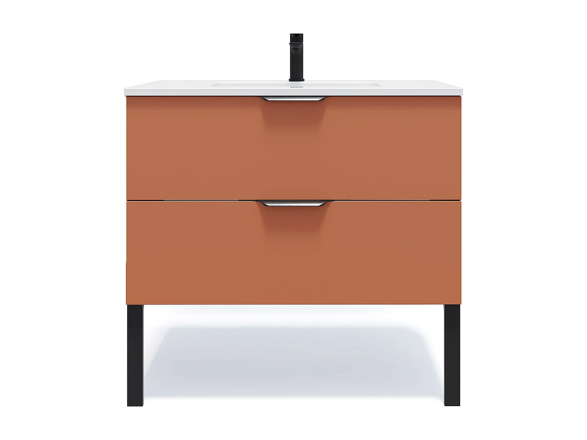 Meuble de salle de bain suspendu vasque intégrée 90cm 2 tiroirs Terracotta - Soho