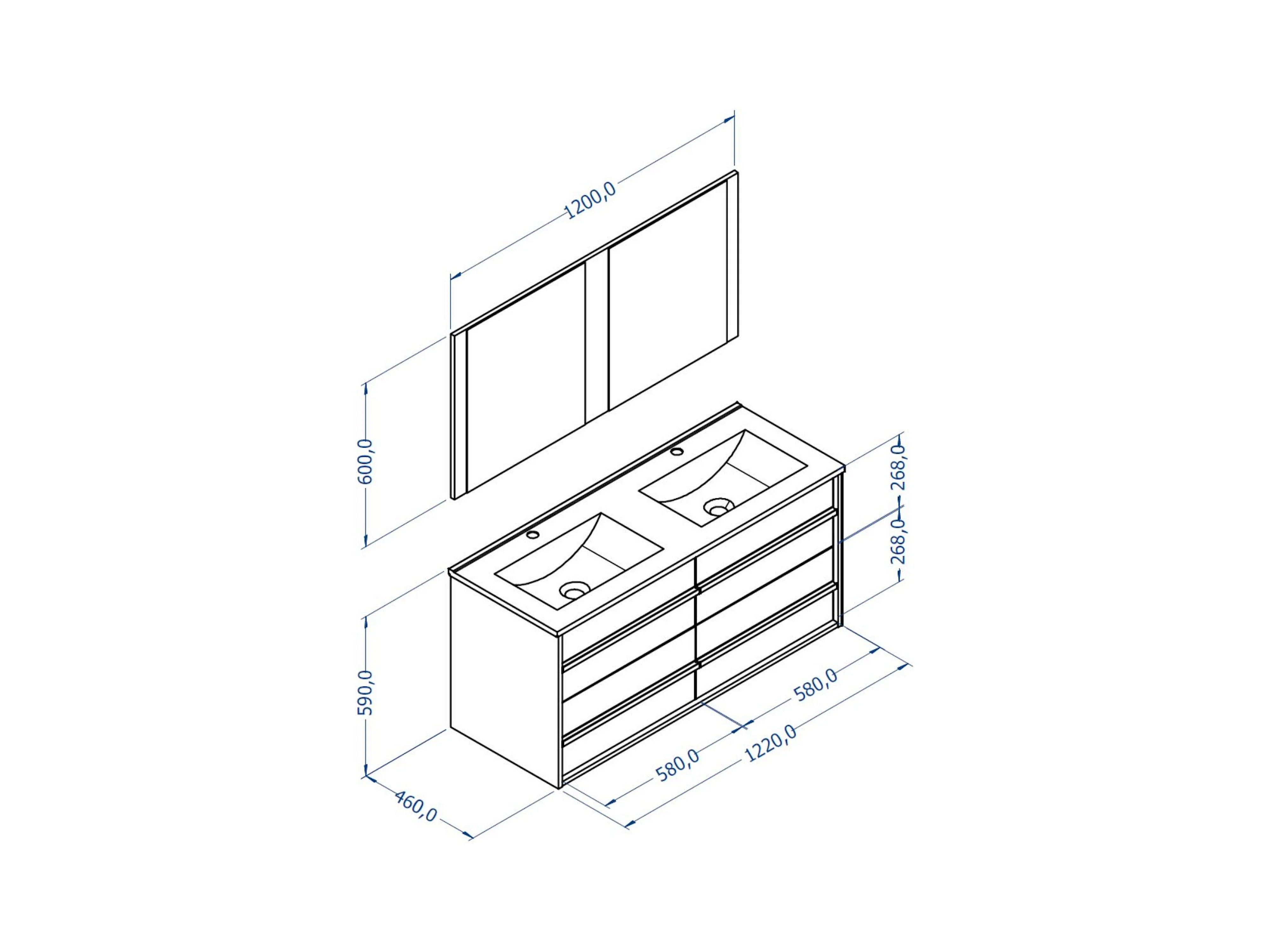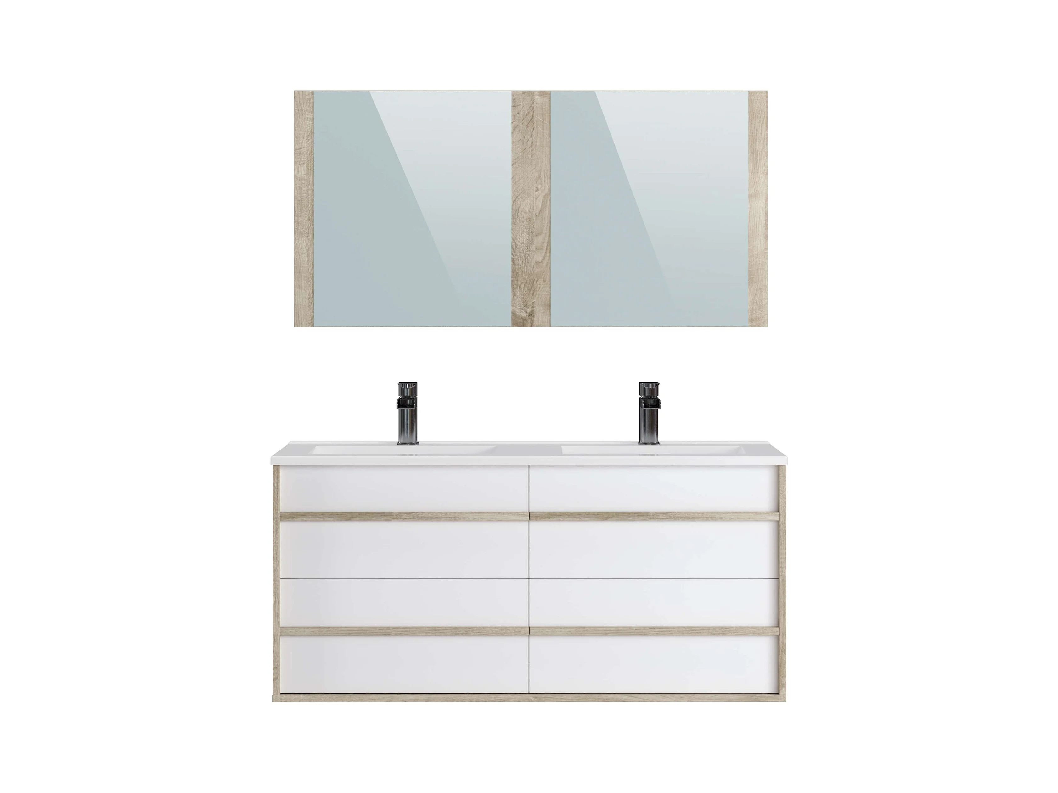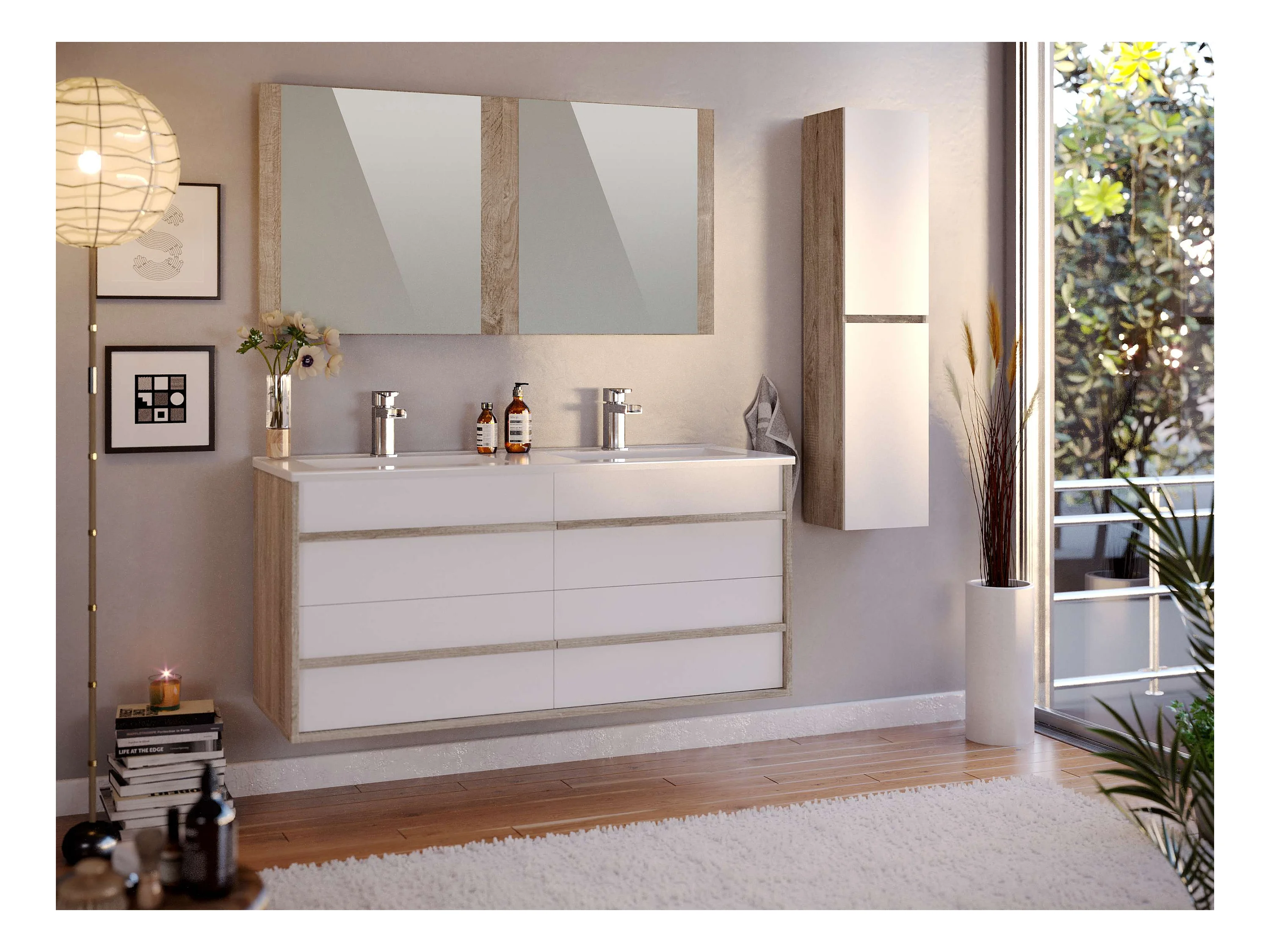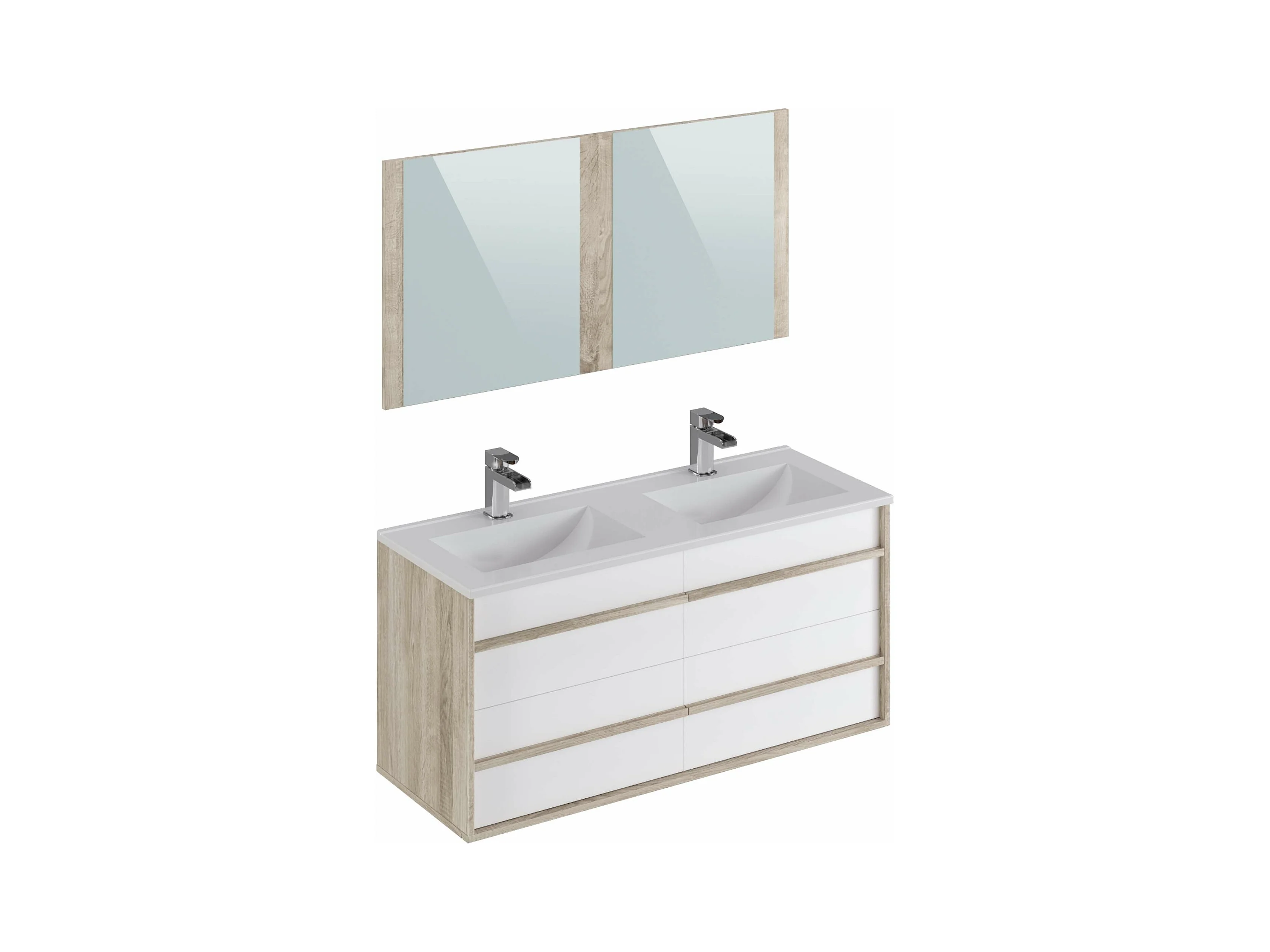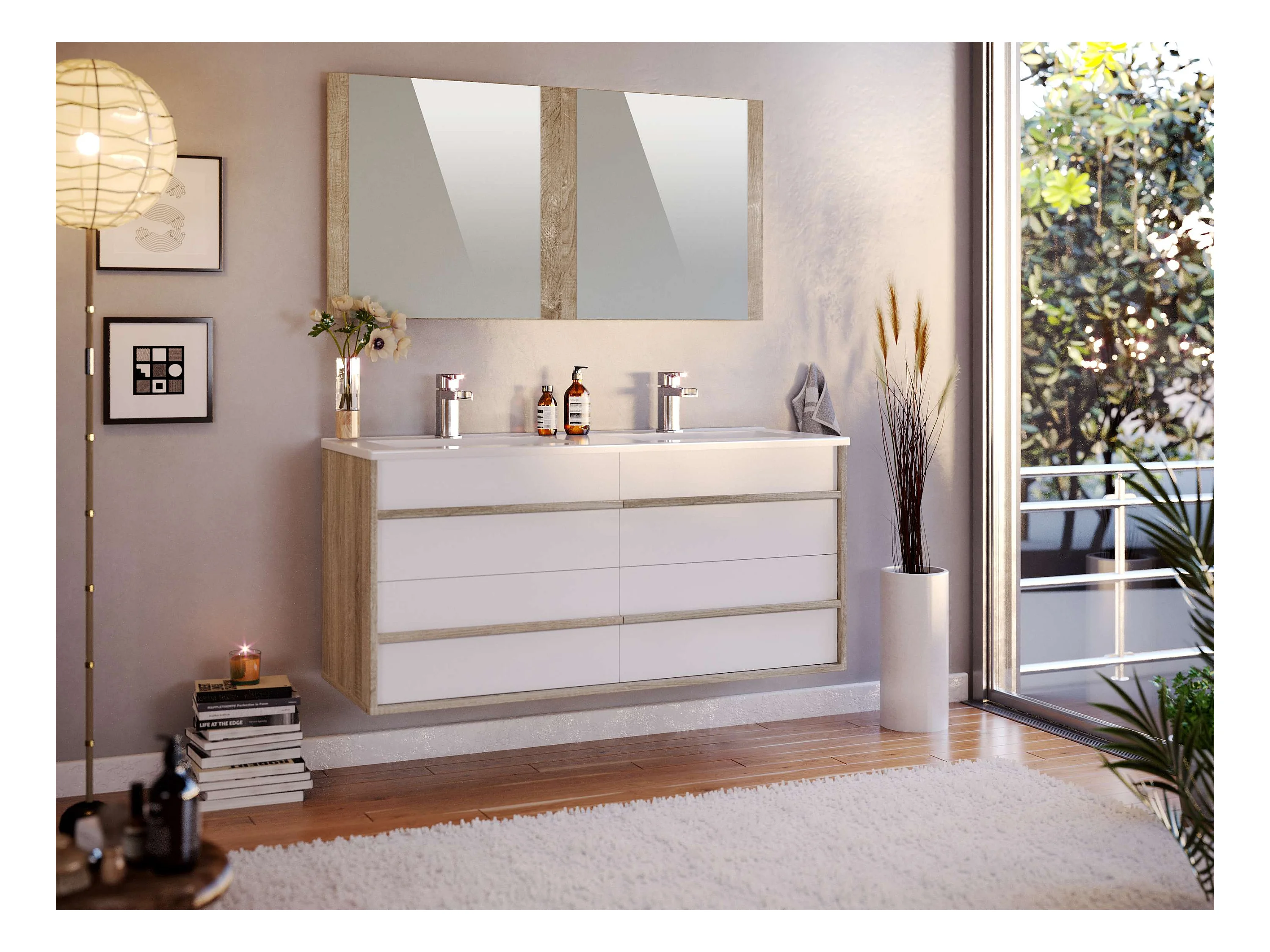 Meuble de salle de bain TAWA 4 tiroirs 120 cm chêne et blanc T-BATH Inclus lavabo acrylique et miroir