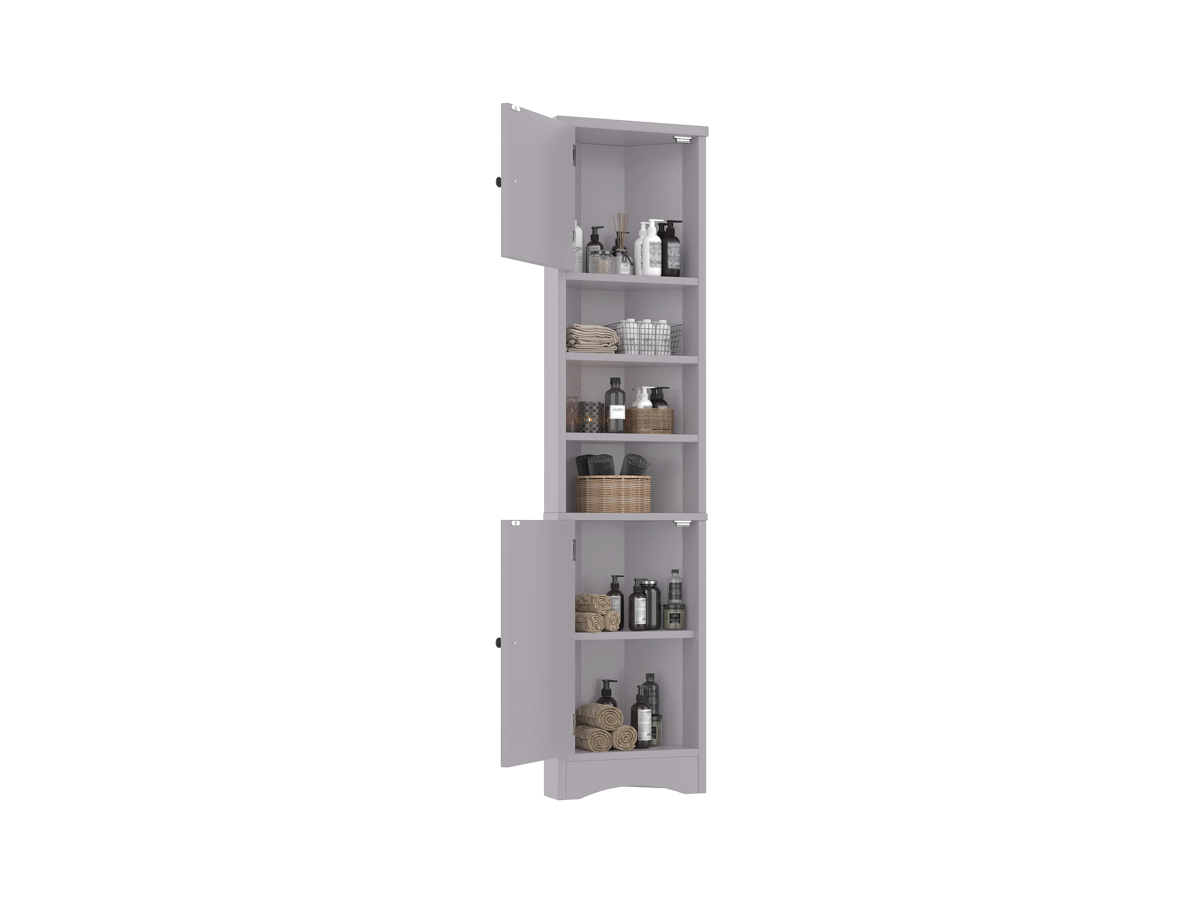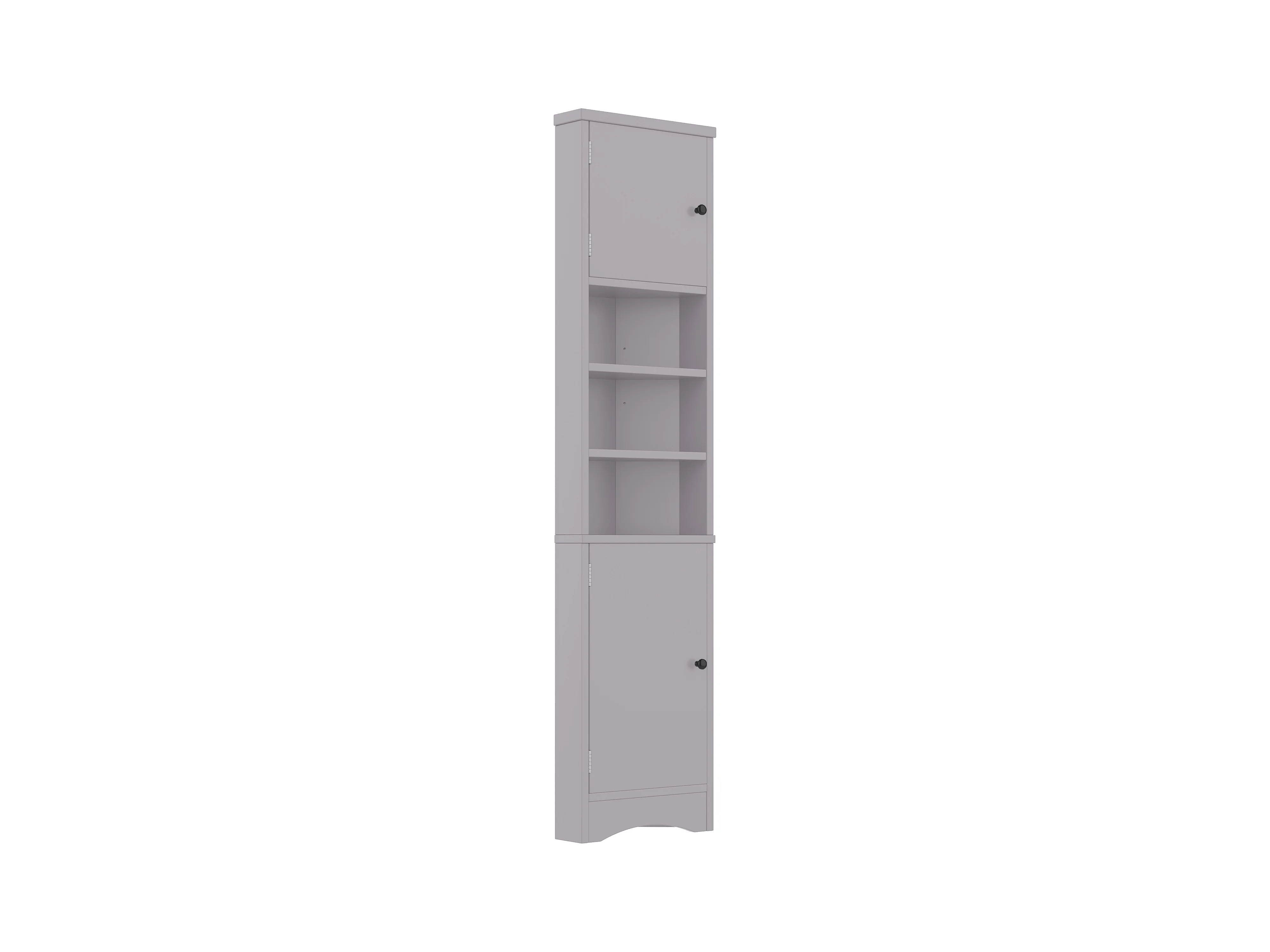 Meuble de salle de bain 57.4 x 28.5 x 160 cm - 4 portes - 2 compartiments ouverts - étagères réglables - gris