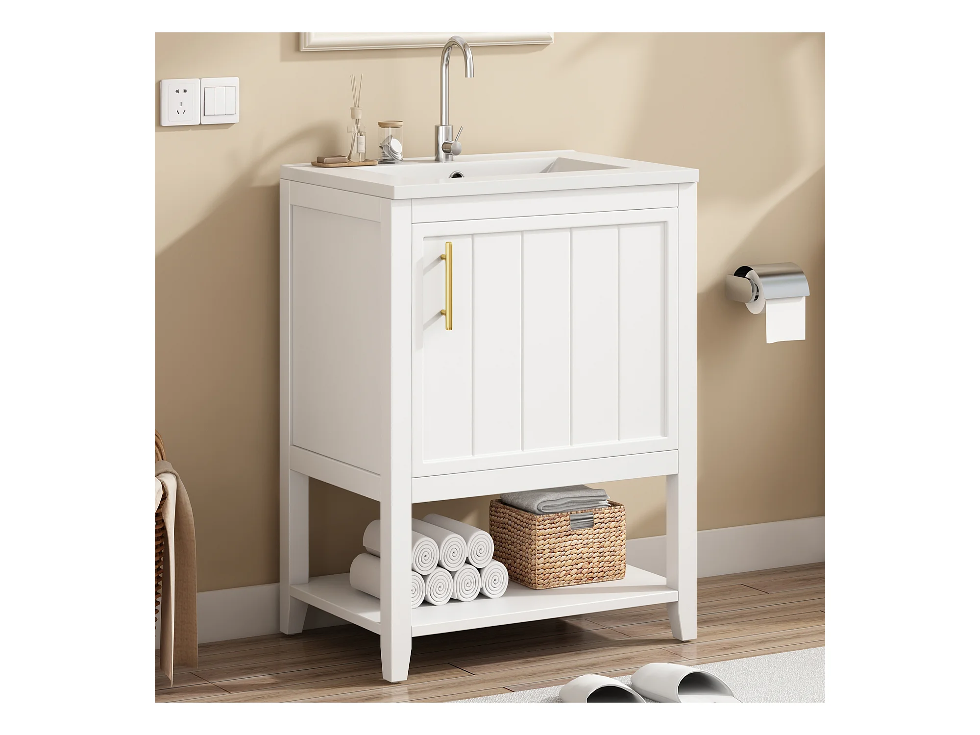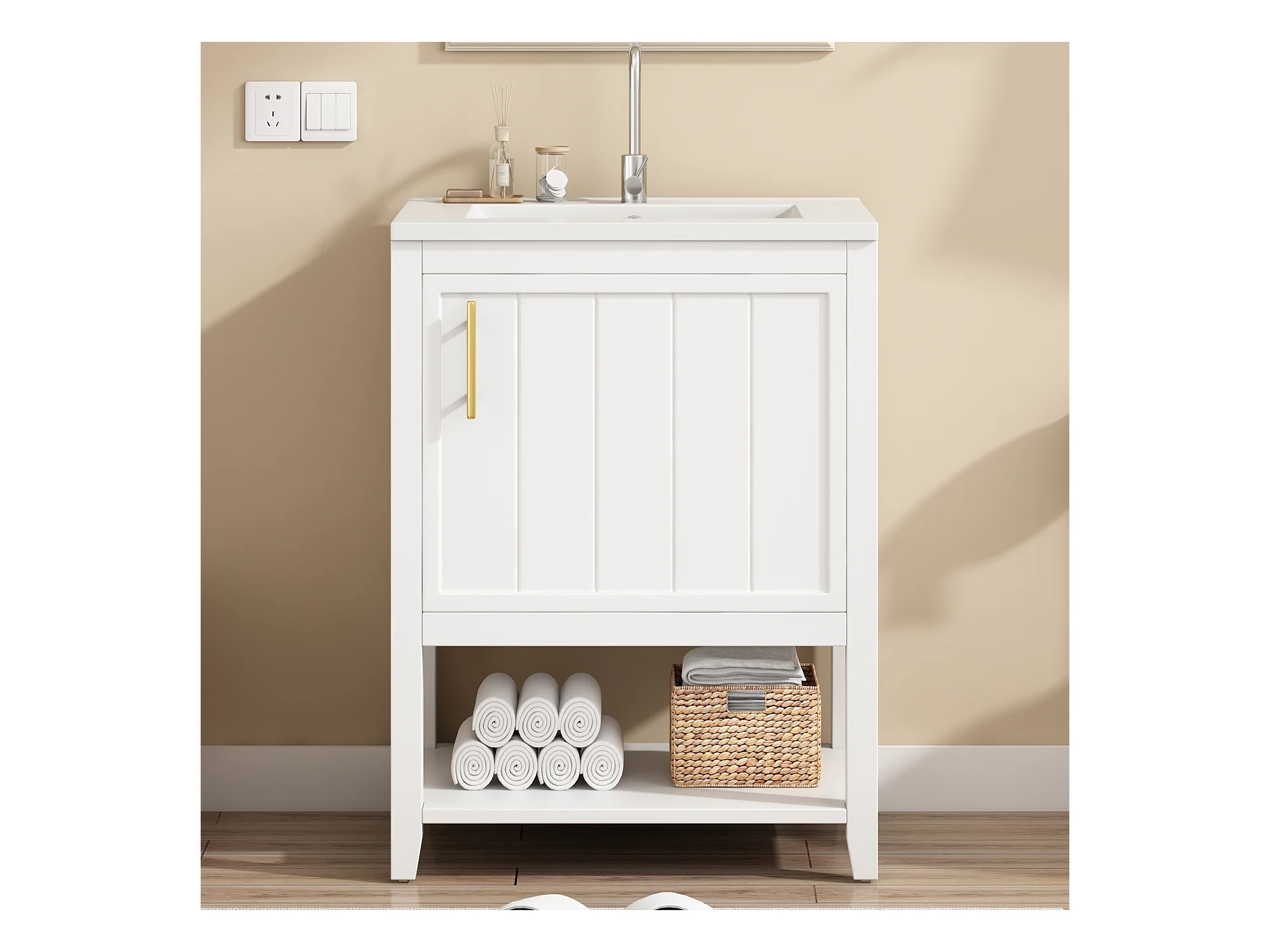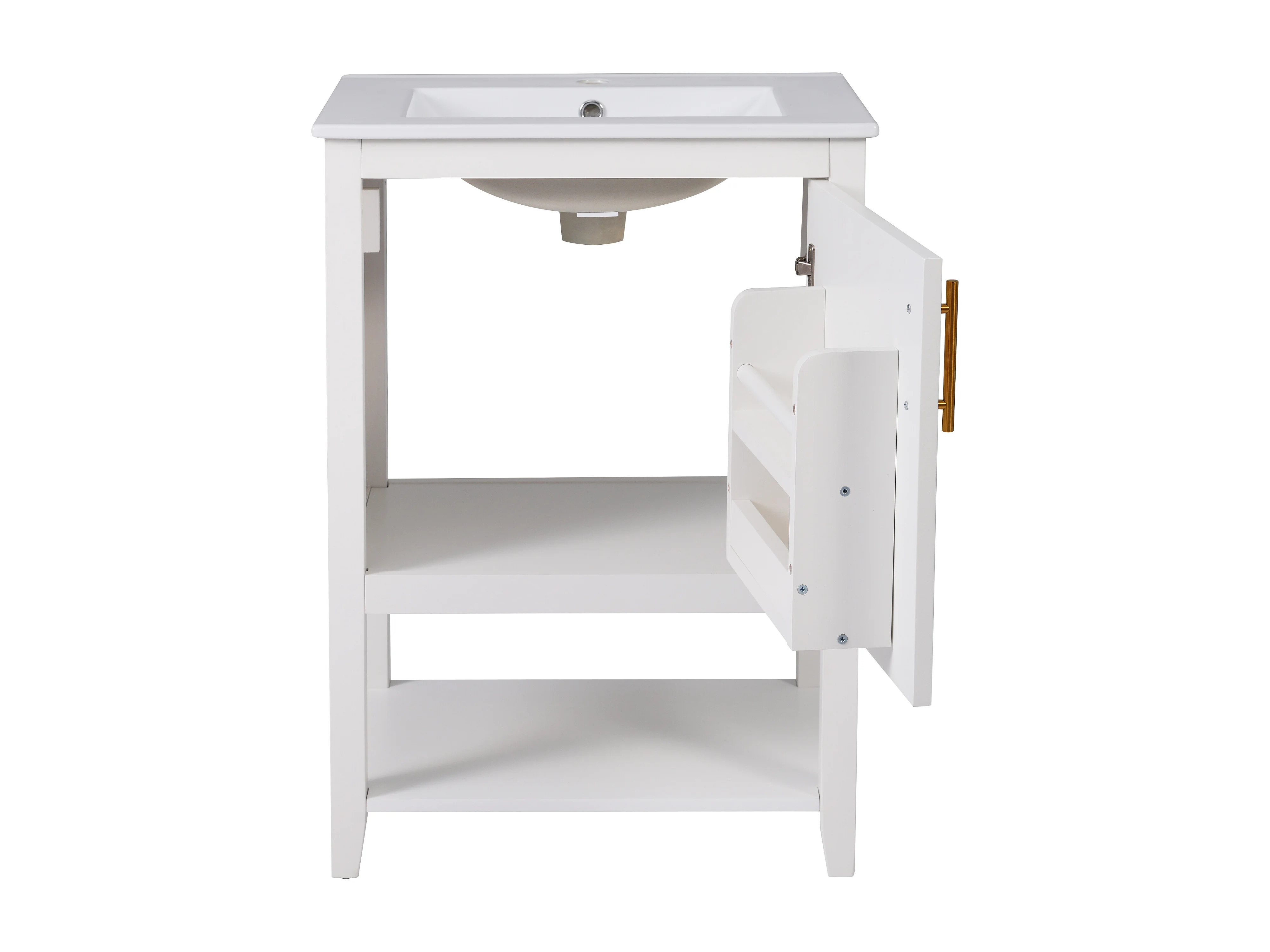 Meuble de salle de bain vasque simple - 1 étagère ouverte et 1 porte - 61 x 47 x 87 cm - Bois MDF - Blanc
