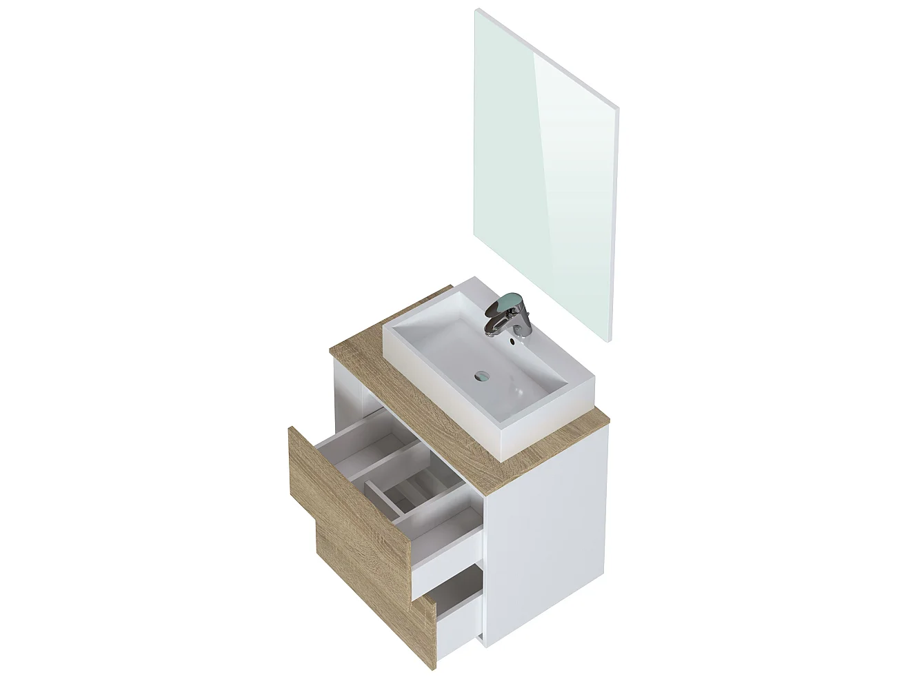 Meuble de salle de bains en mélamine chêne/blanc mat - Longueur 74 x profondeur 46 x Hauteur 73 cm