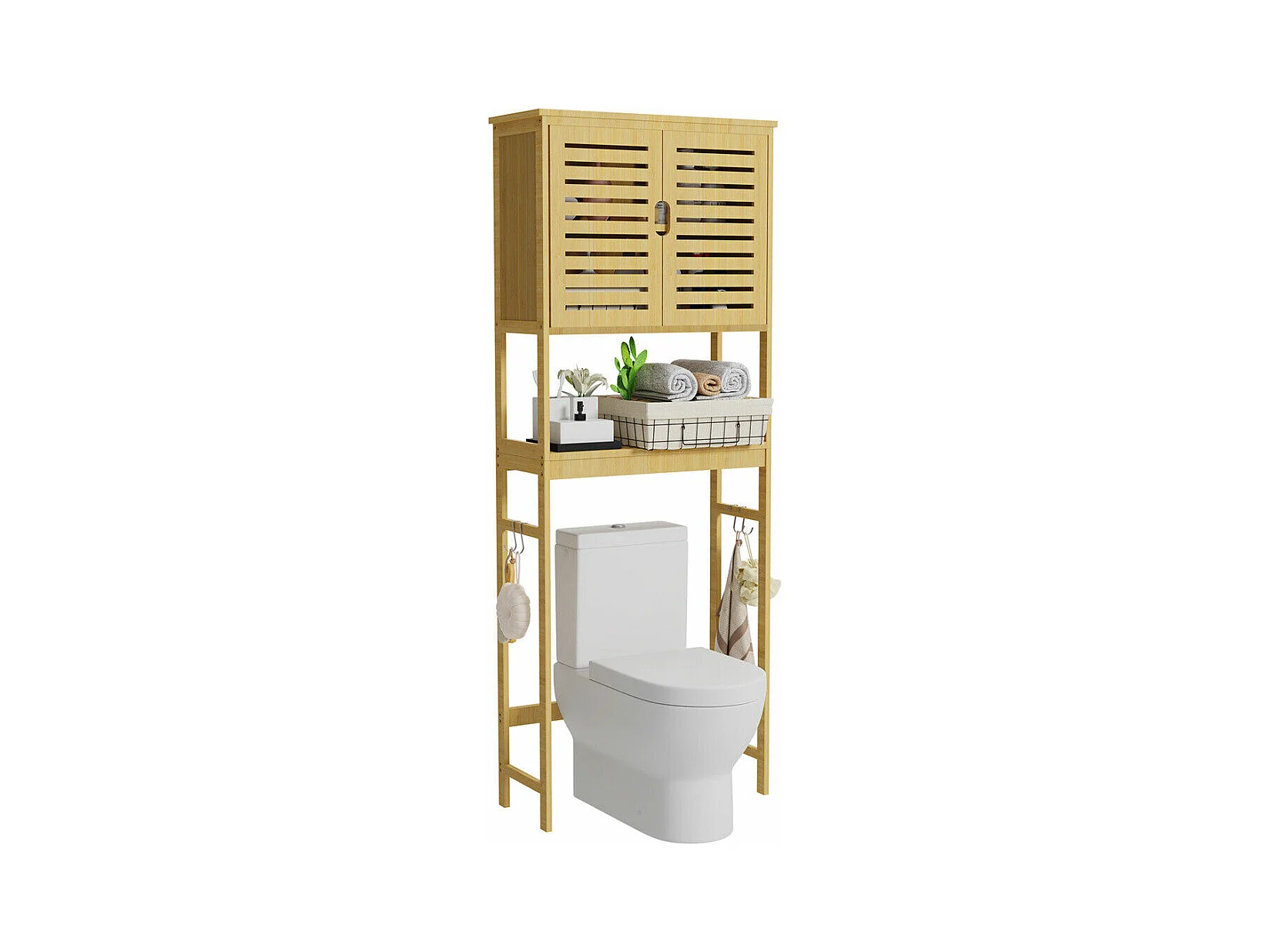 Meuble de Toilette WC Rangement Bambou Dessus des Toilettes Salle de Bain avec Etagère