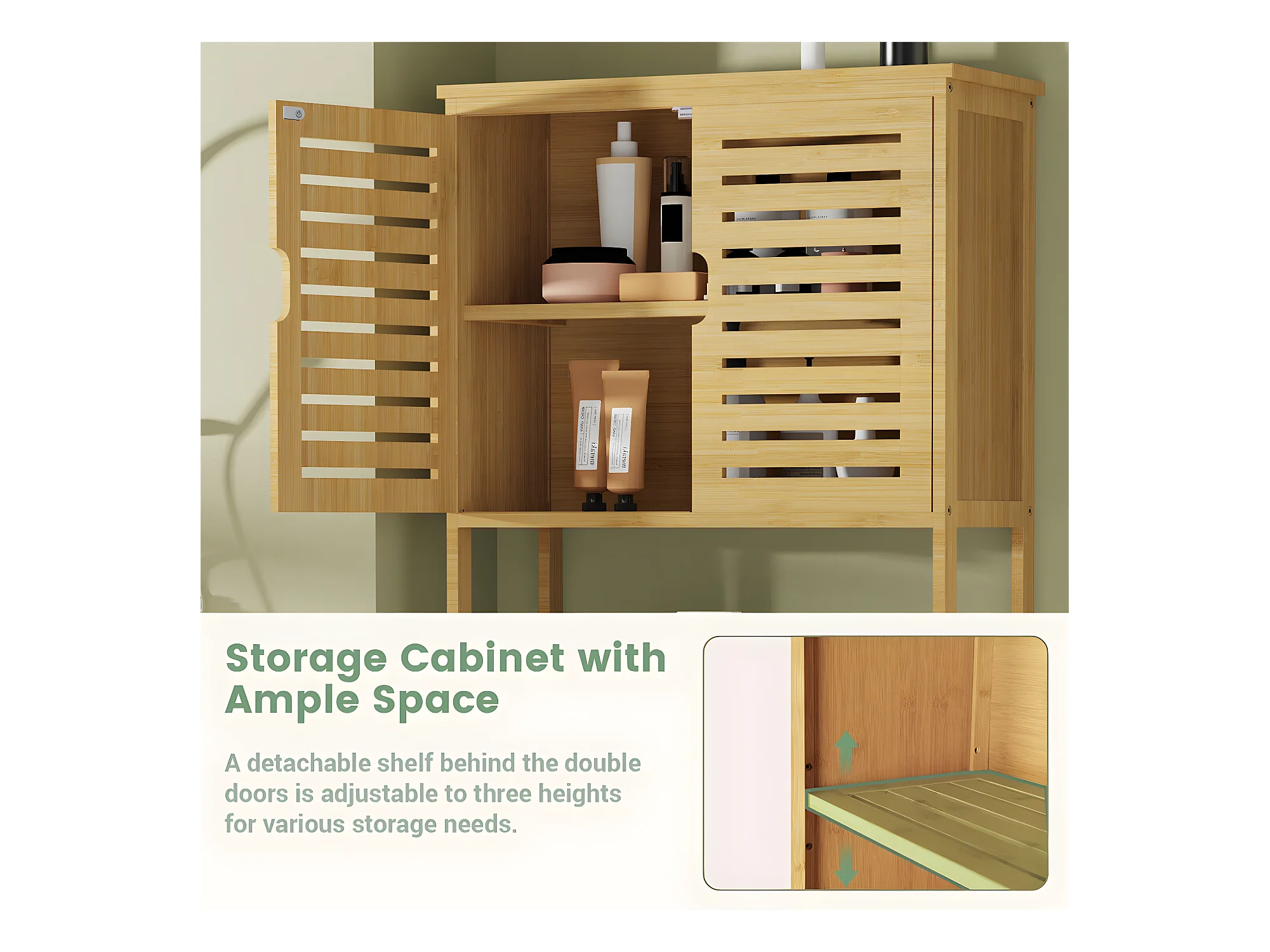 Meuble de Rangement WC SucceBuy, Rangement au Dessus des Toilettes ou Machine à Laver, Armoire de Salle de Bain Gain de Place, Naturel