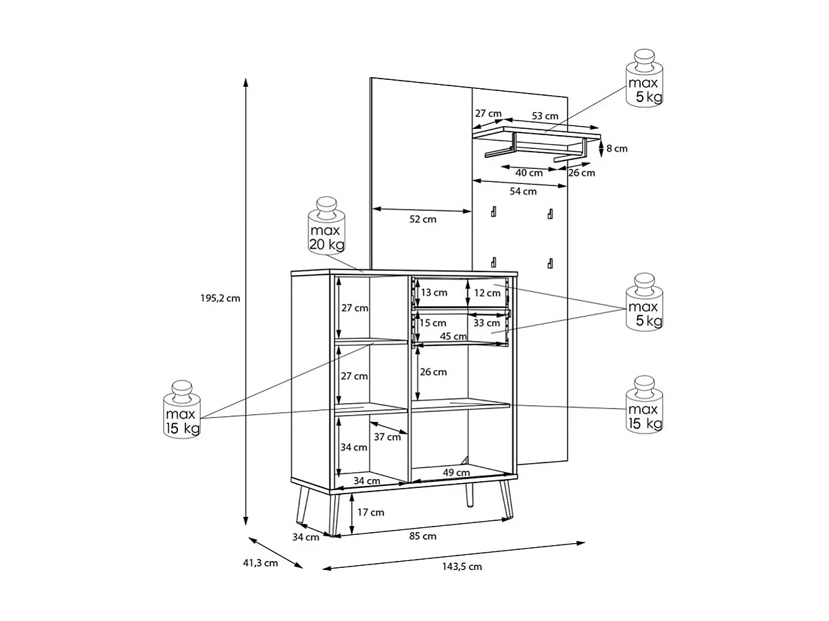 Meuble d’entrée 195 cm en décor bois de chêne et vert sauge – CEDAR