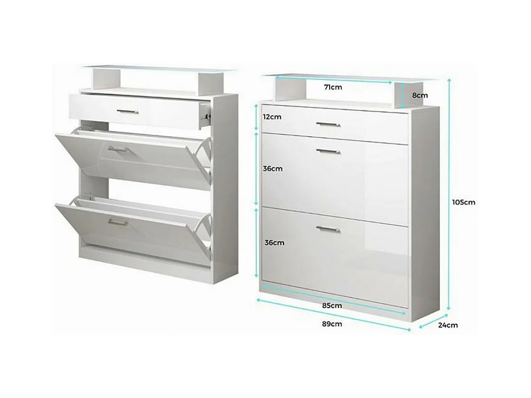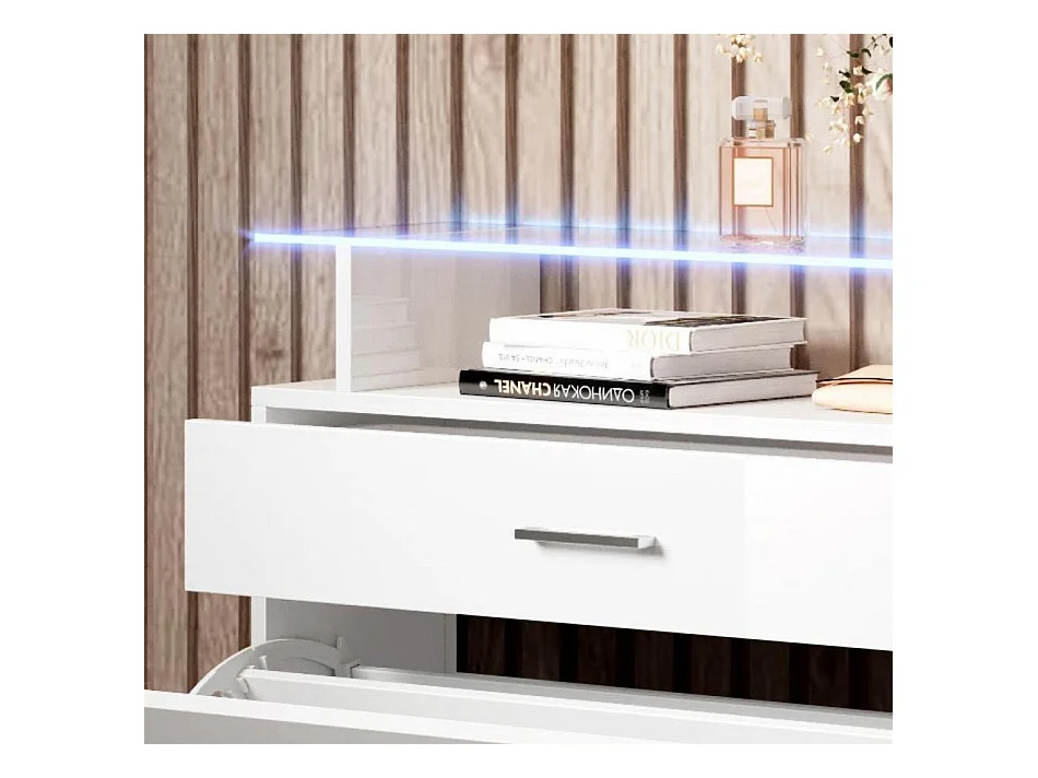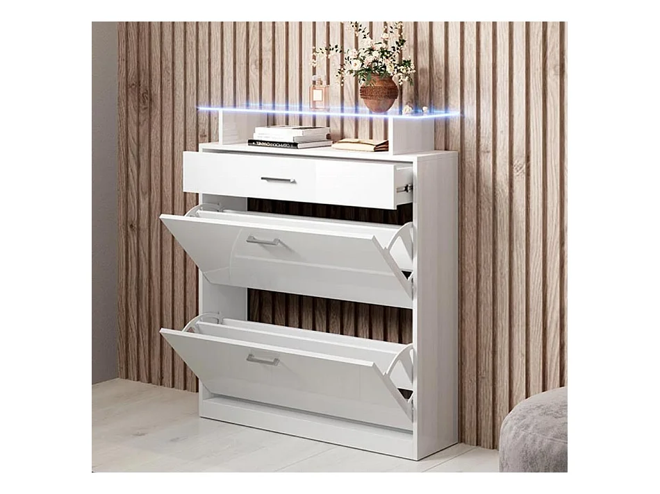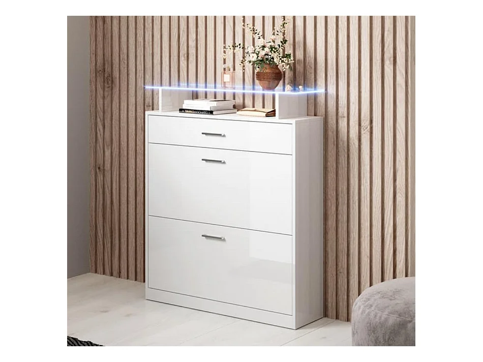 Meuble d’entrée à chaussures en Blanc avec LED 89x24x105cm Paola