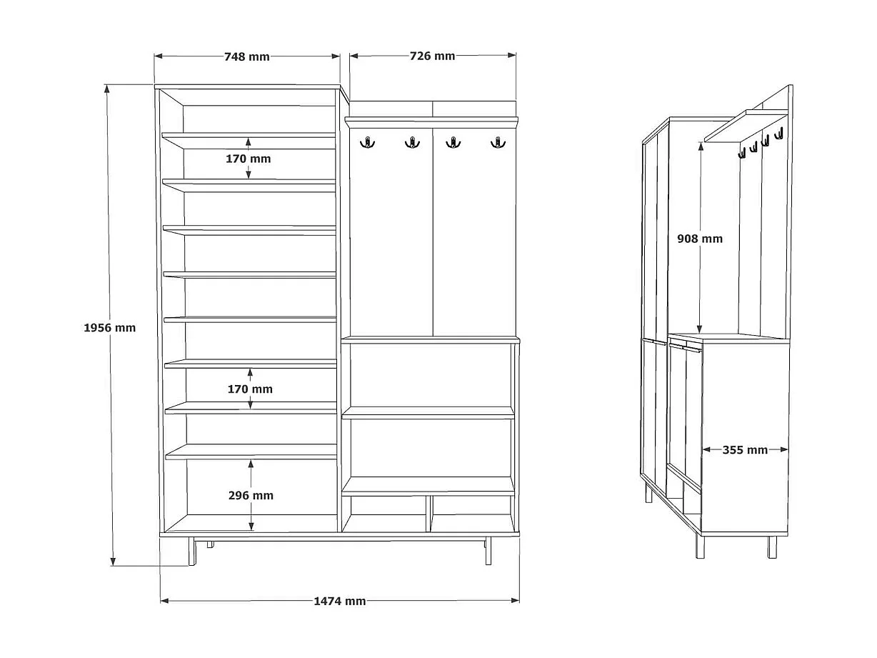 Meuble d'entrée avec placard à chaussures et patères Sylvie