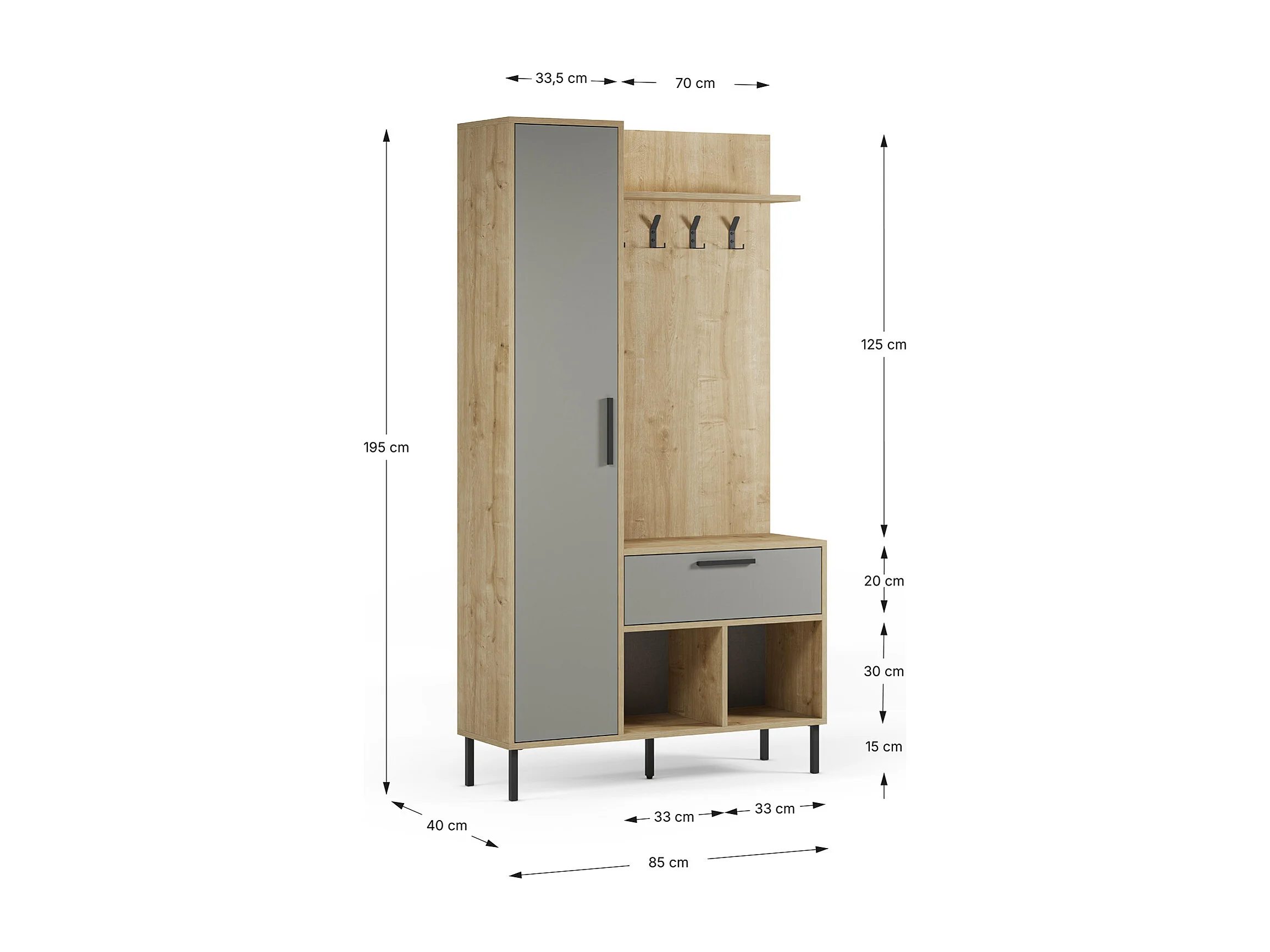 Meuble d'entrée avec porte-manteau aspect bois coloris vert et chêne, pieds en métal noir - Longueur 108 x Profondeur 35 x Hauteur 195,3 cm