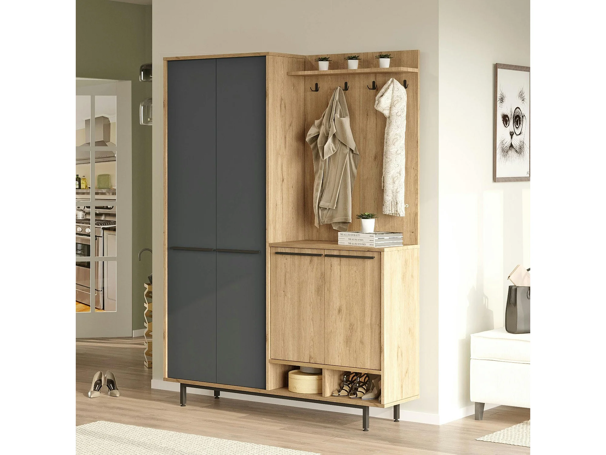 Meuble d'entrée avec rangement - anthracite et effet chêne JENA